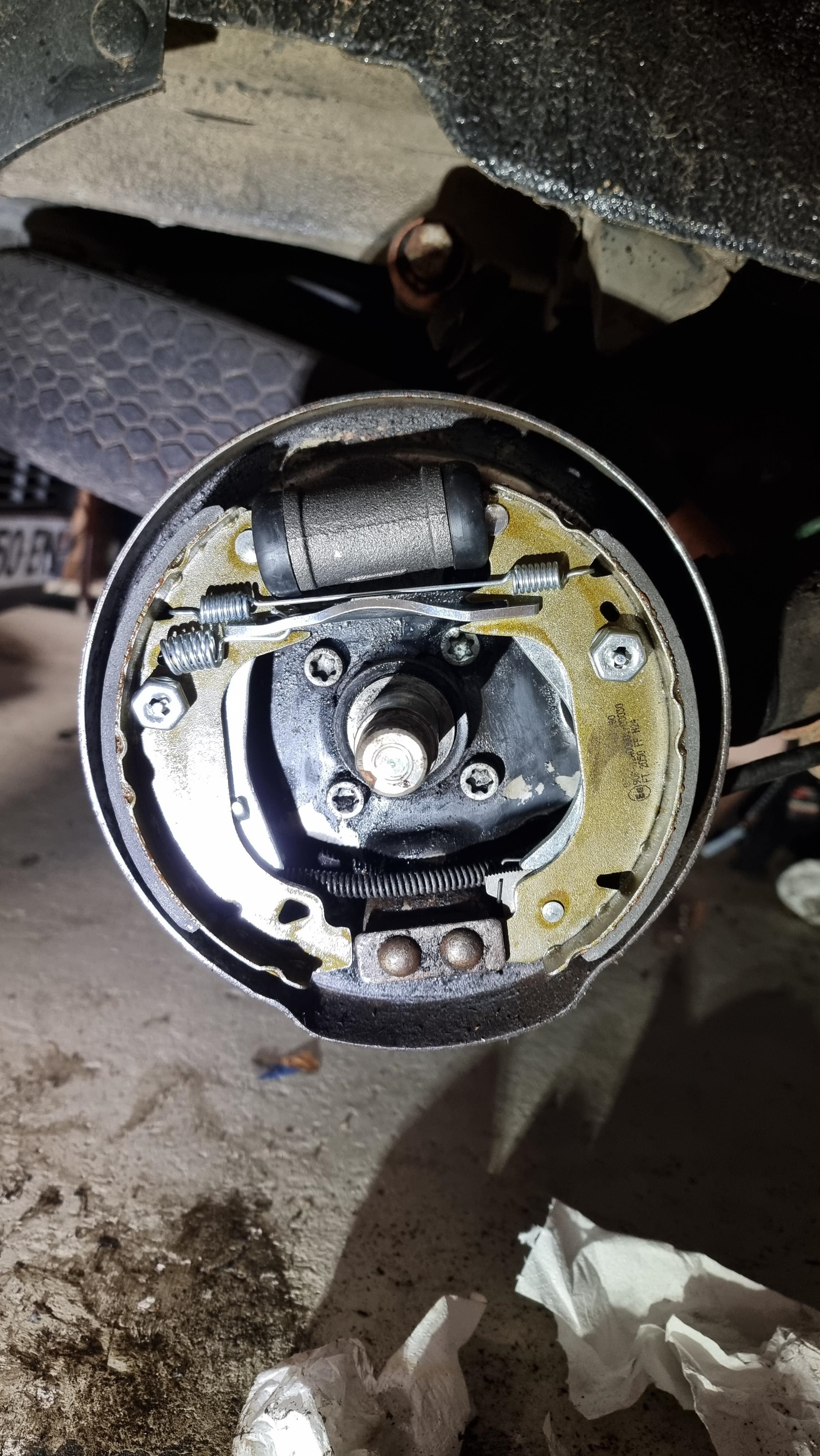 On a changé le piston et les machoires, mais y a pas a dire, les freins a tambour, je déteste, on s'est abimés les doigts a remettre ce ##### de cable de frein a main, disque plaquettes c'est tellement plus simple, mais au moins c'est fait.