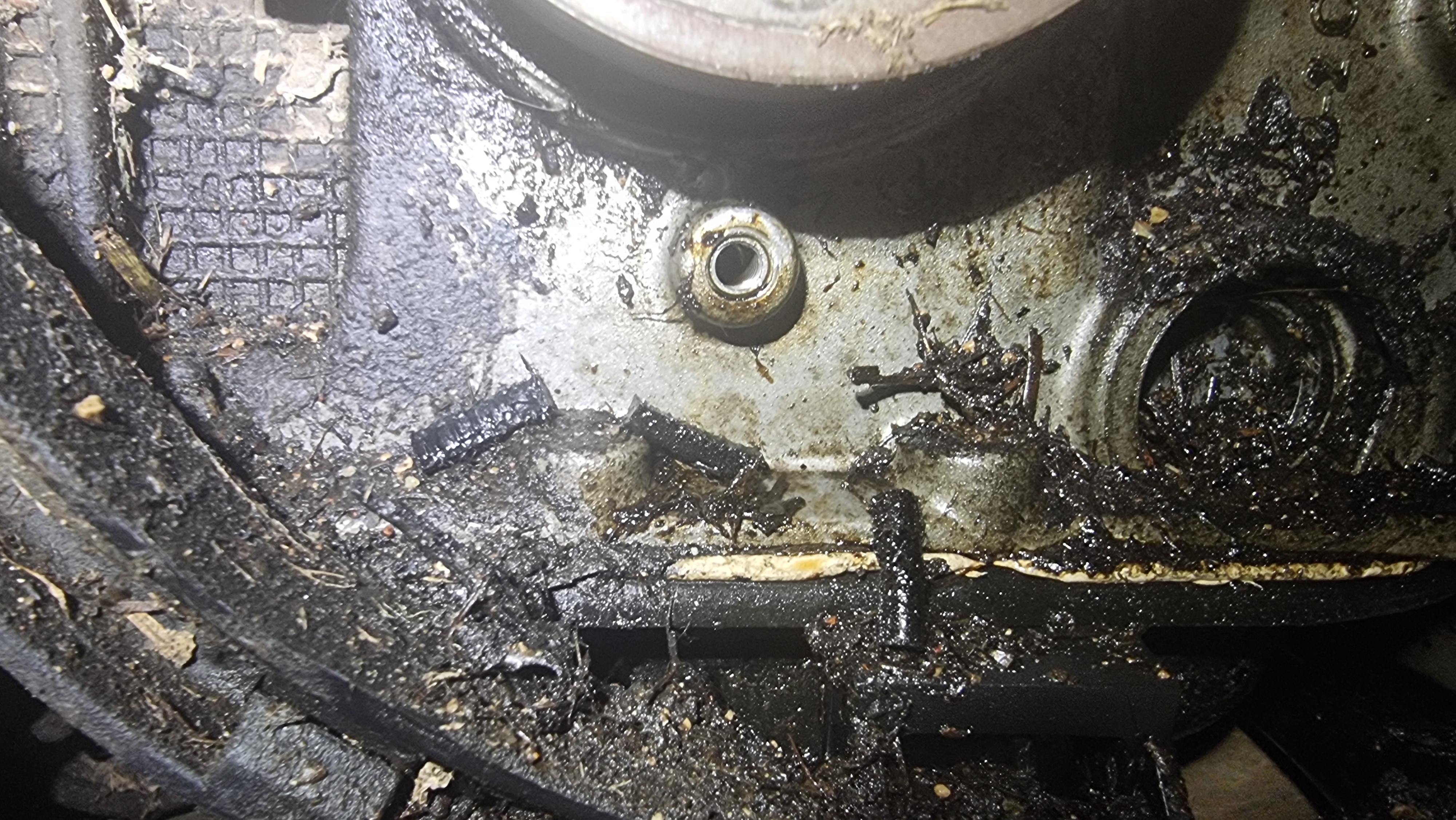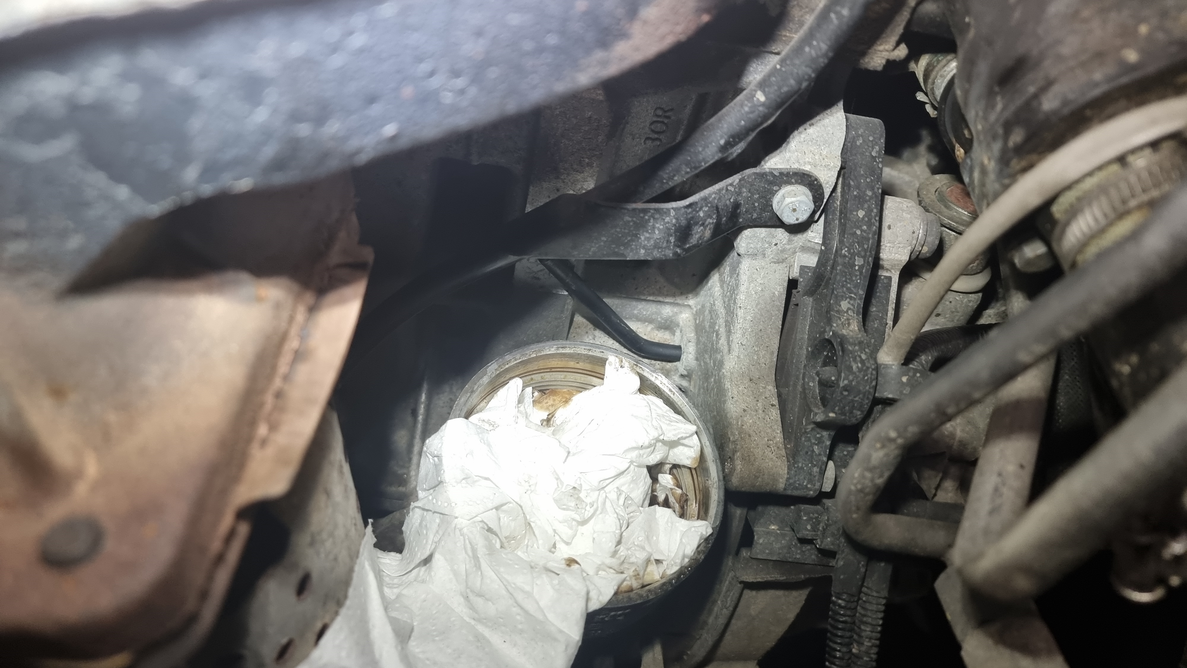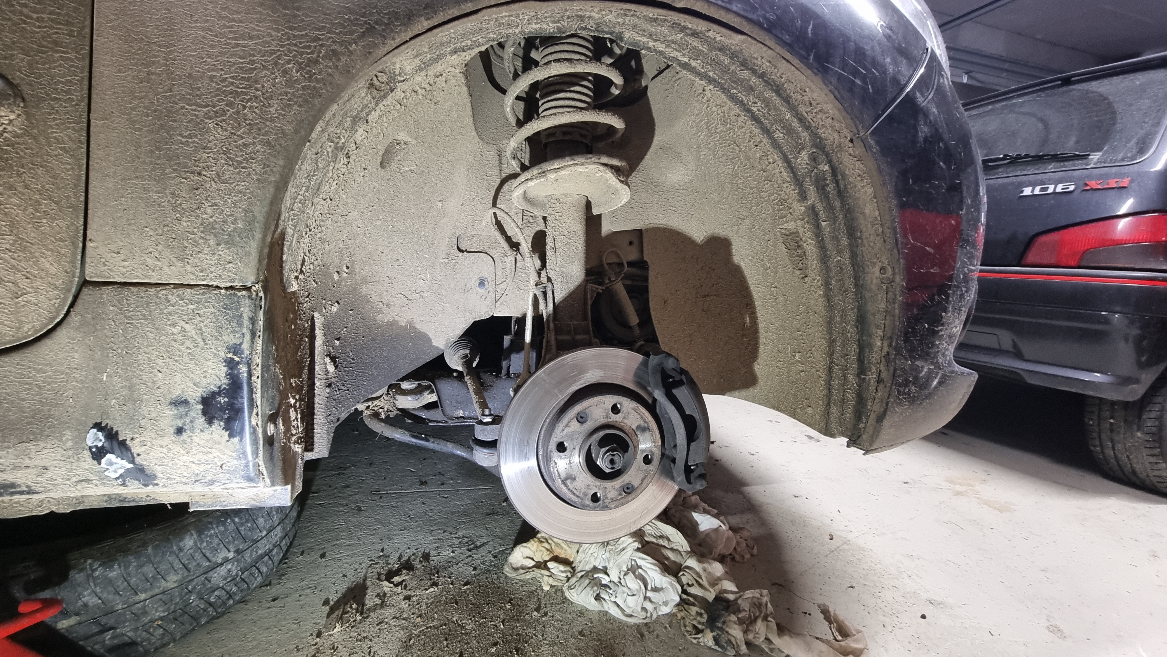 Il faut passer par le passage de roue passager également et c'est la que tu vois que c'est horrible de travailler sur une voiture sale, y a des kilos de terre partout