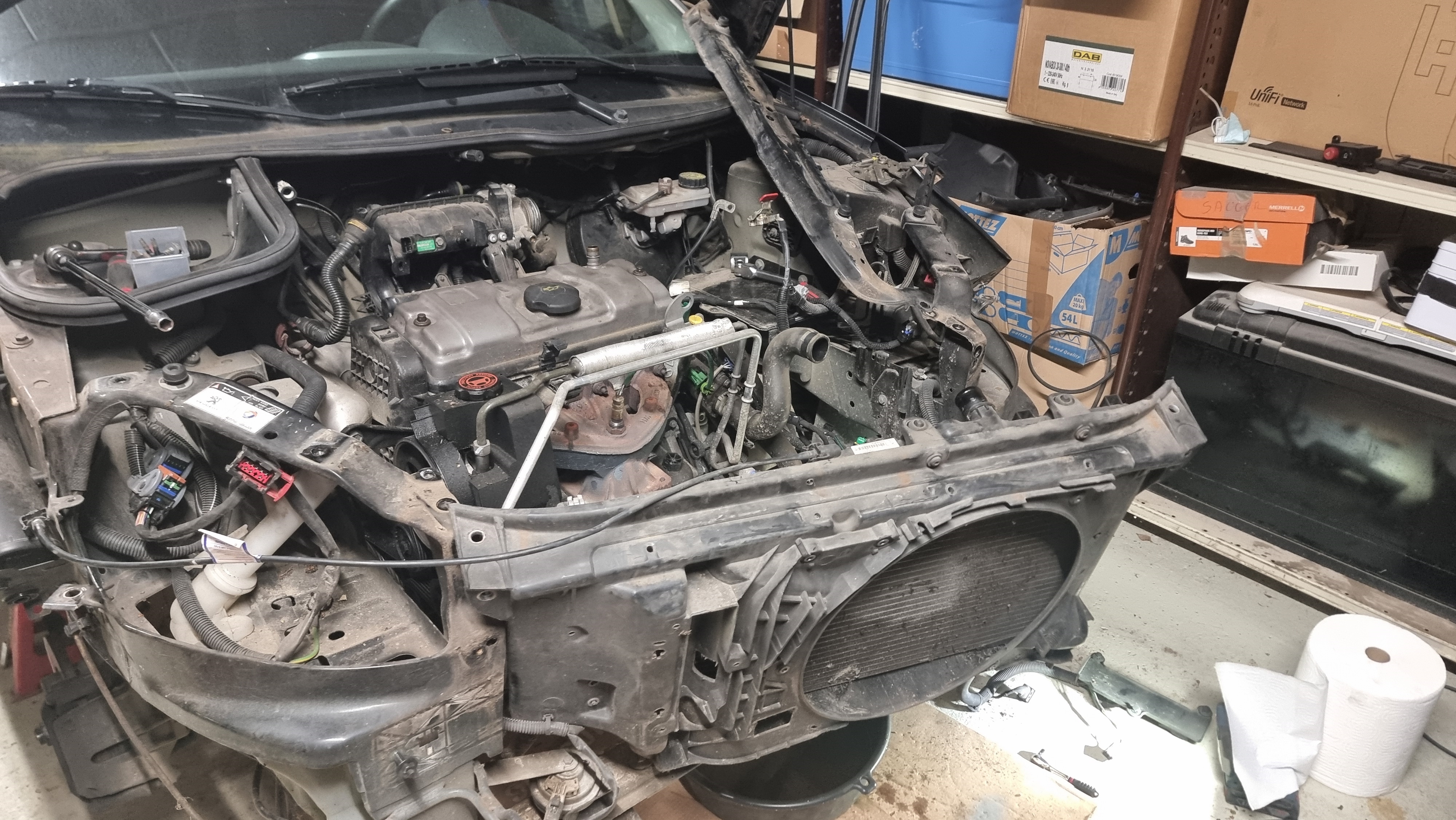 Ce matin, je reprends, et je réinstalle tout ce qu'il manque, vase d'expansion, boite a air et tout ce qui est faisceau.