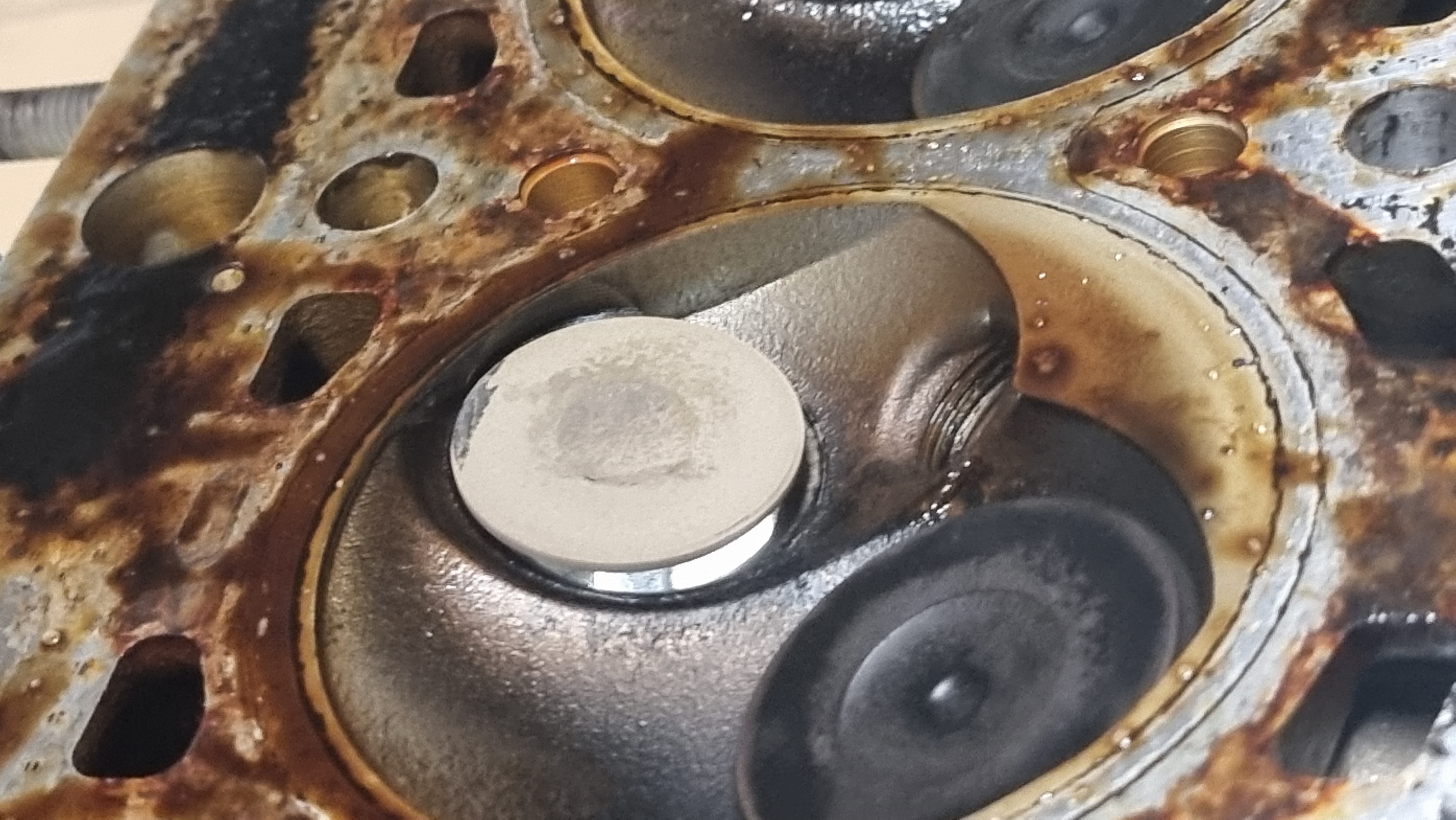 Je vous met les photos des 4 cylindres, mais bon, c'est mort, les 4 pistons sont marqués, et meme si c'est difficile de voir on voit aussi que les soupapes a gauche sur les photos sont marquées, et toutes ouvertes.