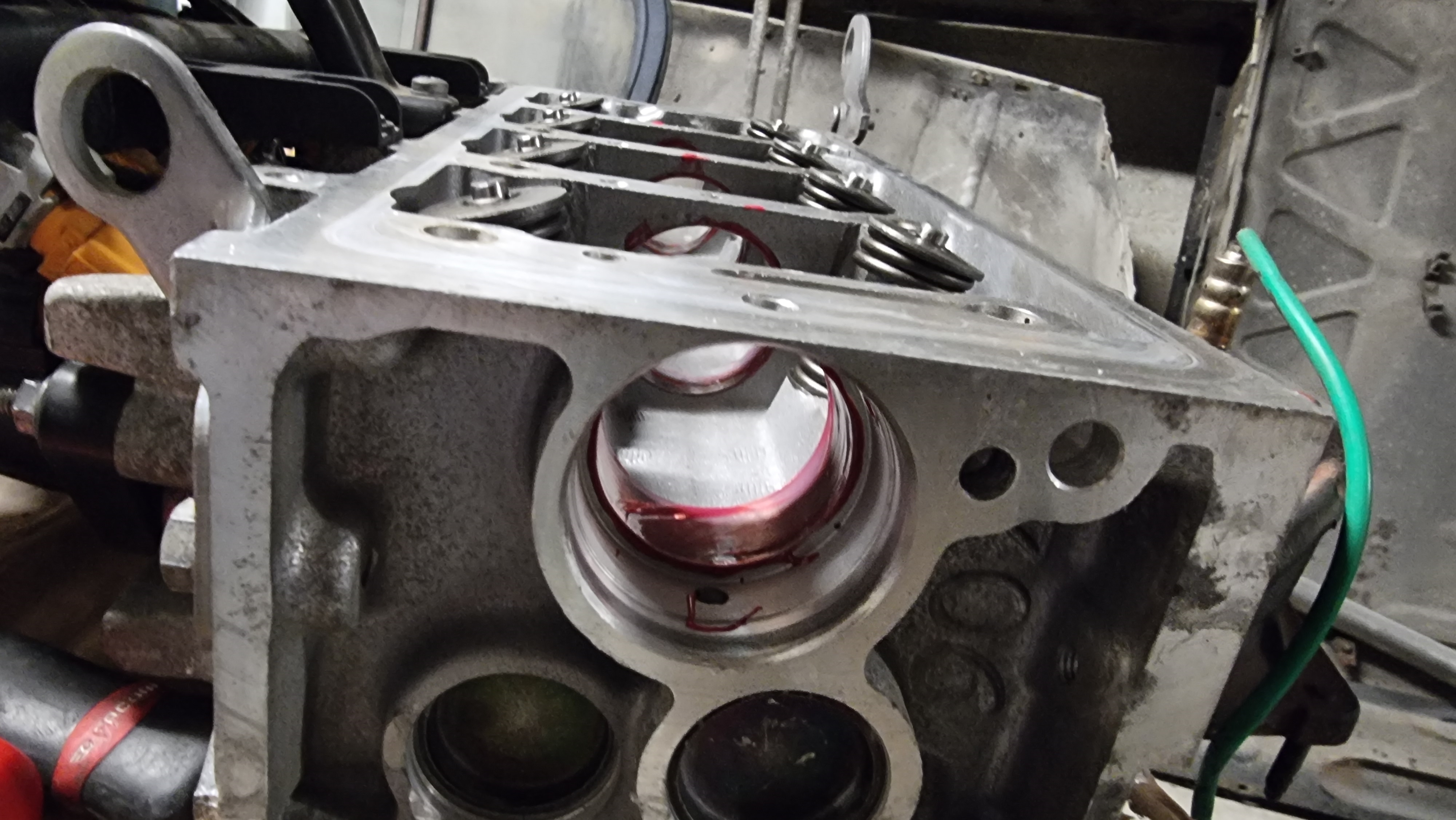 Les pistons marqués, c'est un risque de point chaud qui va faire de l'auto allumage. Sur un 1.4 qui ne sort que 75cv je pense pas que ce soit un soucis. Au pire je les adoucis au papier de verre.