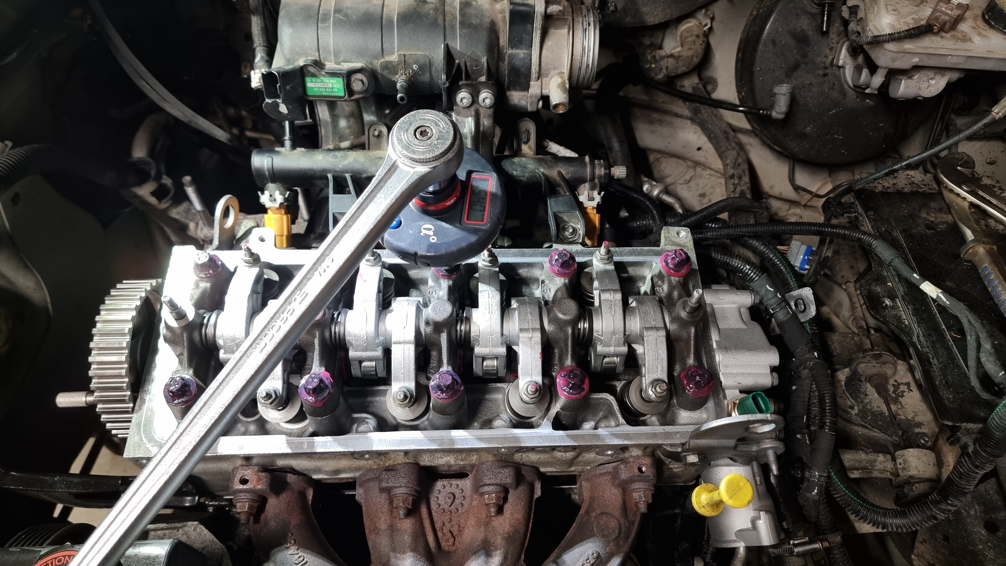 apres un nettoyage du filetage au taraud, la nouvelle lambda rentre sans soucis, on rebranche tout. Un coup de valise pour effacer le code d'erreur, et la voiture démarre sans plus aucun défaut moteur :volta2: