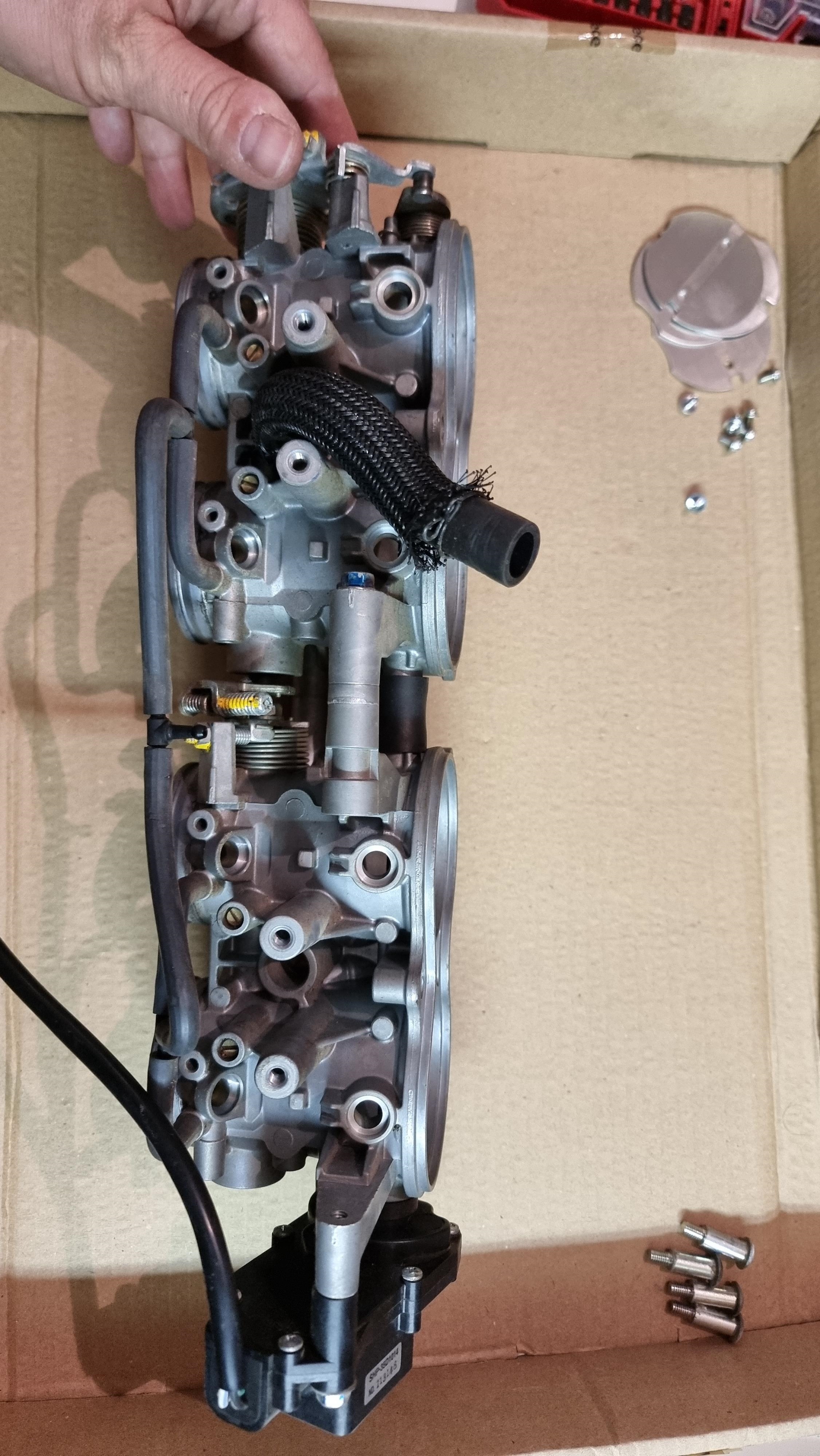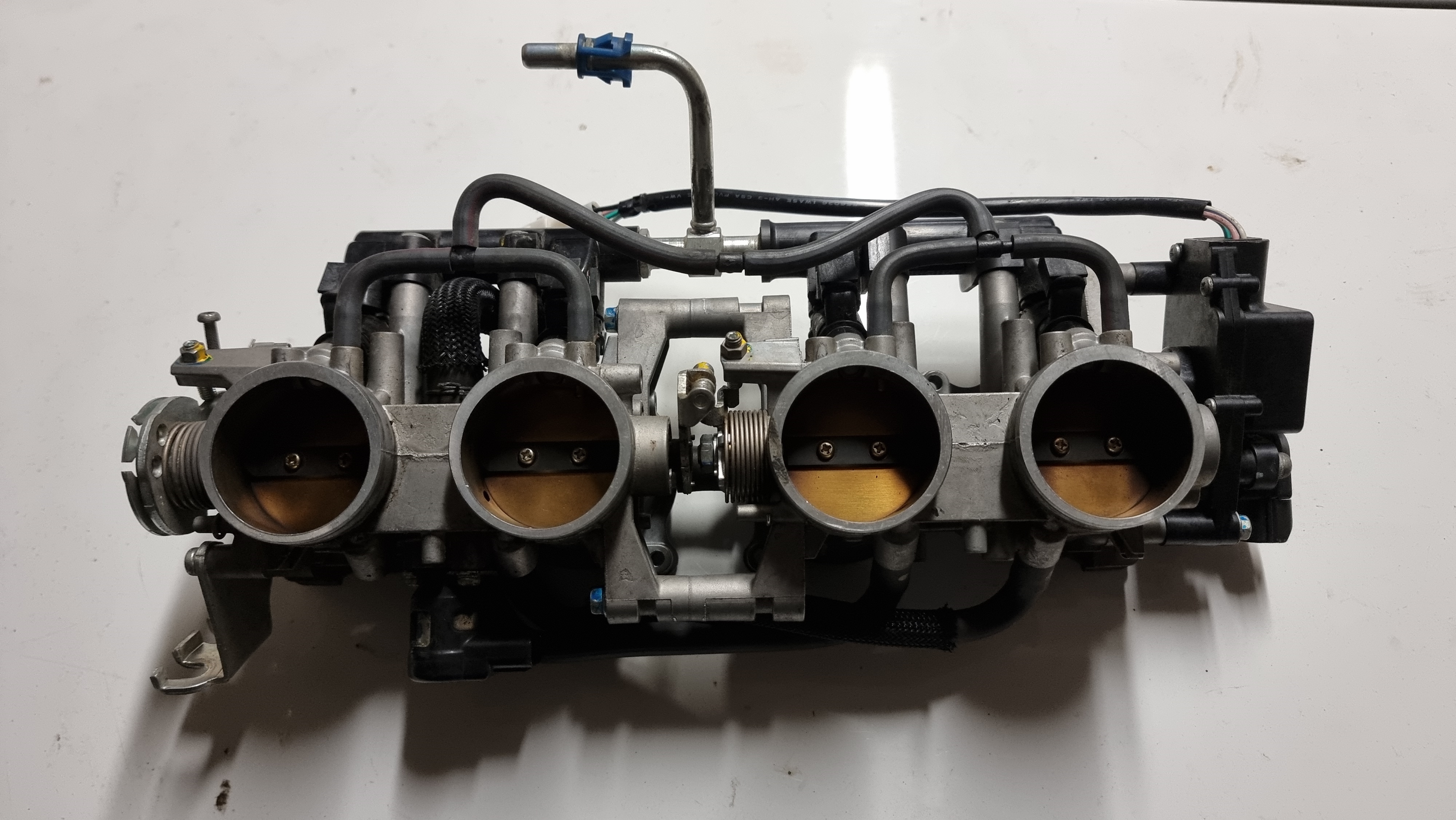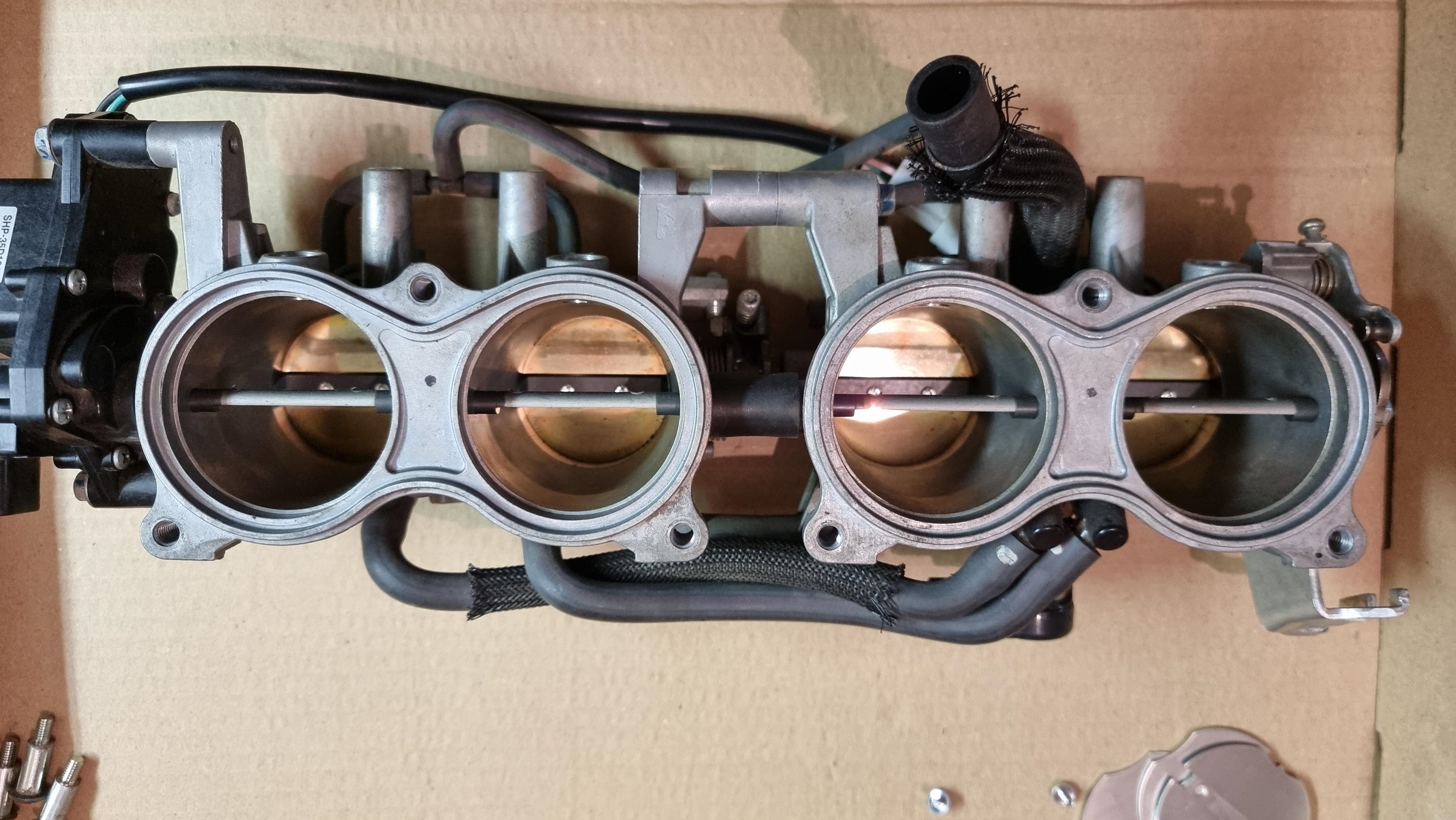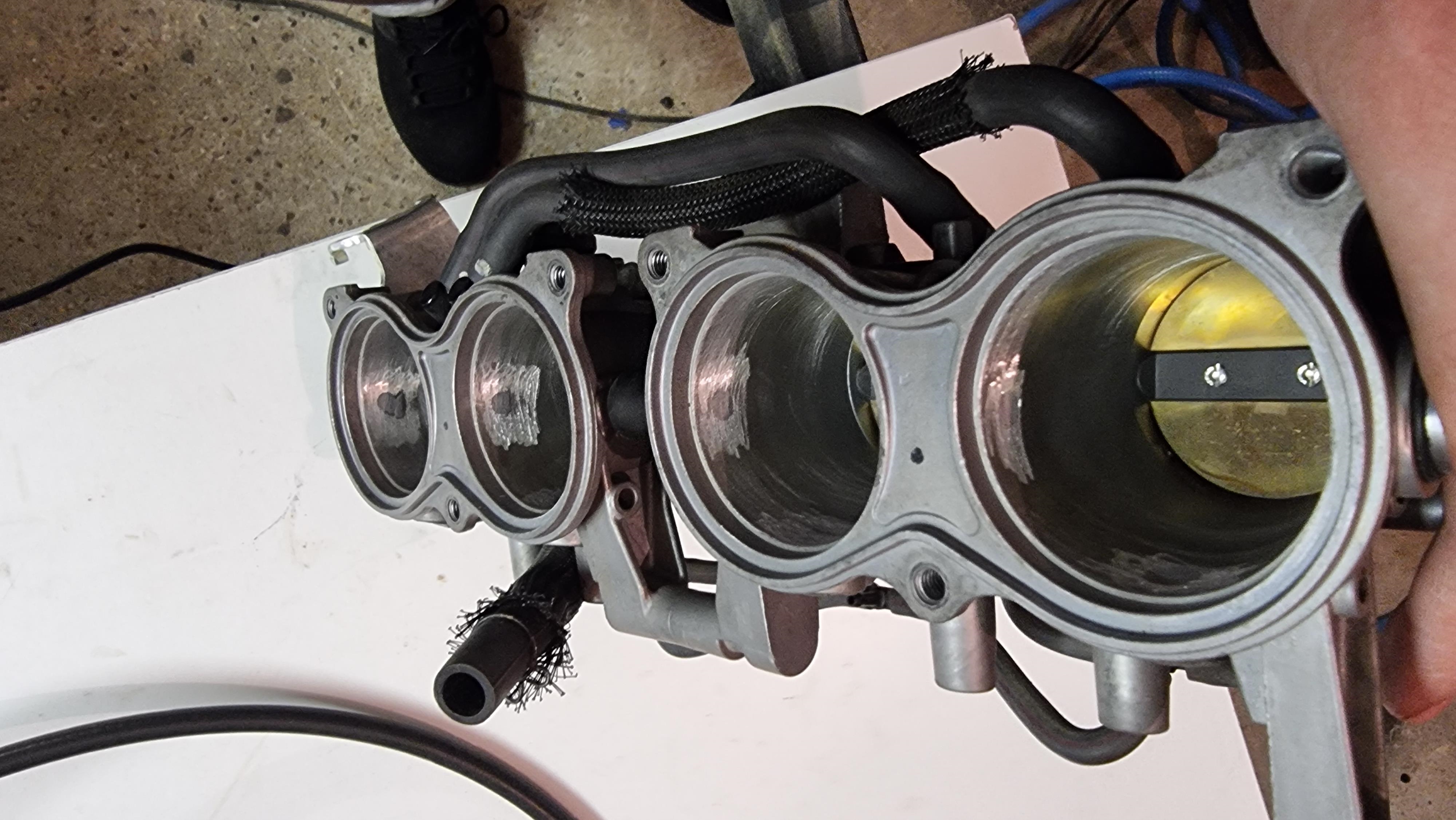 Je vais probablement partir sur cette solution, mais je vais déjà commencer par préparer la rampe de papillon de GSXR, y a pas mal de boulot dessus déjà : Virer le double papillon, les injecteurs primaires et secondaires, et boucher tous les trous associés.