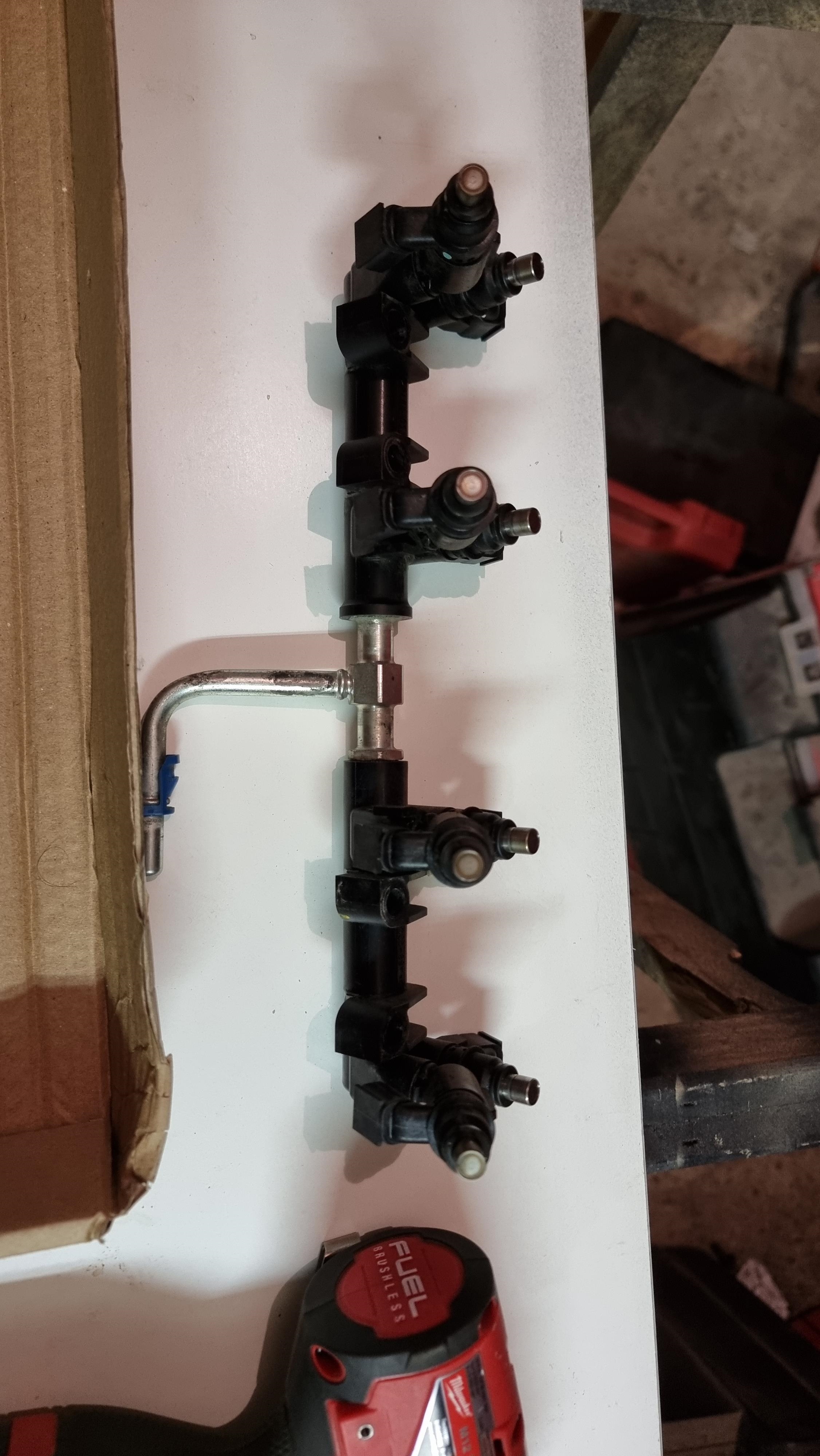 Première étape, retirer le fuel rail, avec les injecteurs primaires et secondaires