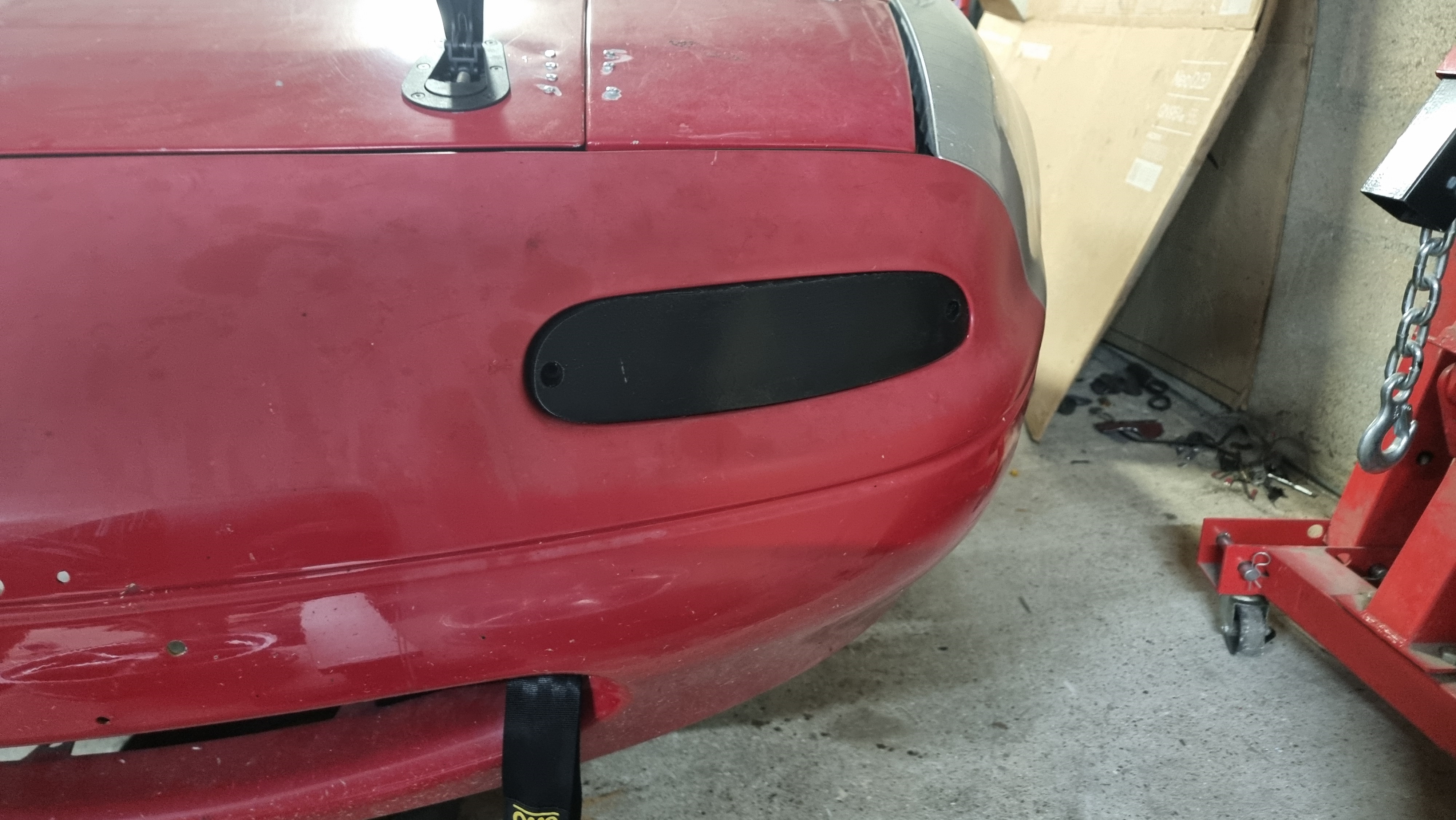 J'ai aussi imprimé pour la roadster pro cup du fils du patron du garage des damiers deux blanking plates qui remplacent les clignotants, ça évite en course de casser des clignotants qui commencent a couter chers en occasion, et ca fait gagner quelques grammes. Et surtout, je peux lui en réimprimer au fur et a mesure des touchettes