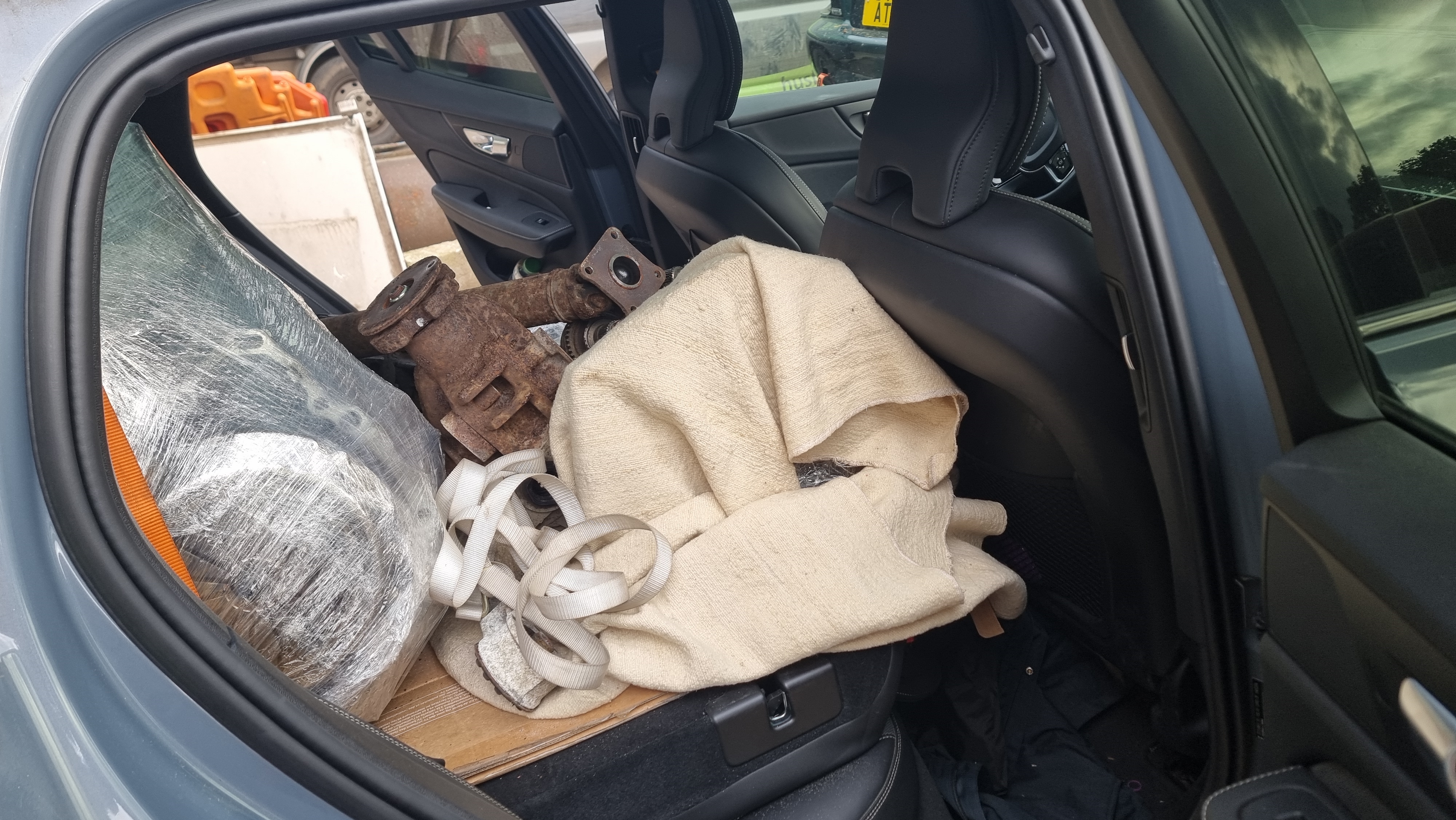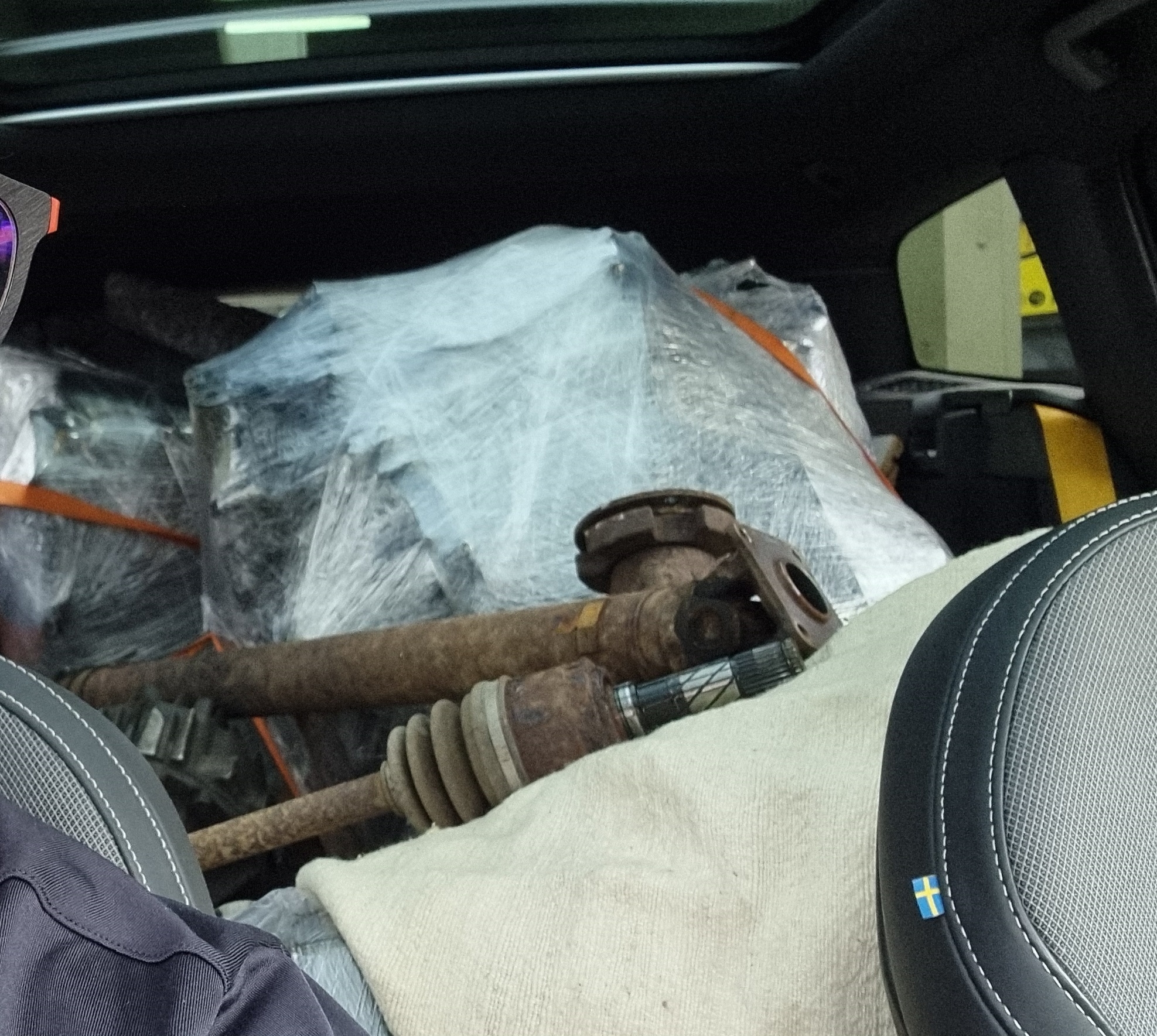 Après la sortie aux Ecuyers avec la barquette et notamment les sessions sur le mouillé, j'avais clairement senti que le différentiel ouvert que j'ai aujourd'hui était problématique. Sur mon ancienne NA blanche, j'avais un VLSD puis j'avais un LSD OBX. Là dès que j'appuyais et partait en dérive tu sentais uniquement une seule roue patiner. Donc je me suis mis en recherche passive d'un torsen, sauf que j'en voulais absolument un en ratio 4.1. Autant dire le truc introuvable en France, vu que ne trouves que des LSD Fuji qui viennent des nbfl boite 6, et donc des ratios de 3.9 ou 3.6 ce que je ne veux pas car sur une prépa atmo ça tire trop long. Et donc en parcourant les groupes Facebook, je tombe sur Willis, de chez Foji Motorsport en UK, communication très sympa, il a pas mal de pièces en stock, dont deux torsen en 4.1 qui viennent des NB 1.8 UK qui ont pour la plupart un torsen en 4.1 avec la boite 5. Le truc c'est qu'il est a coté de Plymouth, genre c'est un peu méga loin par rapport a Douvres/Folkestone. Et l'expédition coute un bras. Voilà, vous commencez a me connaitre du coup, ça a escaladé rapidement, ça fait un an que je me suis pas fait un roadtrip UK/casses auto et quitte à y aller autant rentabiliser. On se retrouve donc Jeudi soir dernier, je quitte le boulot et part directement de Paris direction Dieppe, une nuit dans un hotel B&B cheapos lowcost, et je me retrouve sur le quai a embarquer sur le ferry avec la Volvo à 5h du matin Vendredi  Il faut compter 4h de traversée j'en profite pour prendre des forces  et là je débarque à Newheaven, et je prends direct la route direction Liskeard a coté de Plymouth, il y en a pour 450/500km sauf que waze/maps me font passer par la M25 (l'équivalent de la francilienne pour Londres) et je galère dans les bouchons, waze m'indique 6h pour rejoindre Liskeard, ça risque d'être très short je dois reprendre le Ferry le soir à 23h. Au bout d'un moment ça se dégage et finalement ça roule pas trop mal  Waze me fait meme passer par Stonehenge, ce qui est marrant car on revient en famille dans le coin pour les vacances de la toussaint justement pour visiter Stonehenge et Oxford...  Le roadtrip countryside est cool, le temps est pas horrible, il fait un peu beau un peu gris, j'adore ce genre de trip, juste un peu dommage de pas avoir eu de bro pour venir avec moi cette fois-ci, c'est toujours plus fun a deux.  Tu te rends compte que t'es en UK quand le plombier/spécialiste du gaz a son ford transit avec un kit carrosserie, rabaissement, double sortie, plaque personalisée. Par contre franchement pas un appel de phares, pas un cligno pour te faire dégager, c'est vraiment agréable a rouler.  Après 6h de route j'arrive enfin a destination  Foji est tenu par James et Willis, atelier spécialisé dans tout ce qui est motorsport, préparation autour de la mx5. James et Willis sont les deux "blokes" typiques anglais, blond, coupe mullet et adorables, direct ils me proposent une bière, désolé mais là c'est chaud, j'ai dormi 5h et j'ai encore autant de route pour rentrer. James me dit direct, euuh par contre je pensais que tu viendrais avec une camionnette vu ce que tu as pris... Car je vous ai pas dit, mais en fait, j'ai pas juste acheté un torsen, j'ai acheté deux torsen en 4.1, un arbre de transmission, les demis arbres, une boite 6 vitesses, un moteur de NA 115 nez long et un moteur de NB 140 cv, bref j'ai pris tout ce qu'ils avaient d'intéréssant. T'inquietes James, ça va rentrer, je rabat les sieges de la Volvo, je met des planches et cartons de protection que j'avais pris et on se met a jouer a Tertris et tout rentre ! Bon par contre pas grand chose de plus ne peut rentrer    Pour visualiser, voilà la vision que j'ai dans mon rétro, j'ai plus de 350kg de ferraille derrière moi, je fais attention a bien tout attacher avec des sangles et les points d'attaches de la voiture (anneaux dans le coffre ainsi que les anneaux de fixation des sieges et ceintures  Une fois le tout sécurisé, les comptes faits avec James et Willis, je fais le tour du propriétaire, on est typiquement dans un "unit" des garages UK, je sais pas si vous connaissez le youtubeur Nightride en Pologne, c'est la même ambiance, un hangar en tole, des bagnoles et des pièces partout. Ca c'est la donneuse d'un des deux torsen justement qui est en cours de désassemblage  Y a quelques restes de voitures dehors également  L'exocet est leur dernier "build", assemblée depuis une donneuse, elle a un 1.8 avec un compresseur sous le capot.  Bon tout ça c'est cool, mais je ne peux pas rester trop longtemps, on a au final beaucoup discuté avec James et Willis, qui ont visiblement envie que je revienne, ils me proposent de me mettre de coté des pieces qui m'intéressent maintenant qu'on se connait et qu'ils ont confiance. Donc je reprends la route, bizarrement Waze ne me fait plus passer par le même chemin mais me fait longer la cote sud par Poole, Portsmouth, Brighton. Cette fois-ci que 4h45, la route est longue car moins de motorway, mais ça se fait bien. Je croise une petite Lambo sur la route  J'arrive a Newheaven a 21h30, Ferry a 23h, il était temps, je suis KO et les derniers 50km ont été dur je commençais vraiment a fatiguer. Le Ferry va moins vite qu'a l'aller (probablement pour économiser le carburant et faire la traversée de nuit), j'arrive a 6h du mat à Dieppe. Comme je l'ai fait en mode cheapos, j'ai pas de cabine, j'ai dormi comme un clodo sur un fauteuil, au milieu de british qui ont ronflé comme des enfoirés toute la nuit, autant vous dire que je suis frais. Une fois arrivé en FR, je pars direction Rouen pour aller livrer le deuxieme torsen a mon premier client, a l'heure ou certains vont chercher des croissants, moi je livre des torsen à 7h du mat. Ca me permet de faire un heureux qui en cherchait un rapidement, de faire une rencontre sympa, et de me faire rentrer un peu de cash, car bon j'ai quand meme avancé pas ma