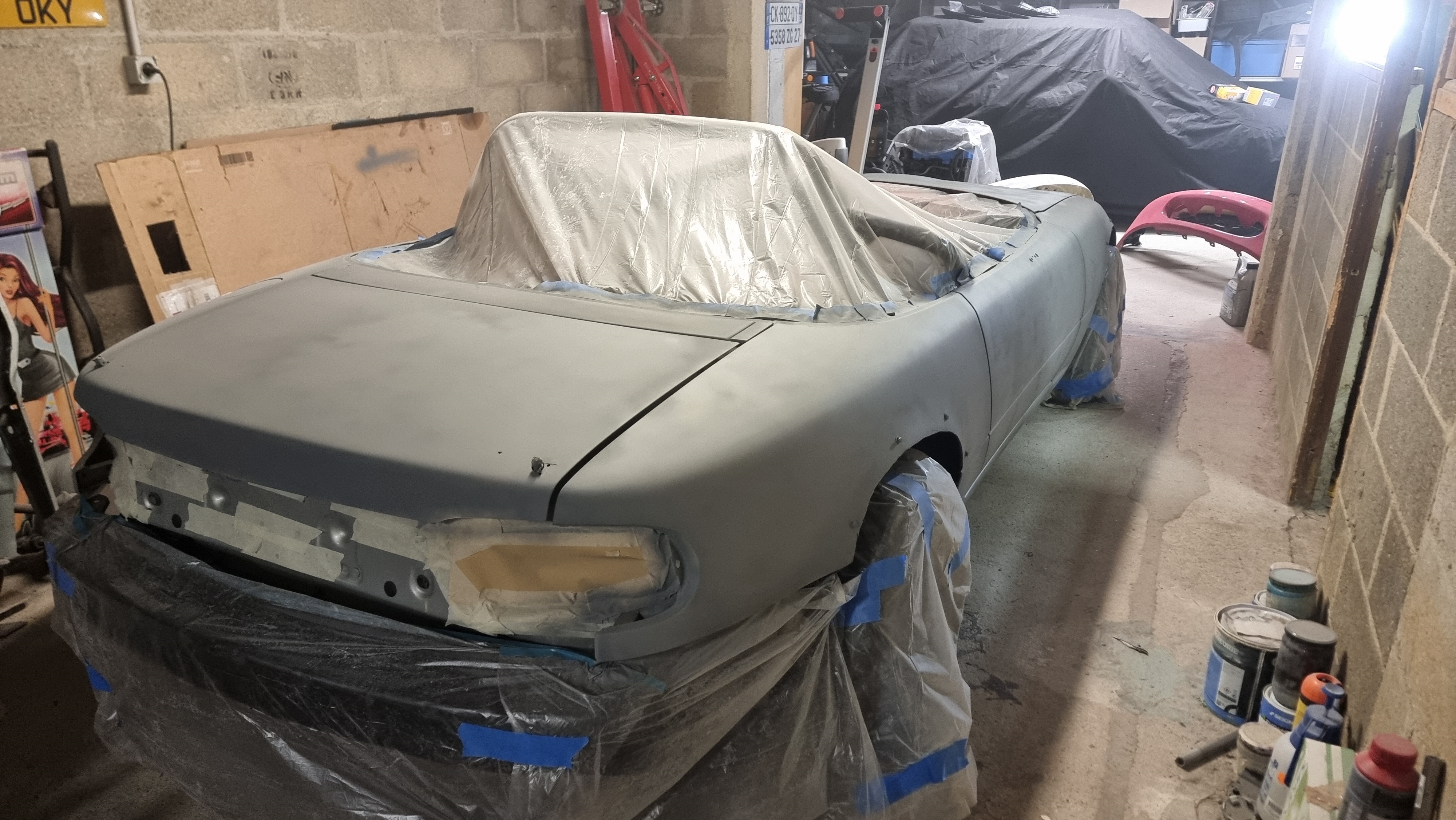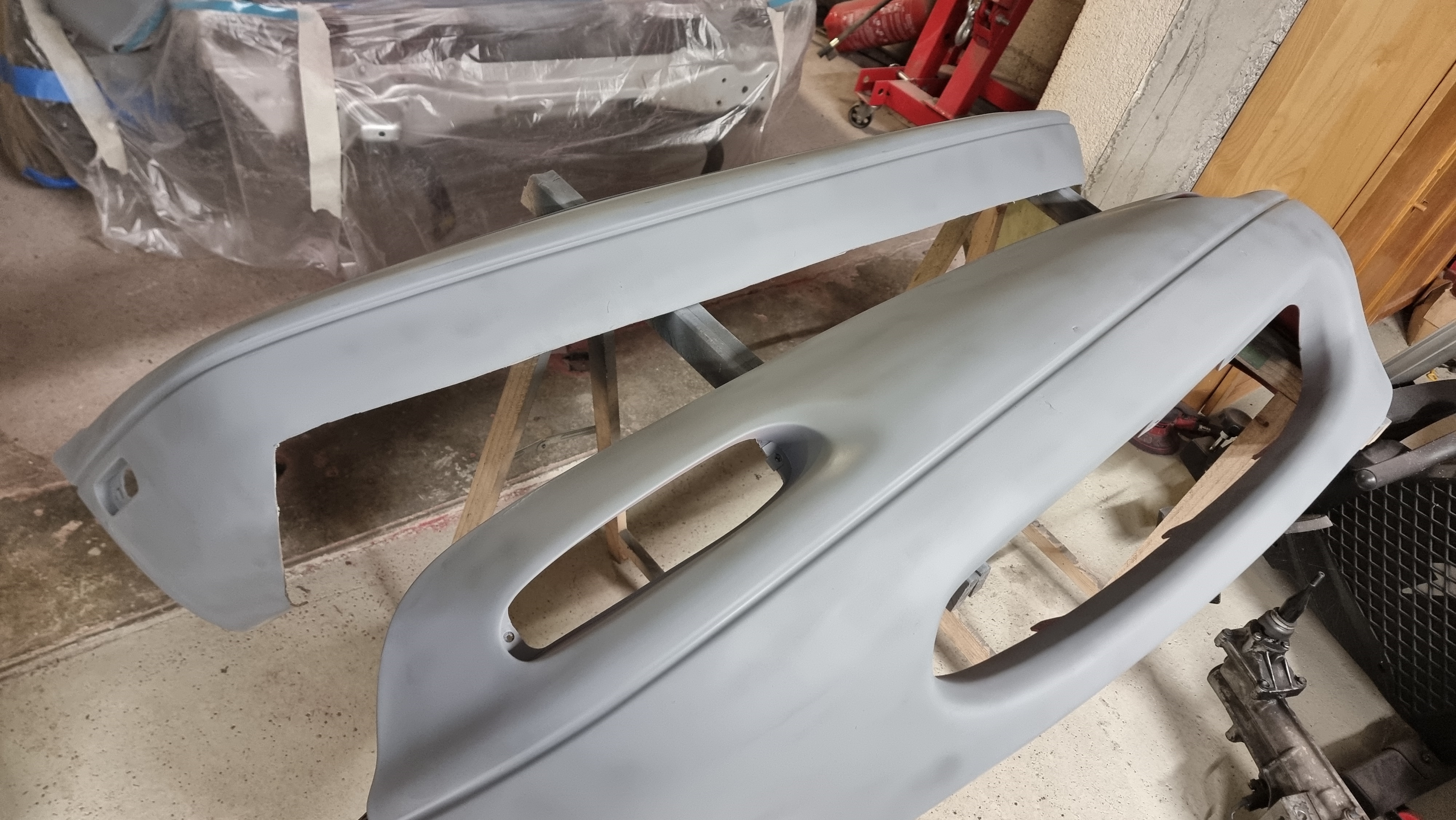 J'ai un peu de temps a moi ce Samedi, donc j'ai pu continuer un peu la préparation carrosserie de la barquette. Premier truc j'ai enlevé les plaques chromées où il y a les vis frankenstein pour le hardtop, sauf que ça laisse des trous ou l'eau peu s'infilter, et c'est moche  J'ai donc imprimé des frankenblanks pour compler l'espace, il suffit de mettre un peu de silicone autour des pins pour faire l'étanchéité et coller  et voila  Puis, un peu de mastic de finition pour combler les quelques défauts qui restaient  Et je suis passé a l'étape du dégraissage avec du dégraissant anti silicone et j'ai néttoyé l'intégralité de la voiture   Et je suis passé à l'appret garnissant, j'y ai passé 4 bombes et j'en ai pas assez ! il me manque deux bombes au moins, le reste devrait arriver demain   j'ai également poncé, nettoyé, dégraissé et primé les parechocs  Il va me rester a poncer tout cet apres granissant avec un guide de ponçage et apres, je pourrais passer à la peinture.
