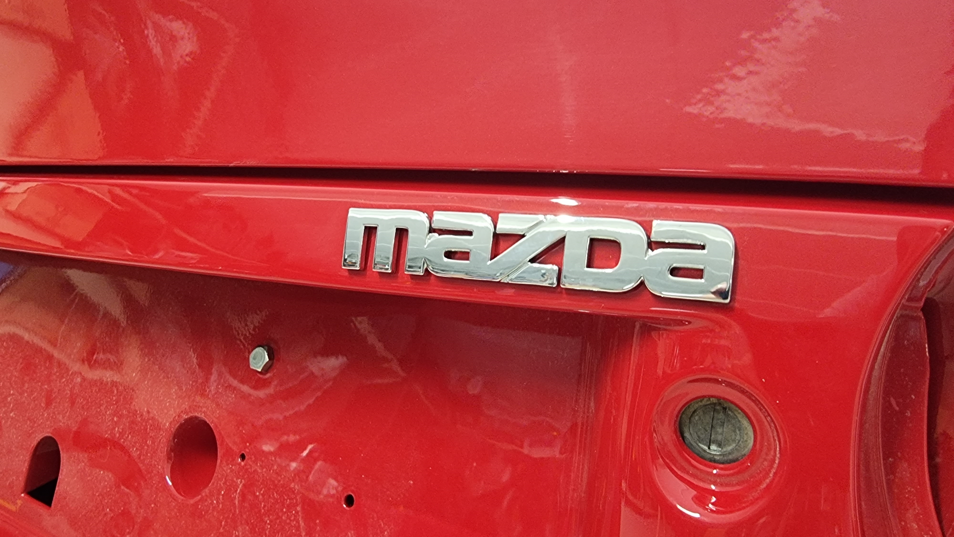 Puis je passe au panel arrière, c'est une pièce très fragile qui casse souvent au démontage remontage et qui commence a être difficile et dure a trouver dans des tarifs corrects, je dois installer un logo Mazda OEM neuf car il fixé avec des pates que tu dois chauffer, donc au démontage tu le casses forcément