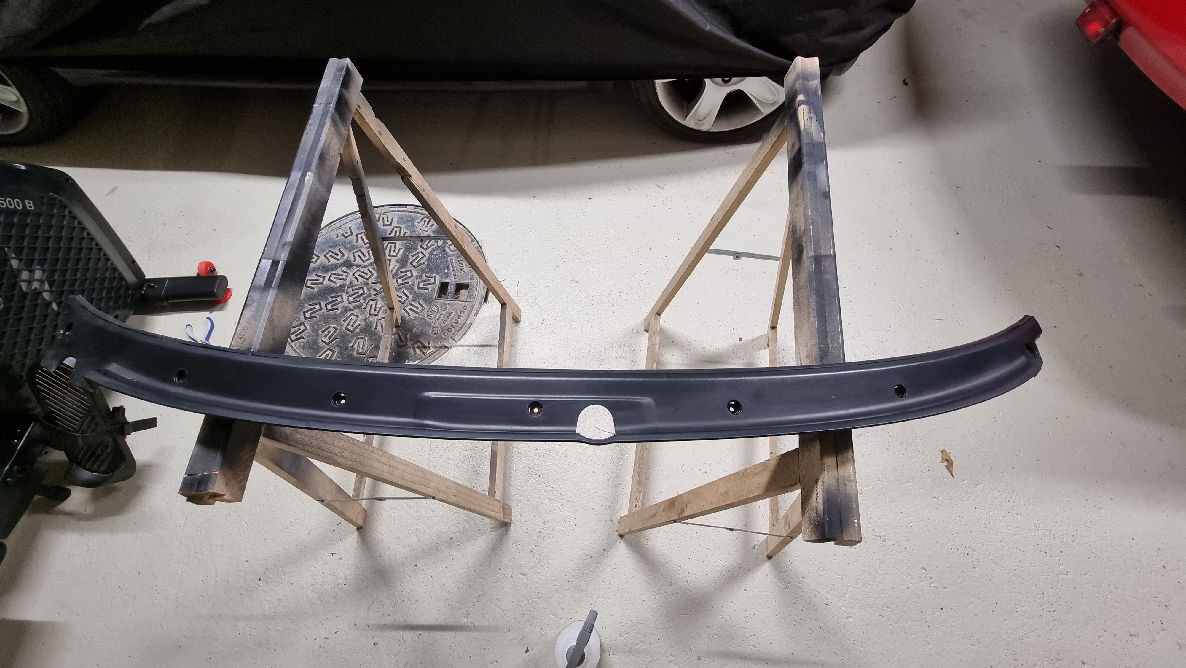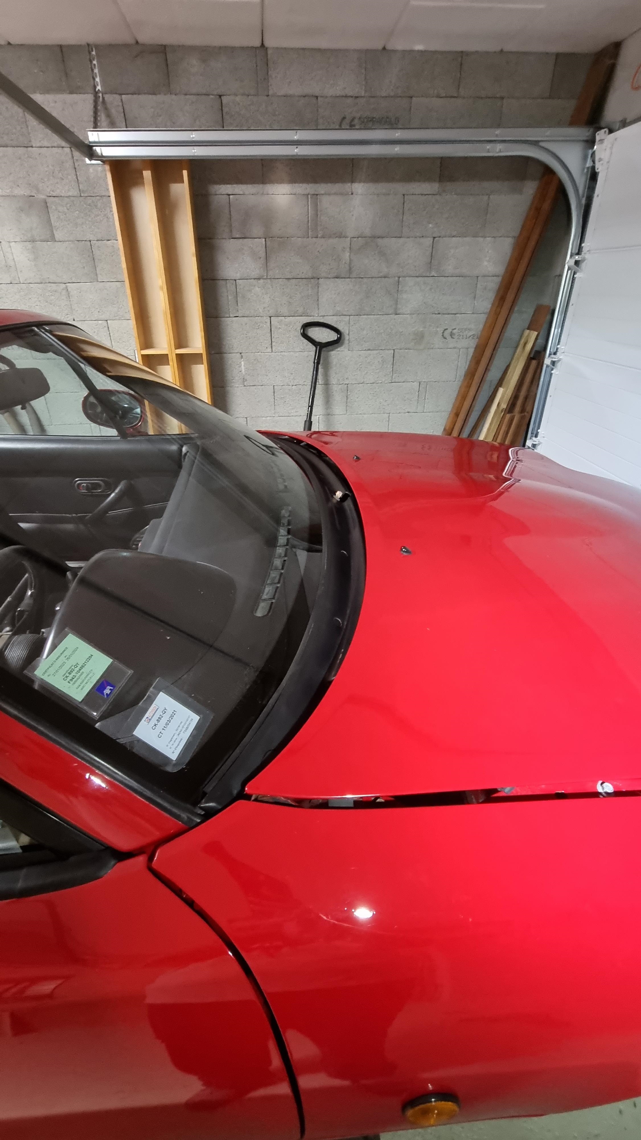 Puis j'ai installé le plastique de la baie de parebrise, bien connu des restaureurs de mx5, ça pete comme du verre et coute 200 euros en OEM, donc on y va gentiment et tranquillement. J'ai recollé sur les coins le joint qui se décollait, nettoyé et réinstallé.
