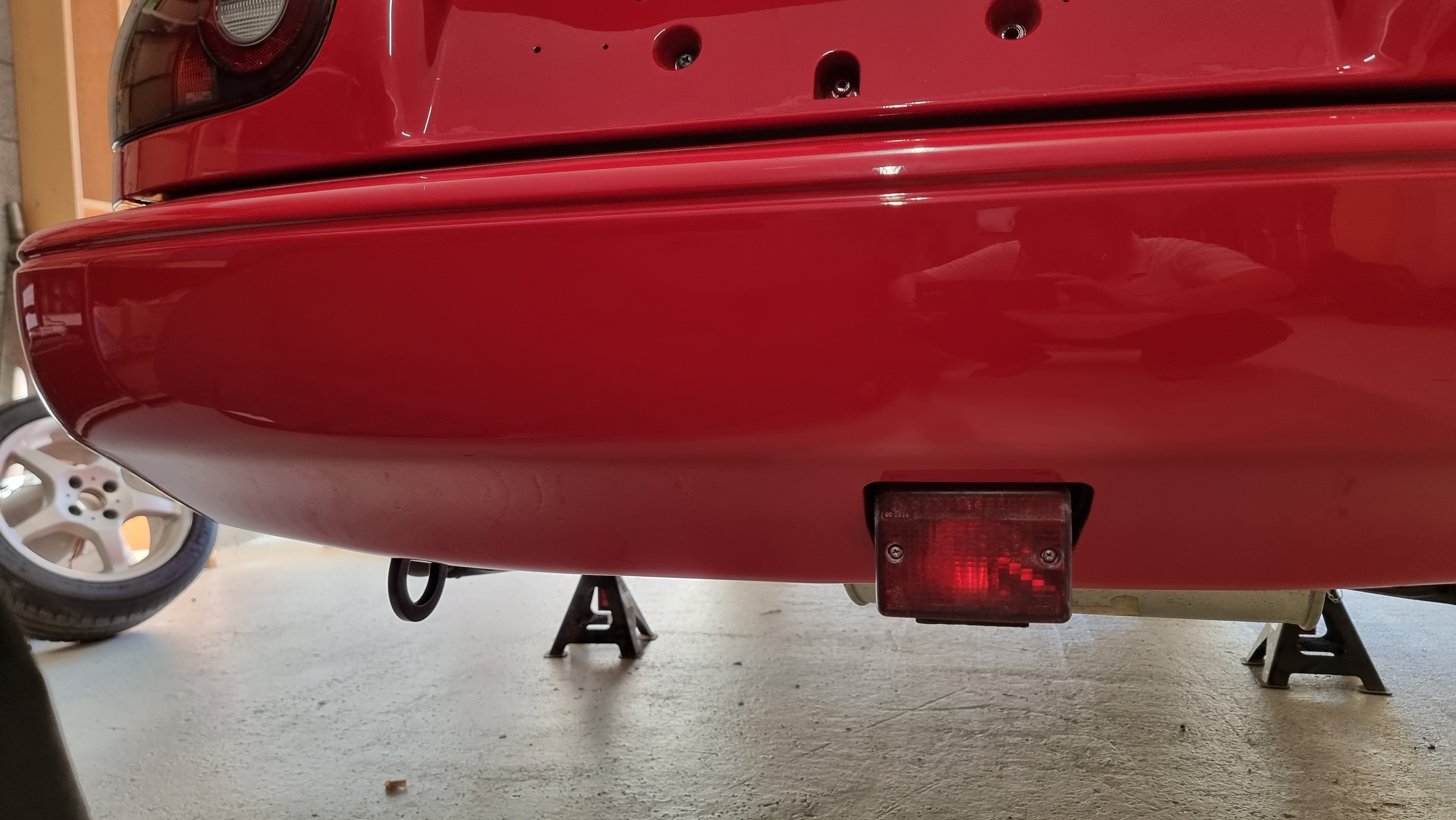 Puis j'installe le tow hook jass performance. Je sais, c'est pas OEM, mais j'ai essayé de le mettre le plus haut possible pour qu'il ne soit pas trop visible, je trouve que ça va bien avec le look de la voiture (avec le demi arceau, elle n'est déjà plus OEM)