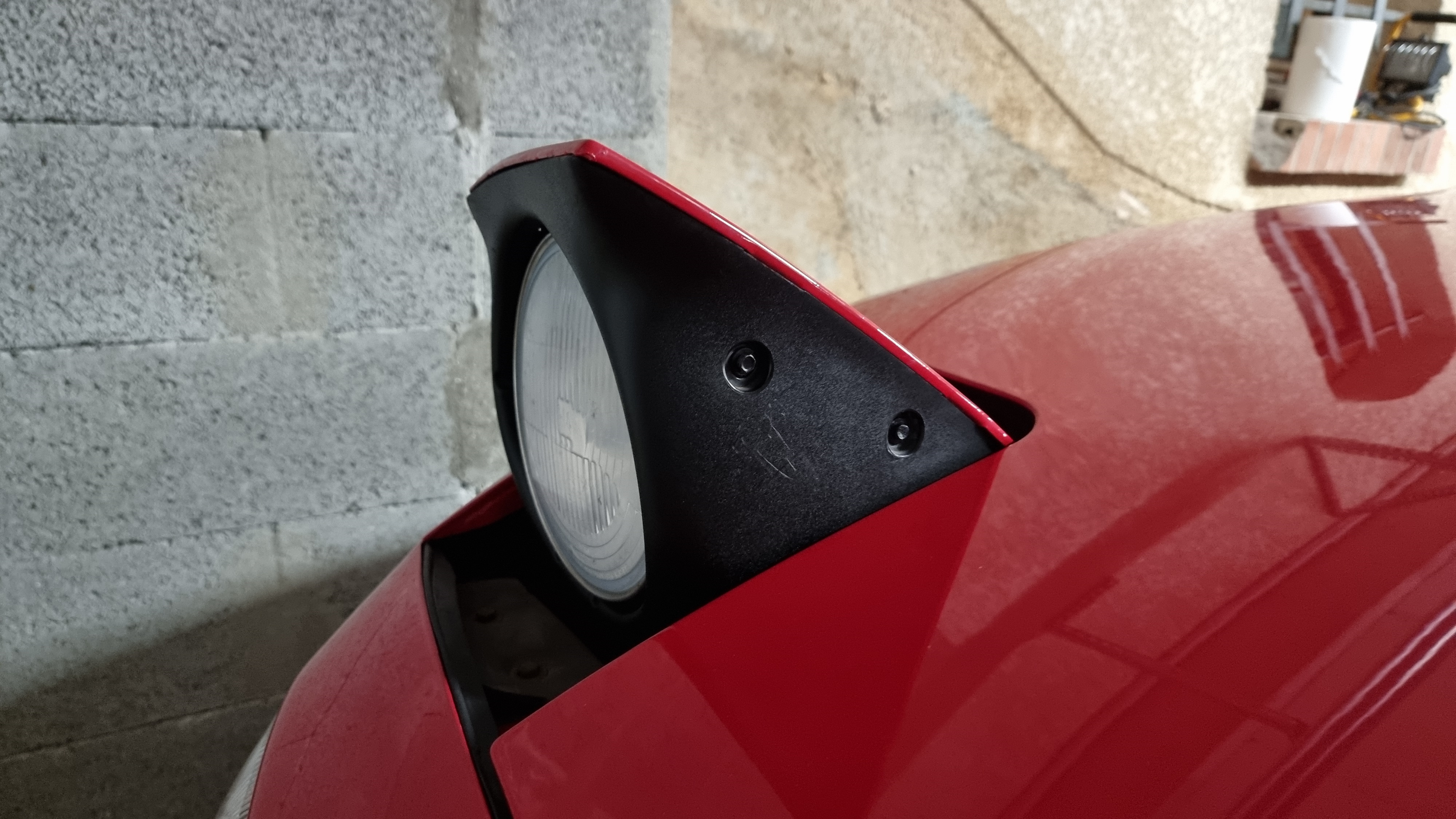 J'ai continué les quelques petits ajustements esthétiques sur Flash, les caches de phares étaient plus gris que noir, et les vis complètement rouillées. Traitement et peinture en noir des vis + passage d'un traitement céramique sur les plastiques ont donné un coup de jeune aux phares :