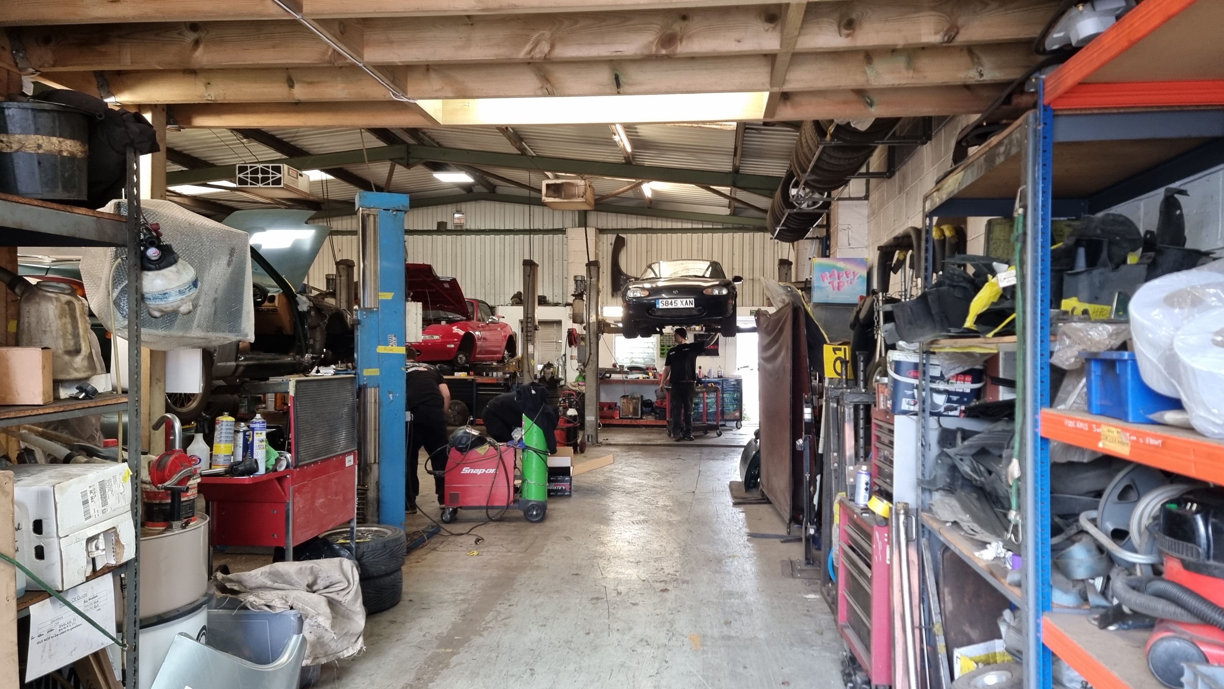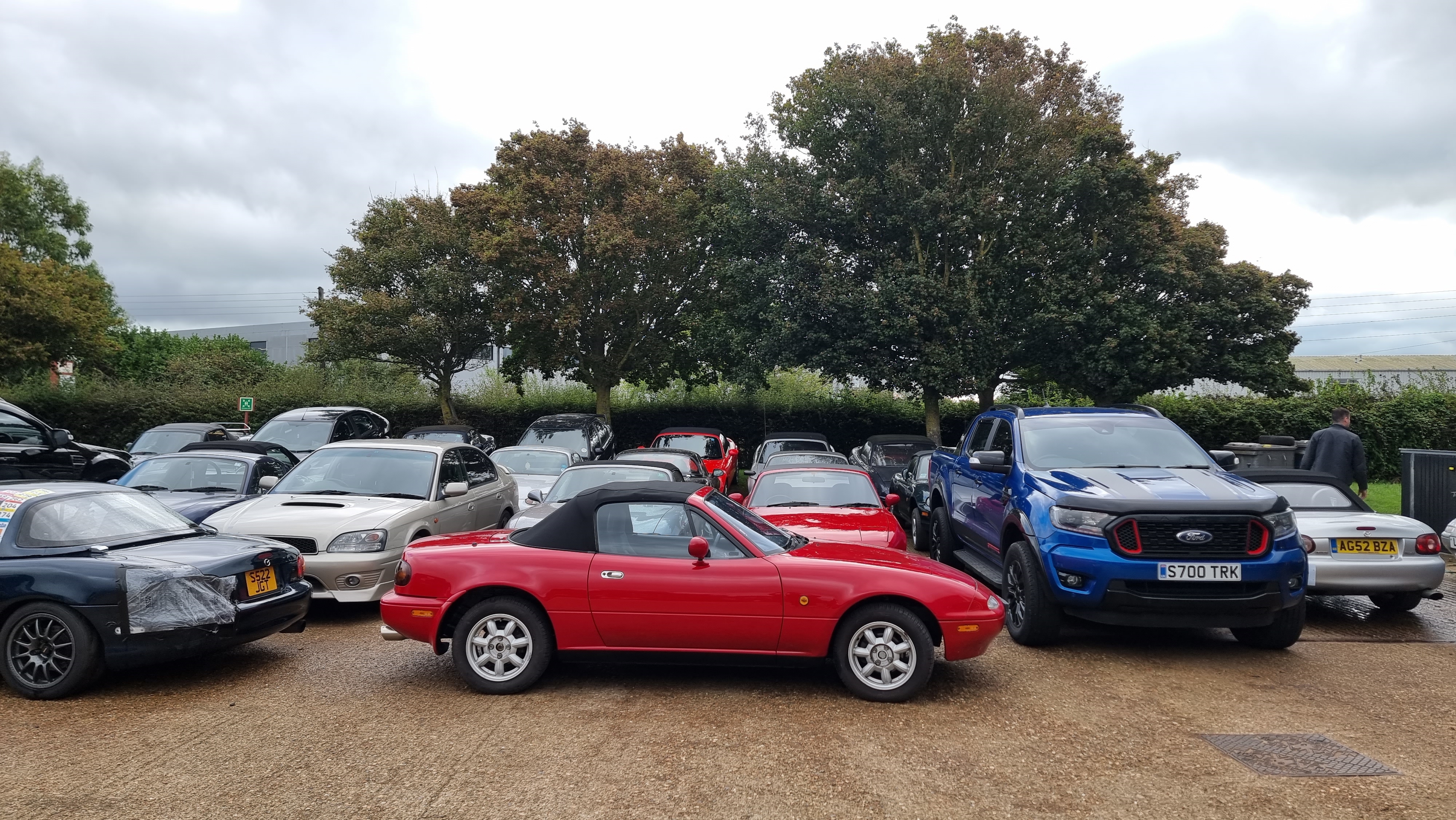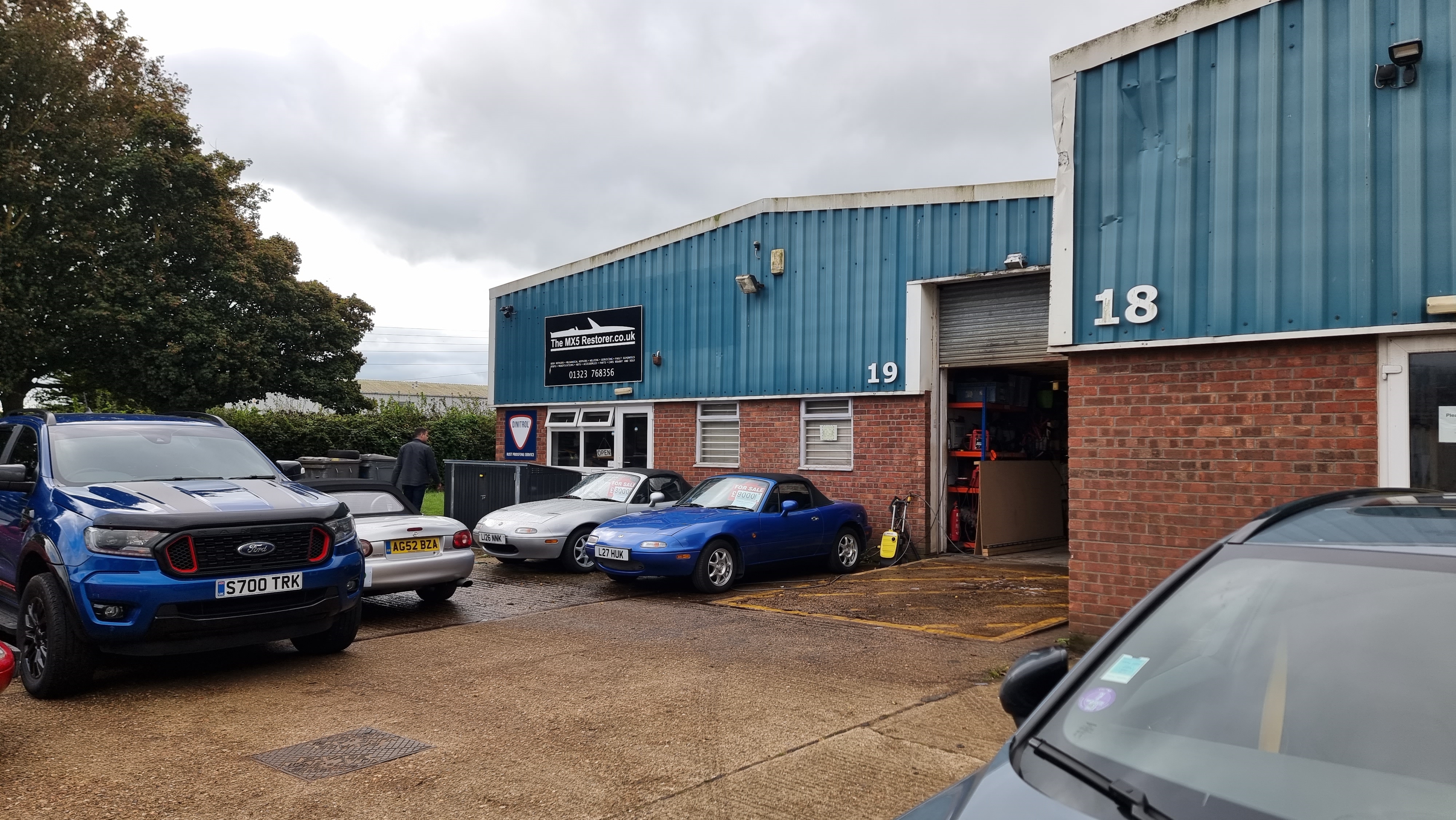 Arrivés relativement rapidement chez TheMx5Restorer on voit rapidement qu'on est au bon endroit, des mx5 partout et dans tous les états