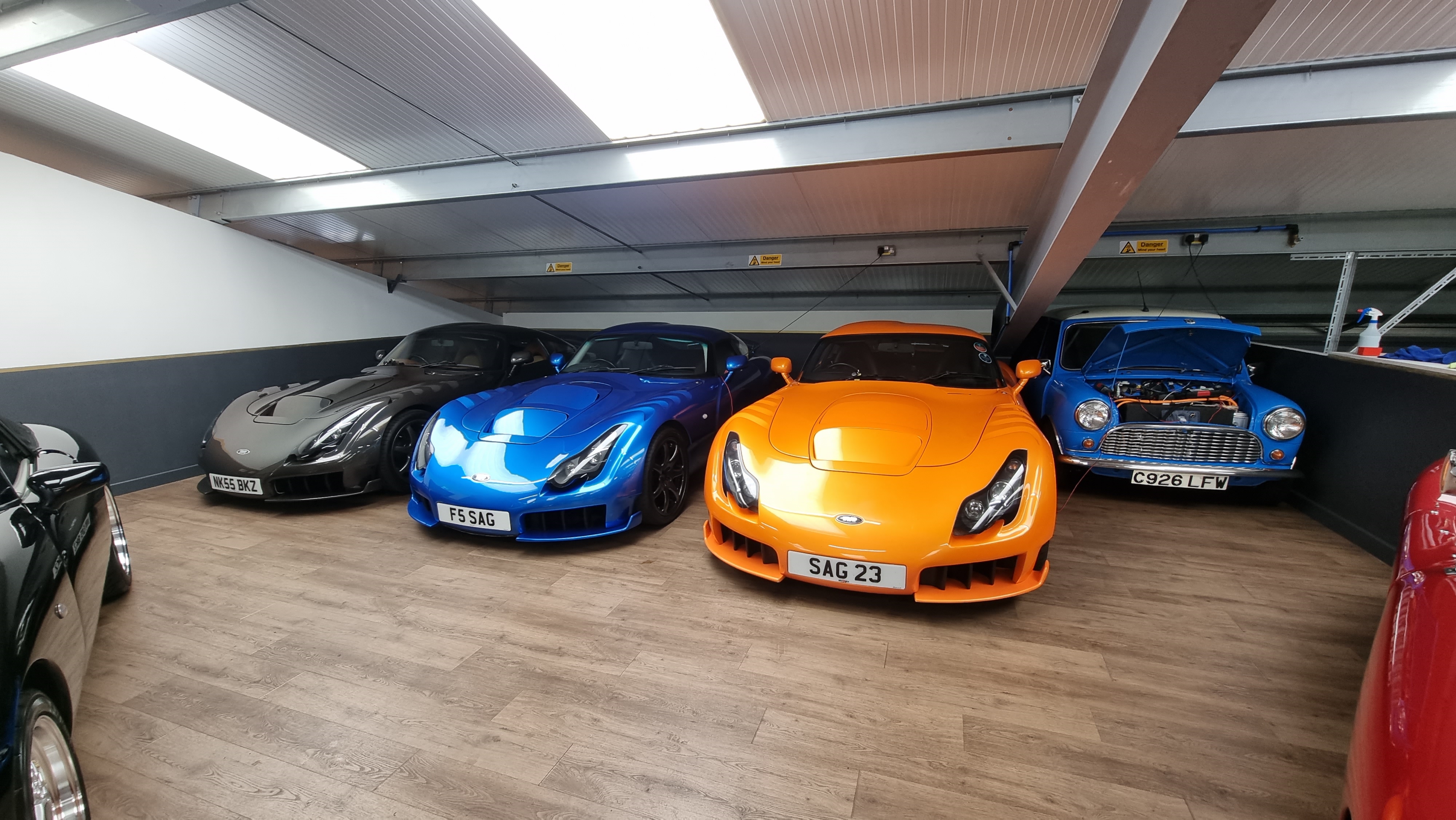 Une Cerbera, une Nissan GTR, une mini electrifiée, une Ultima GTR avec un V8 Chevrolet, le truc est Road Legal mais risque de te tuer 20* par jour.