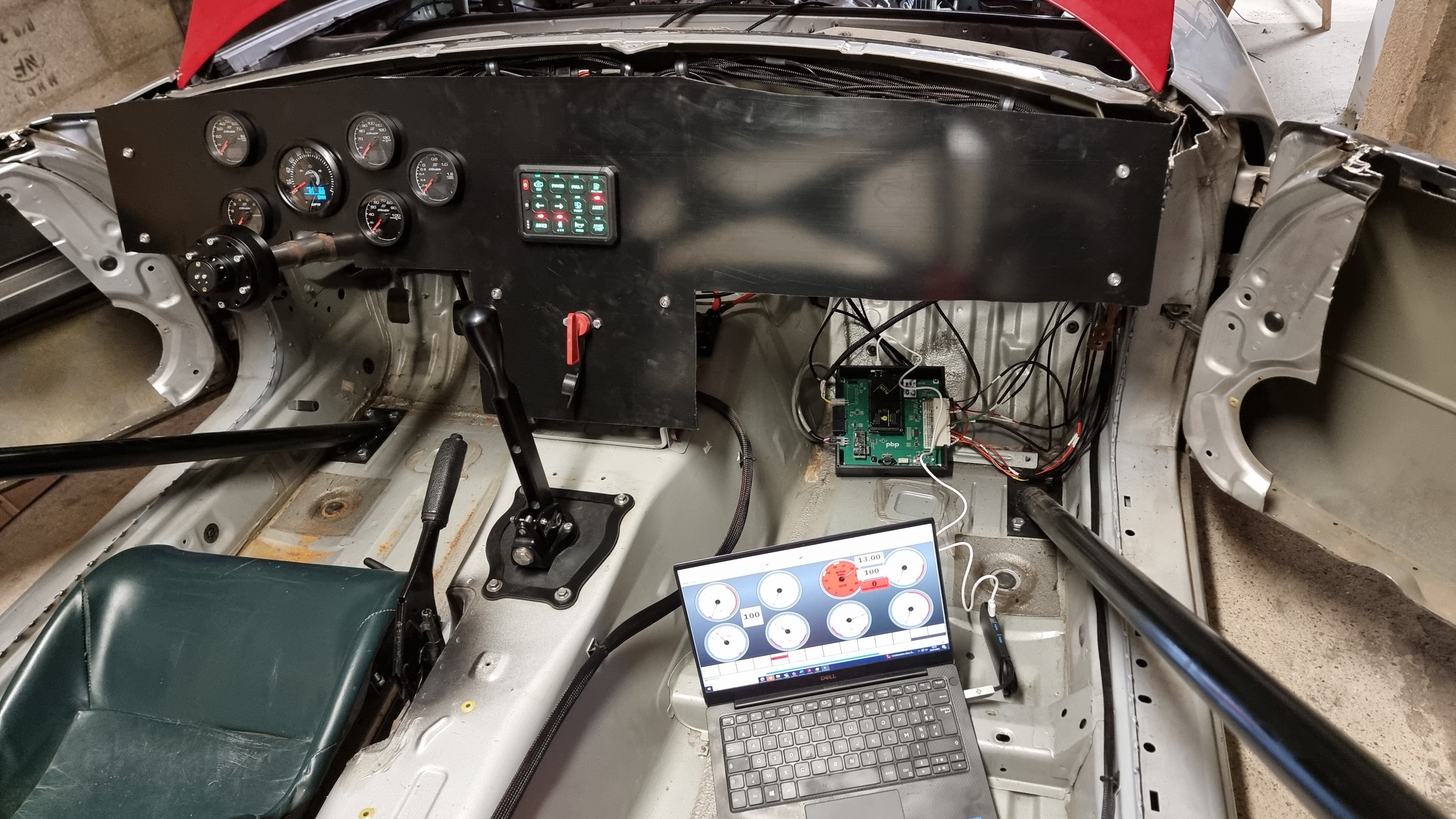 Pas beaucoup d'avancement sur la barquette, j'ai installé le radiateur en alu ainsi que les deux ventilateurs, celui coté passager est actionné par le panel tant que Fan Auxiliaire, celui coté conducteur sera piloté par la gestion sur déclenchement en fonction de la température  Le démarreur est également cablé  Le panel est positionné (pas encore fixé j'attends des vis), le tableau de bord est pas loin de la version définitive  J'ai du coup mis de l'huile dans le moteur, et premier test, faire tourner le démarreur pour faire tourner le moteur de lui même, j'en ai profité pour tester les autres fonctions, le ventilateur, le klaxon etc.... https://www.youtube.com/watch?v=FkGGxRds-KUIl me manque l'alternateur et la pompe a essence à cabler, mais j'attends les connecteurs OEM, je suis donc passé au plat de résistance, je commence le faisceau moteur/ECU