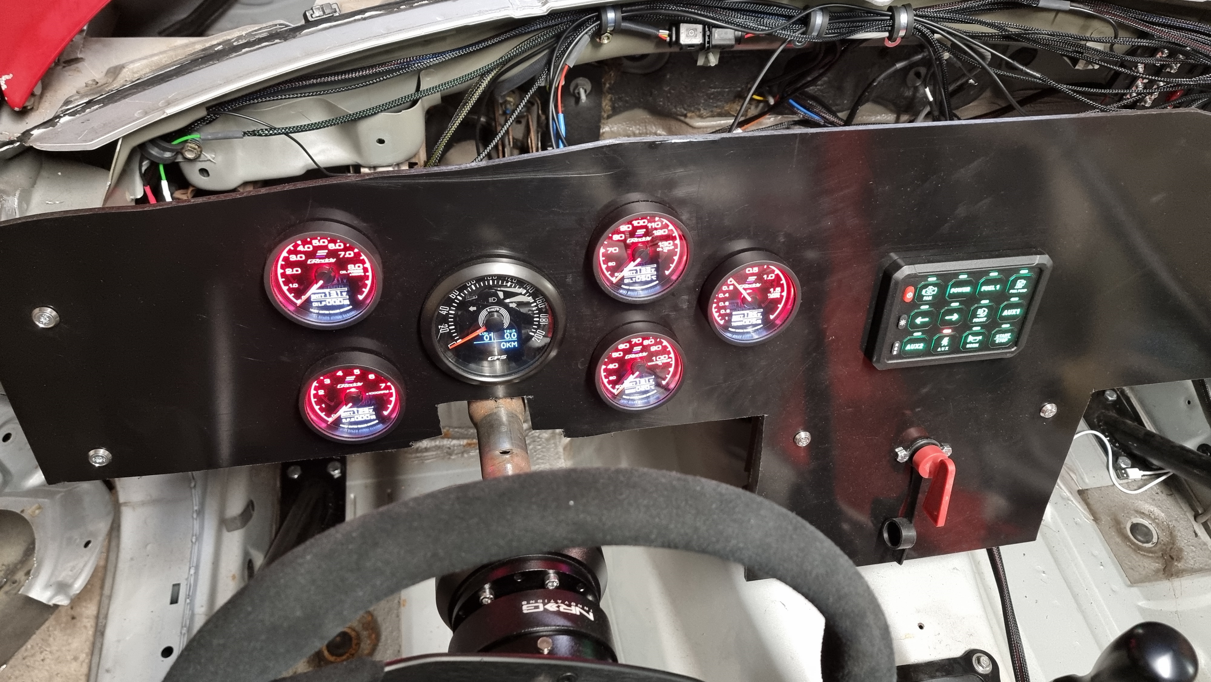 Objectif du jour, tenter de démarrer le moteur. Je commence par vider le réservoir de la vieille essence, elle y est depuis 5 ans, je vais pas essayer avec ça. Je le vide et remplis de 10L de SP tout neuf. Sauf que comme un connard, j'en met partout, du coup l'atelier baigne dans les vapeurs d'essence, et je dois avouer que j'ai toujours quelques craintes avec l'essence, j'aime pas trop y toucher, déjà parceque j'ai quelques mauvaises expériences avec ça (remember les 3 bars de pression d'essence en plein dans les yeux) et que j'ai toujours peur de foutre le feu au garage, et du coup forcément à la maison qui est au dessus.... Du coup ben j'hésite a tenter de démarrer dans un garage plein de vapeurs d'essence, du coup j'ouvre tout en grand, je sors la mini et la 106, je fais un coup de ménage, pour finalement bouger la barquette en la poussant et la mettre dans le nouveau garage, au moins elle est pas au milieu des vapeurs  Bon, au bout d'un moment, faut se lancer, y a plus trop de vapeurs, j'ai assez tourné autour du pot, je vous avoue que je transpire un peu, putain ça fait 6 mois que je suis dessus, j'espere ne pas tout péter. J'installe des bougies neuves. Première tentative de démarrage, 30 bonnes secondes, ça tourne ça tourne, ça ne faire rien, et au bout d'un moment, ça commence un peu a toussoter. Deuxième tentative, je me dis qu'il que je prenne la vidéo : Putain, ça a craqué direct, elle toussotte, tourne un peu comme une patate, mais putain ça tourne, du premier coup, limite elle est stable au ralenti. j'ai pas trop laissé tourné car je voulais faire un check up ensuite pour vérifier qu'il n'y a aucune fuite d'essence J'ai fait par la suite plusieurs démarrage, ça démarre direct, sans aucun soucis. par contre la voiture reste en train de tourner dans le garage donc je coupe assez rapidement quand même, je ne veux pas intoxiquer tout le monde. Et je suis en échappement libre là (pas de cata) donc je réveille tout le quartier Maintenant que je sais globalement le faisceau marche, je coupe et j'ai pas mal de cable management a faire, resserer tous les colliers, et finir d'installer définitivement le tableau de bord.   J'ai quelques fixations a finir coté tableau de bord, puis j'ai encore pas mal de boulot : - Finir de visser l'arbre de transmission sur le pont (doit y avoir une vis là  ) - Cabler le capteur de vitesse sur la boite - Installer le capteur de température d'huile - Me fabriquer un tube afrique (j'ai les flanges et le tube, me reste qu'a découper et souder) - essayer d'améliorer un peu la géo avant - réussir a sortir la voiture pour qu'elle tourne dehors, histoire de faire la purge du ldr la faire bien chauffer et essayer de la faire tourner un peu plus correctement Mais putain elle marche, j'avoue j'y croyais pas quelle démarre au premier coup, j'ai tellement fait de trucs (le faisceau complet, l'allumage, le tableau de bord made in aliexpress)... et je ne vois pas de trucs qui ne semblent pas fonctionner pour l'instant Bref, je crois que c'est presque officiel, déverminage dans un mois au Mas du Clos (bon j'aurai la V60 Polestar en voiture de spare au cas où je tombe en panne  )