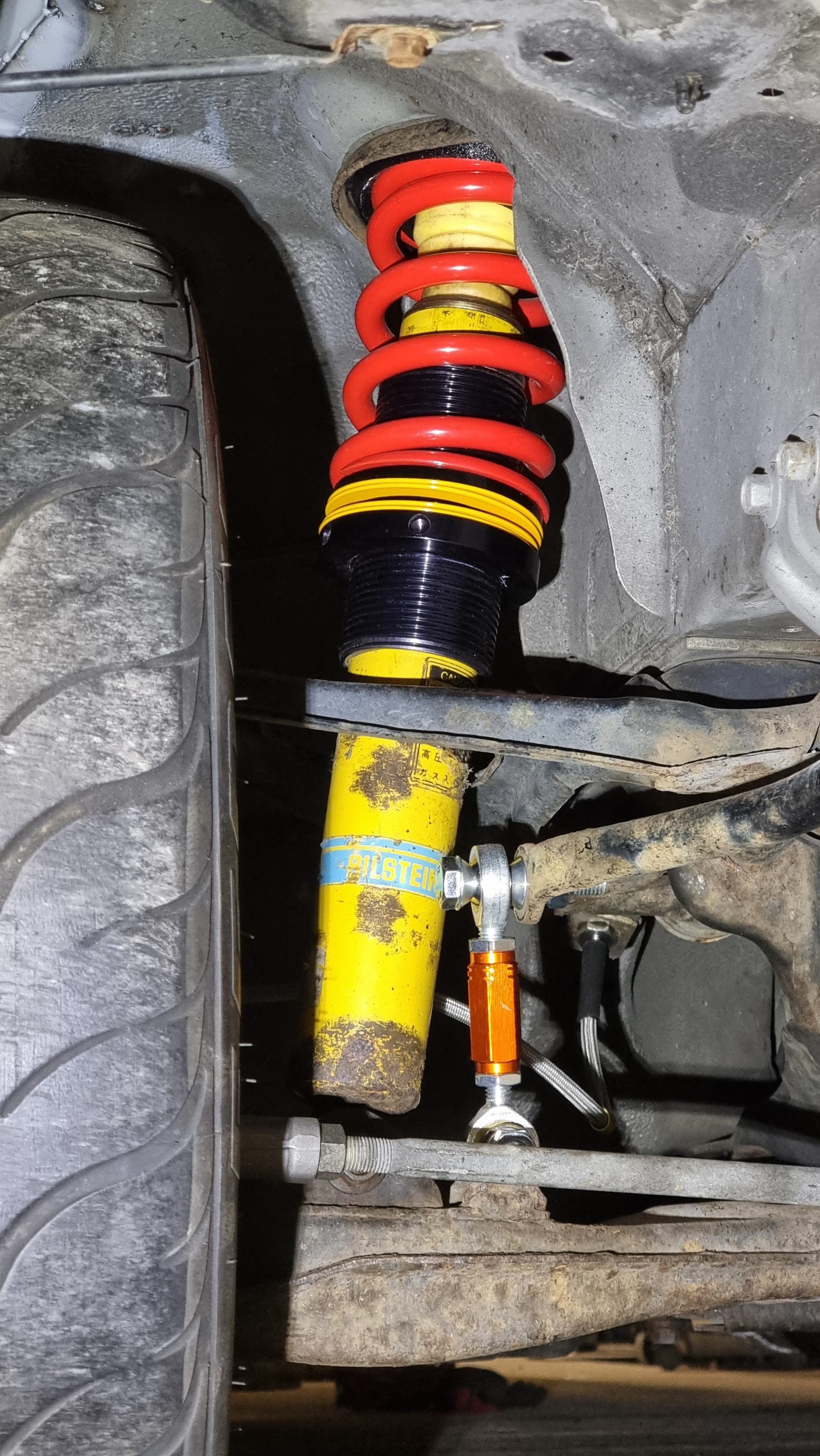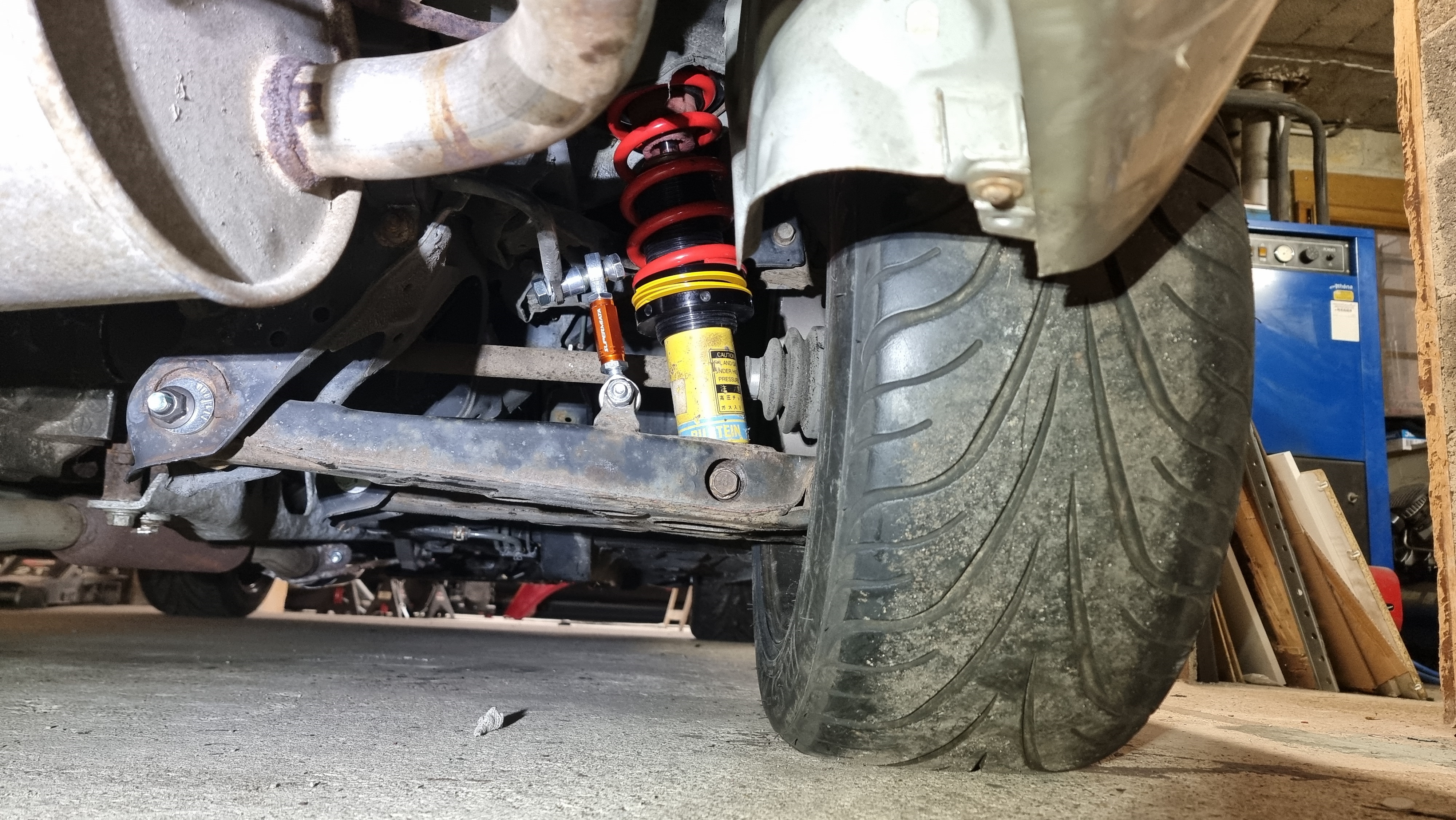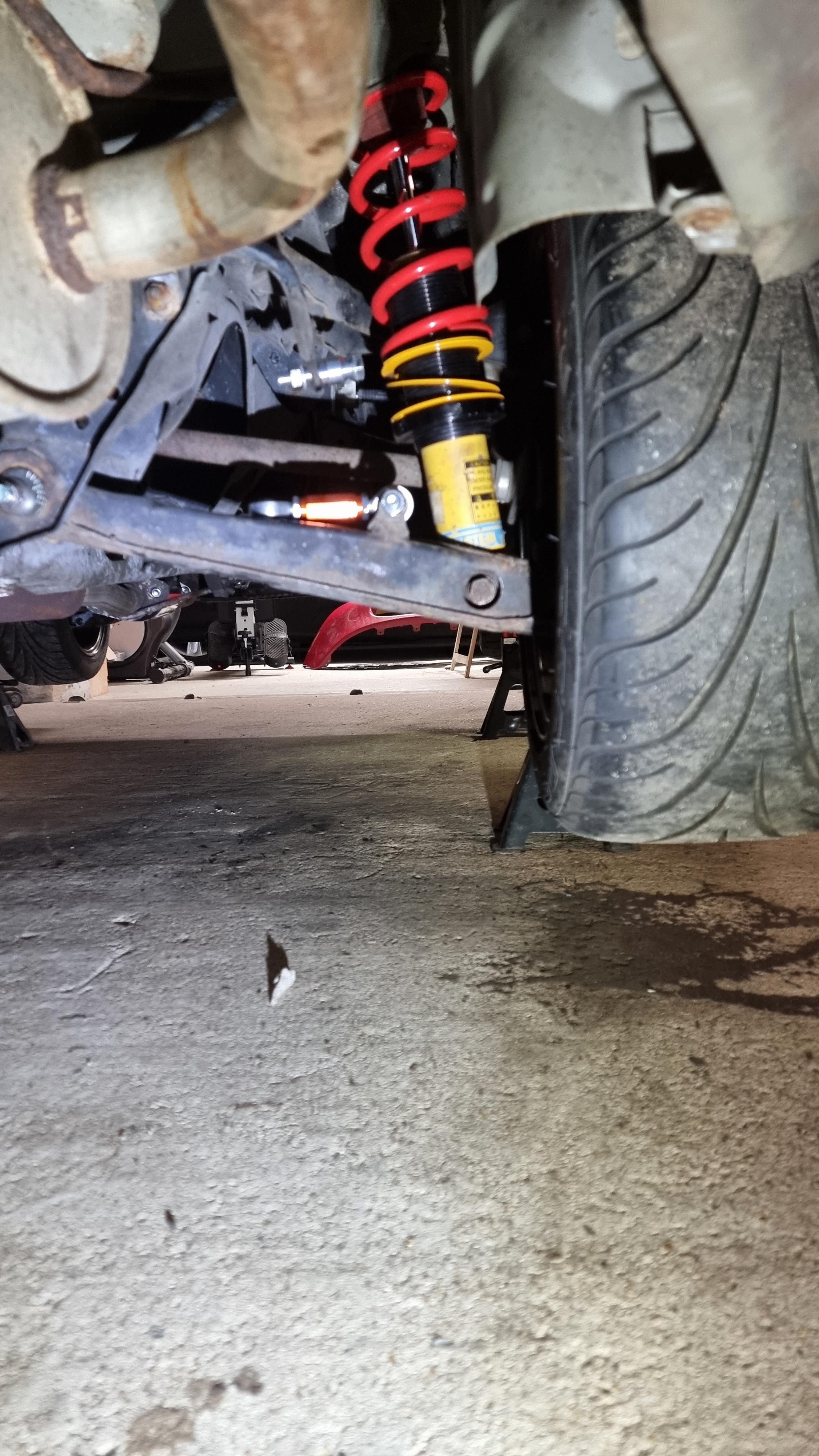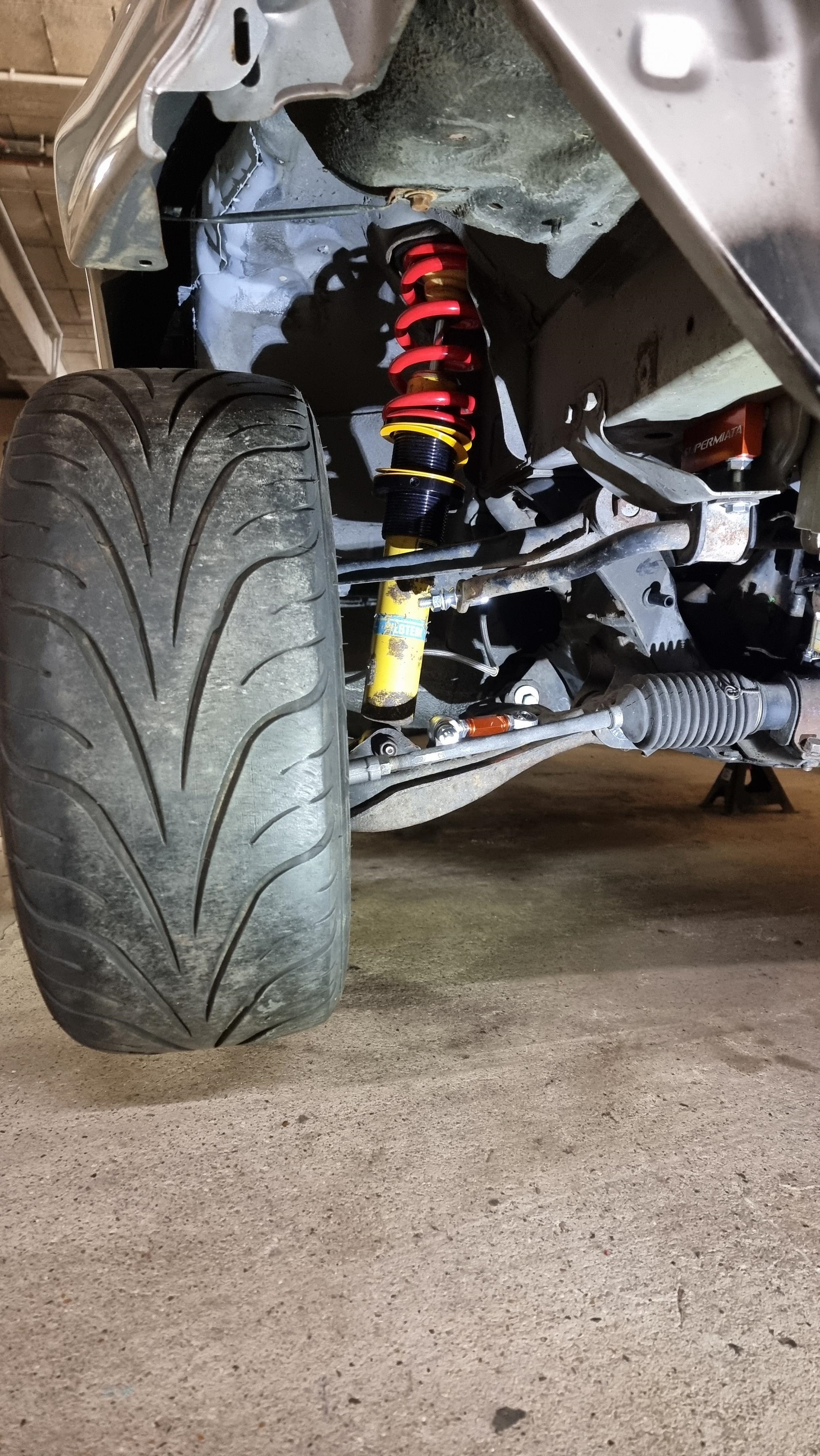 J'ai essayé de me faire une liste des différentes choses qu'il me reste à, globalement j'ai un mois avant mon premier roulage :  Pour le cata, finalement je ne vais pas le faire maison, j'ai mesuré avec le cata percé que j'ai de l'autre mx5, il est à la bonne taille, donc j'ai commandé un vrai bypass de cata qui va arriver dans la semaine. C'est un peu de temps d'économisé. J'ai également changé le filtre a essence pour un neuf Puis j'ai fixé la partie haut du tableau de bord, ça ne bouge plus  J'ai aussi installé la durite qui va du brake booster au collecteur d'admission, avec un clapet anti retour  Puis j'ai reçu une partie de mes commandes, bobines d'Audi R8 en NGK neuf, des bougies neuves, et les helper springs   J'ai donc installé la plaque de fixation spécifique pour les bobines de R8, les bobines sont bien mieux ajustées  J'ai refait la connectique, un peu plus galère que les autres surtout que les connecteurs venaient en paquet de 4 directement, sans aucun pins de rechange, c'est un peu abusé, d'habitude par connecteur tu as un pin supplémentaire au moins de spare, la rien et habituellement je commande toujours un ou deux connecteurs en plus au cas ou, ben la non, j'ai un peu transpiré sur certains connecteurs mais ça l'a fait  J'ai modifié les paramètres de Dwell dans la gestion, il faut dwell entre 1,8 et 2.2 ms sur ces bobines et ne pas dépasser 2,5 car sinon elles commencent à fondre. Puis j'ai levé la voiture pour améliorer un peu le para "a vue d'oeil" déjà pour manoeuvrer plus facilement la voiture, et il faut que je passe au démontage des amortisseurs car on voit ici mon problème lorsque la roue n'est plus posée au sol  Le ressort est tellement court et bas que le ressort n'est plus en contact avec la coupelle, et a la reprise d'appui il peut se mettre de travers et abimer la tige de l'amortisseur. Dans ce cas le setup avec helper springs est très fortement conseillé. Maleurheusement, Merlin motorsport n'a pas en stock le spacer qui va entre le ressort normal et le helper spring, ils devraient le recevoir semaine prochaine. J'ai également voulu finir de fixer le pont a l'arbre de transmission, mais je me suis rendu compte que les vis que m'a fourni autolink ne sont pas les bonnes, elles touchent un rebord sur le nez de pont. Donc obligé de commander en urgence les 4 vis neuves chez ilm, en espérant que ça arrive dans la semaine. Car malgrès tout ça, il faut aussi que j'arrive a booker une date pour la géométrie avant le 25 Mars....