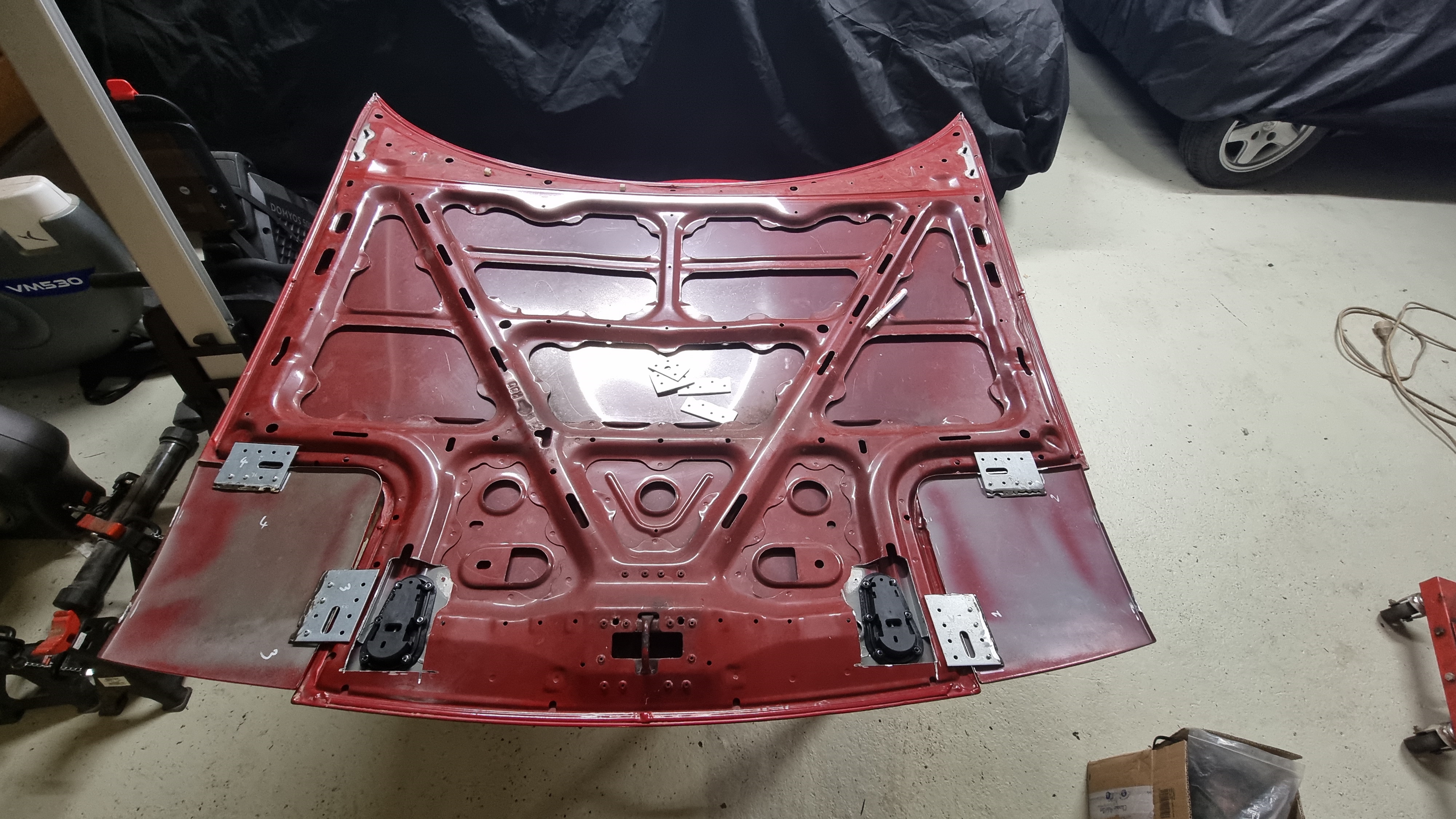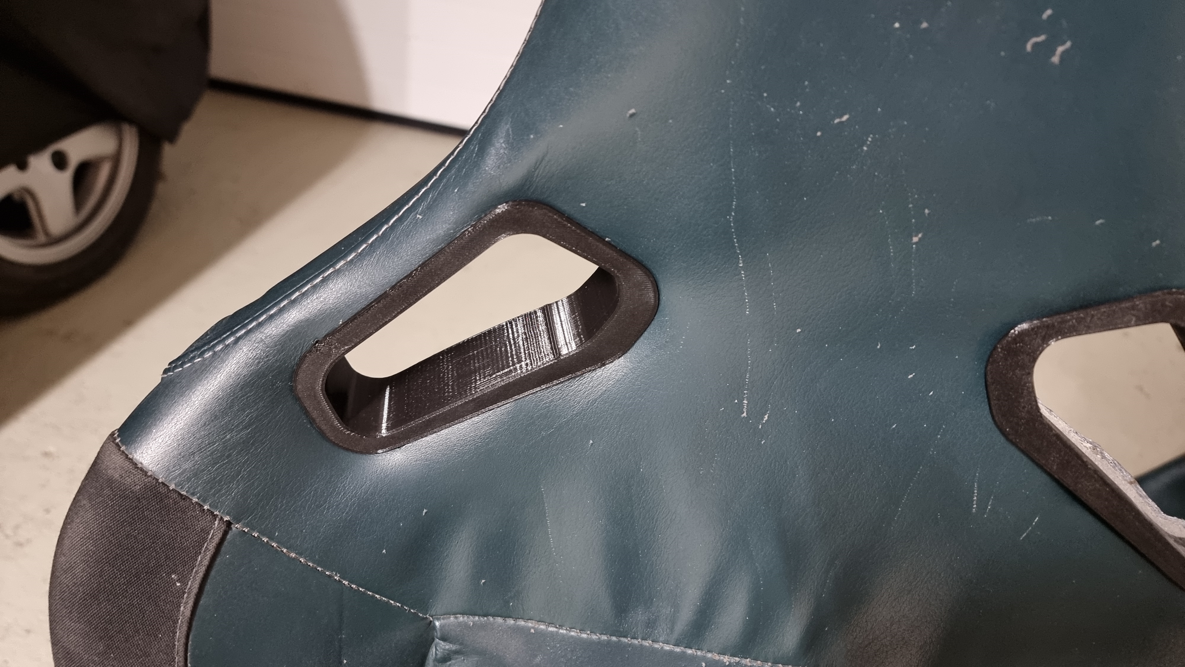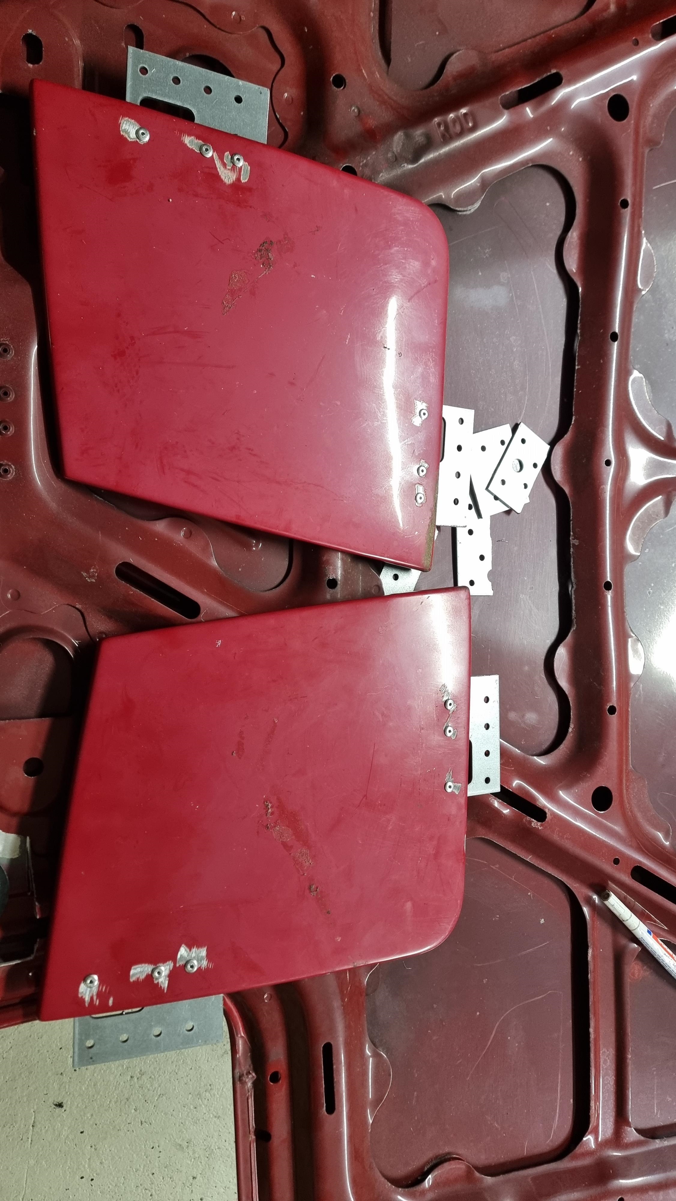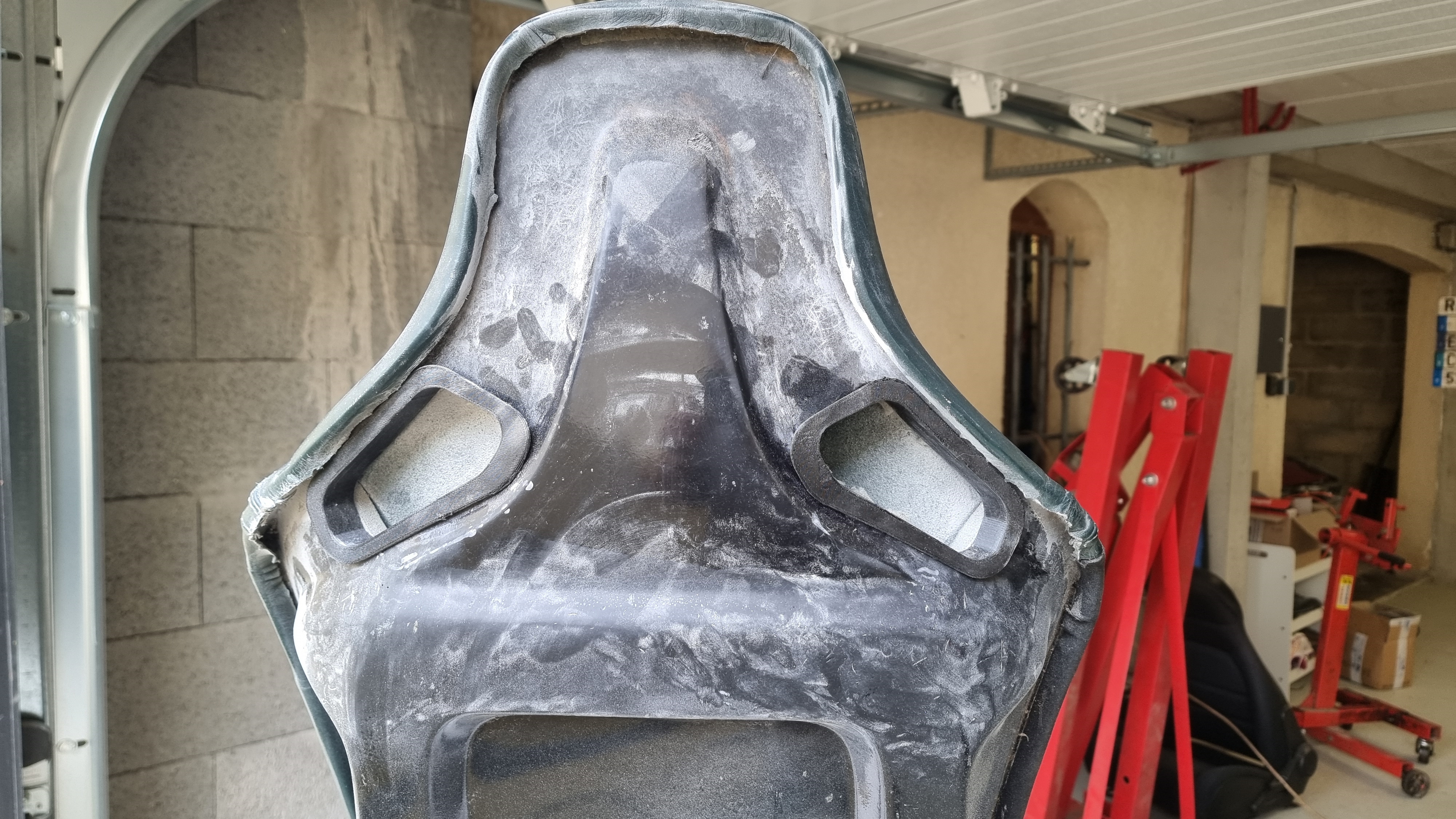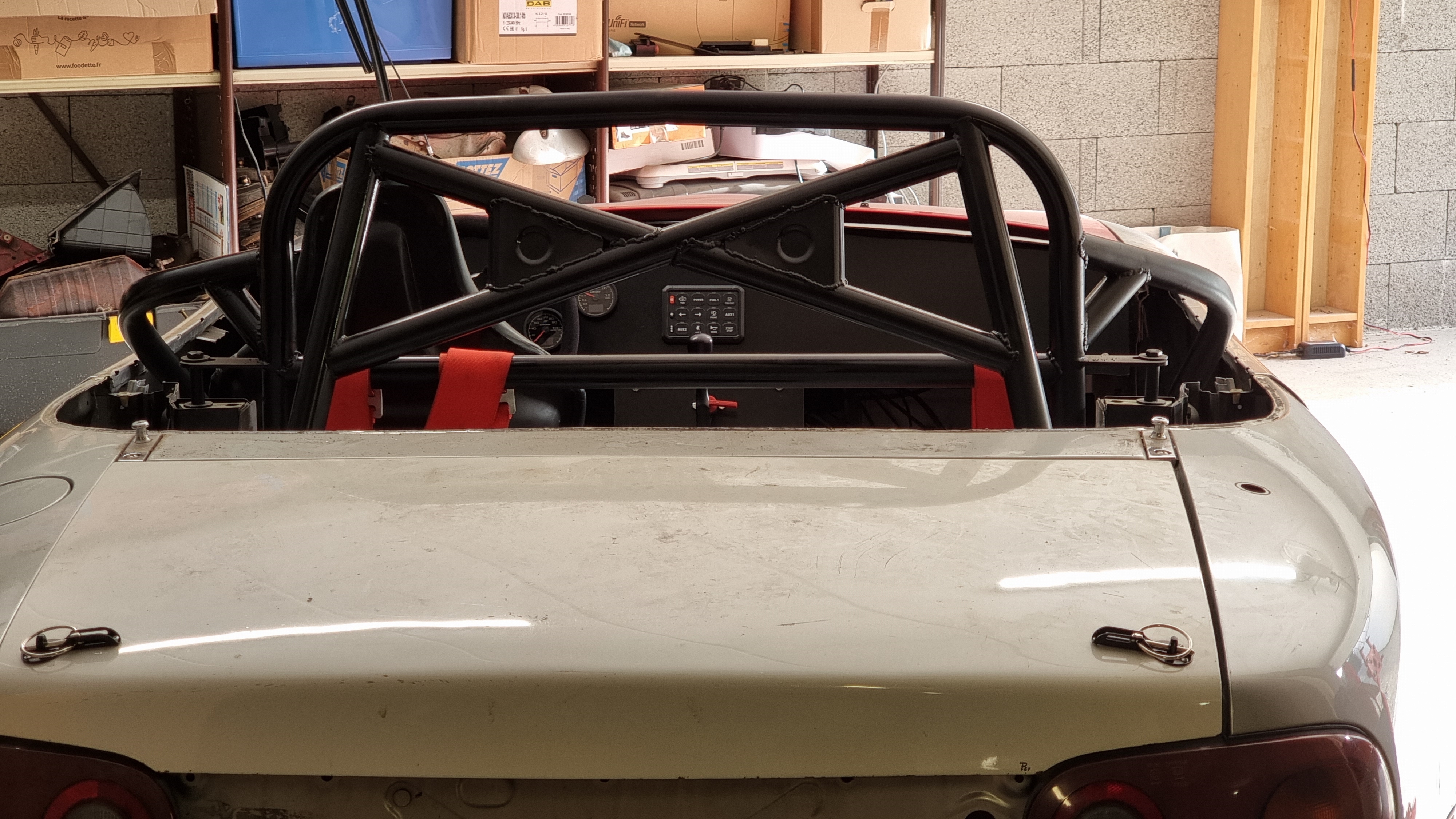 Gros we sur la barquette, Mme et les enfants sont en vacances, du coup j'ai fait deux bonnes journées et j'ai pratiquement terminé tous les derniers détails Déjà dans la semaine, un bachiste pro est venu prendre les mesures et le patron pour me faire une bache de transport sur mesure, c'est un mec qui fait principalement de la bache de bateaux pour le transport, donc la barquette n'est pas un soucis. Bache de 690g m², ça tiendra sans soucis sur le plateau, avec des oeillets en partie basse pour attacher et tendre.  Puis j'ai reçu également dans la semaine les bonnes vis pour le pont, en effet on voit que c'est pas les même, le pont est donc refixé correctement à l'arbre de transmission.  J'ai également reçu le bypass de cata, dans la bonne longueur, alors oui, c'est probablement la plus belle pièce de la barquette et c'est donner de la confiture aux conchons, mais au moins ça fait le taff, c'est installé et fit parfaitement.   La voiture a retrouvé une sonorité normale, et je ne réveille plus l'intégralité du village avec les broap borap. Puis j'ai reçu les spacers de chez Merlin Motorsport qui me permettent de monter les ressorts de rappel sur les combinés  Démontage des amortisseurs arrière, car je voulais aussi raccourcir le bumpstop   On voit la différence entre avec et sans, complètement déchargé le ressort flottait  Pour l'avant, j'avais vraiment pas envie de me taper un démontage complet des amortisseurs, et du coup je suis passé par en dessous, j'ai juste démonté le triangle inférieur au niveau des vis de géo, baissé le triangle, dévissé le combiné jusqu'a en bas, et tout installé dans le bon sens, en revissant a la fin la vis. Le ressort de rappel a une raideur très très faible donc a la main ça se fait facile. Voila ce que ça donne devant une fois installé sans être en charge  Et l'arrière également, dans les deux cas, le ressort est maintenant plaqué à la coupelle et ne bouge plus  Et une fois les roues à terre, le ressort de rappel se transforme en fait en spacer, devant  et derrière  Bon, par contre ça me réhausse la voiture de 2cm je pense. Je peux la baisser mais j'ai peur de ne plus avoir assez de débattement après. On verra lorsque je vais aller faire la géométrie. Puis je suis passé aux sieges de lotus Elise, je voulais leur installer des passages de harnais. Ca revient à presque 100 euros chez MSAR pour les deux paires, donc j'en ai fait en 3D. Il faut ensuite découper le dos du siege une fois qu'on a tracé, et c'est de la fibre de verre, donc on en met PARTOUT. Masque obligatoire, et j'ai des petites fibres qui me piquent encore partout. Mais ça se fait bien a la dremel et au disque diamant.  Puis nettoyage, découpe du cuir au cutter avec une lame neuve et d'excellent ciseaux de couture car le cuir est résistant. J'ai du réimprimer des passages car les premiers que j'avais fait étant pas assez epais et ne me pemettaient pas de bien traverser. Les nouveaux sont un peu trop longs mais c'est pas très grave. Il y a une pièce qui est insérée en force et qui permet de tenir le passage de harnais  Pour l'instant je n'ai imprimé que ceux de gauche dans la bonne longueur, mais ça rends vraiment vraiment bien, je suis super satisfait   Puis je suis passé au capot, n'ayant plus de phares pop up, il me fait fixer les caches au capot, il existe un support fait sur mesure chez Singular Motorsport, mais c'est 100 euros livrés ici avec la douane. Donc j'improvise. Je commence par découper les pattes de fixation d'origine des capots de phare  Puis je découper des pieces d'acier, j'ai fais une petite cale en dessous pour que ça soit relativement de niveau, et c'est riveté sur le capot de phare   Il me faut encore faire des découpes dans le capot en lui même pour que les plaques puissent être rivetées a la bonne position, mais ça devrait le faire.