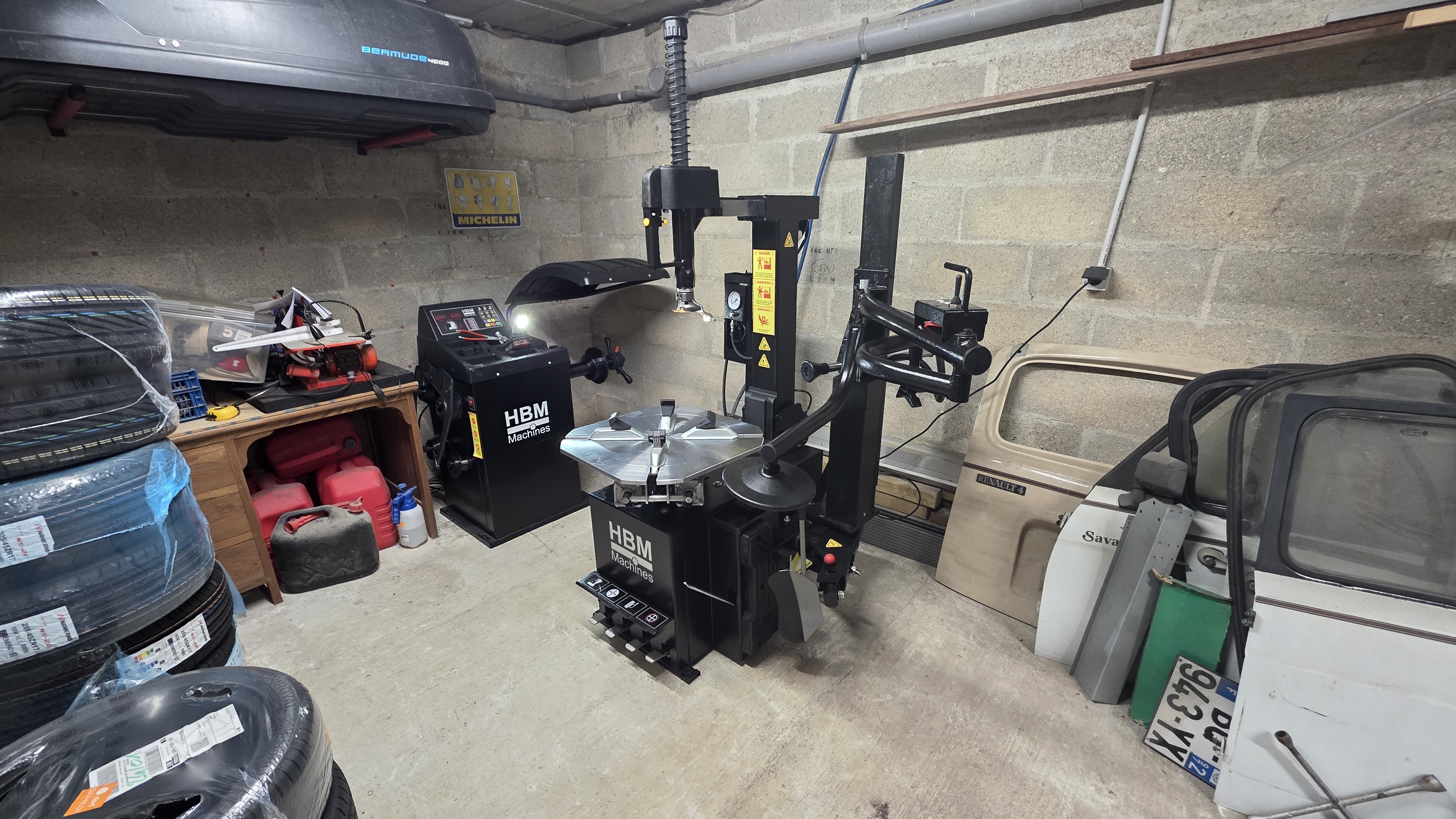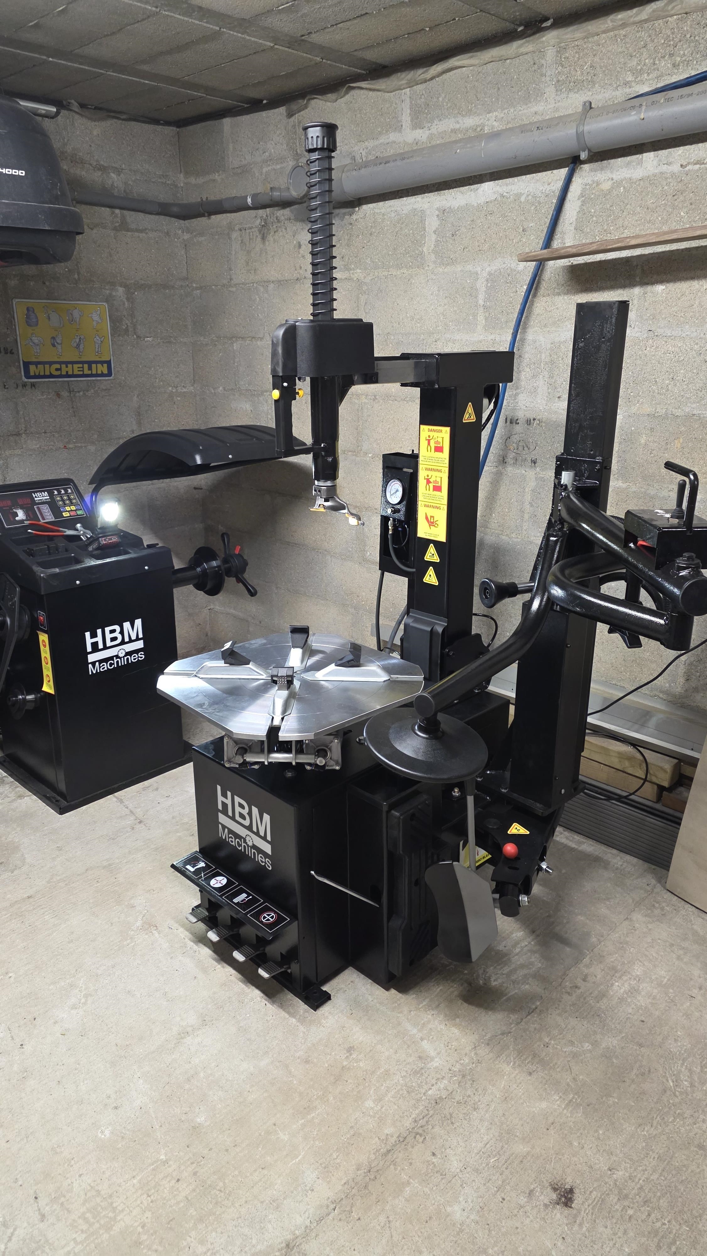 Équilibreuse HBM et démonte pneu avec bras d'assistance