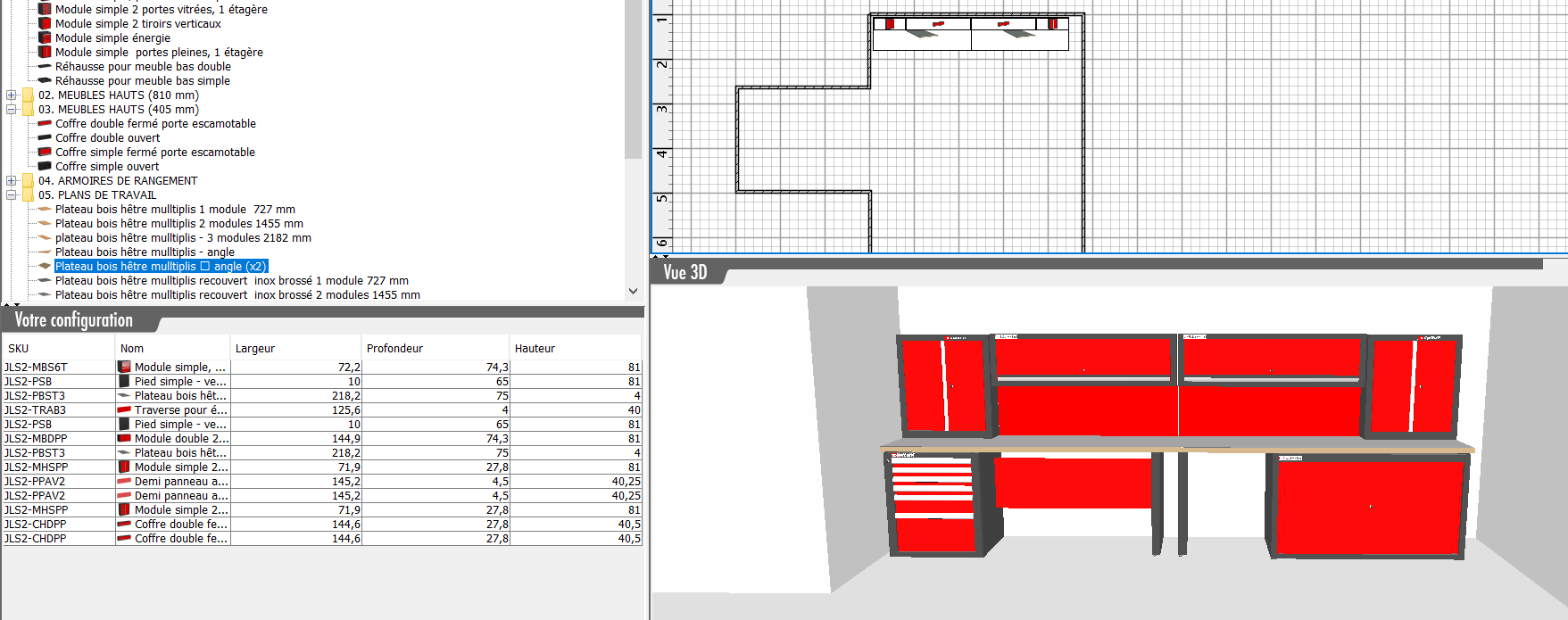 Je sais pas si j'en ai parlé ici, mais voilà ça se concrétise j'ai obtenu hier le permis de construire et ce soir validé avec l'architecte le choix des artisans et le démarrage des travaux, j'attends le retour de la dispo du maçon c'est ce qui va être le plus compliqué. Donc agrandissement de la maison, côté descente de garage, avec un garage supplémentaire total, au dessus un bureau, un dressing et une chambre pour nous. Derrière une nouvelle terrasse complète en bois exotique. Mais ce qui nous intéresse c'est le garage, voilà ce que cela va donner :  Donc un nouveau garage de 4m78 pour 9m de long utilisable ce qui me permet de mettre 4 voitures. Une descente de garage enfin propre en béton désactivé. Garage équipé full led. Donc au total 6 places, deux dans le garage existant, 4 dans le nouveau. Le nouveau garage sera dédié pour les voitures roulantes, le garage actuel sera l'atelier pour les progeays, je vais peut être me contenter de 1 seule voiture a l'intérieur pour laisser un peu de place au fond pour le matos d'Adeline. J'ai commencé à regarder l'aménagement du fond du nouveau garage, je me suis fait plaisir avec le configurateur Facom. Pièce jointe: