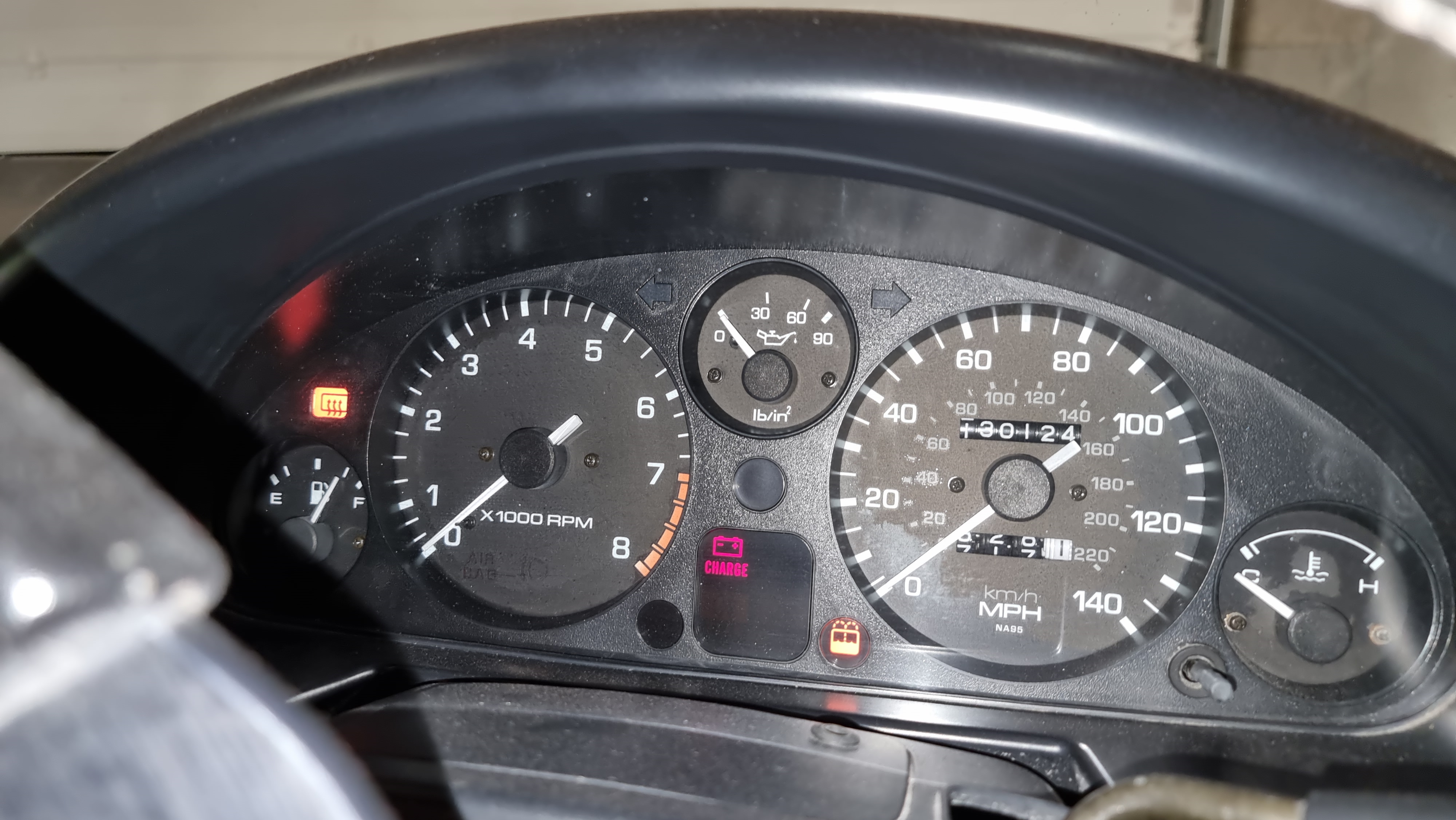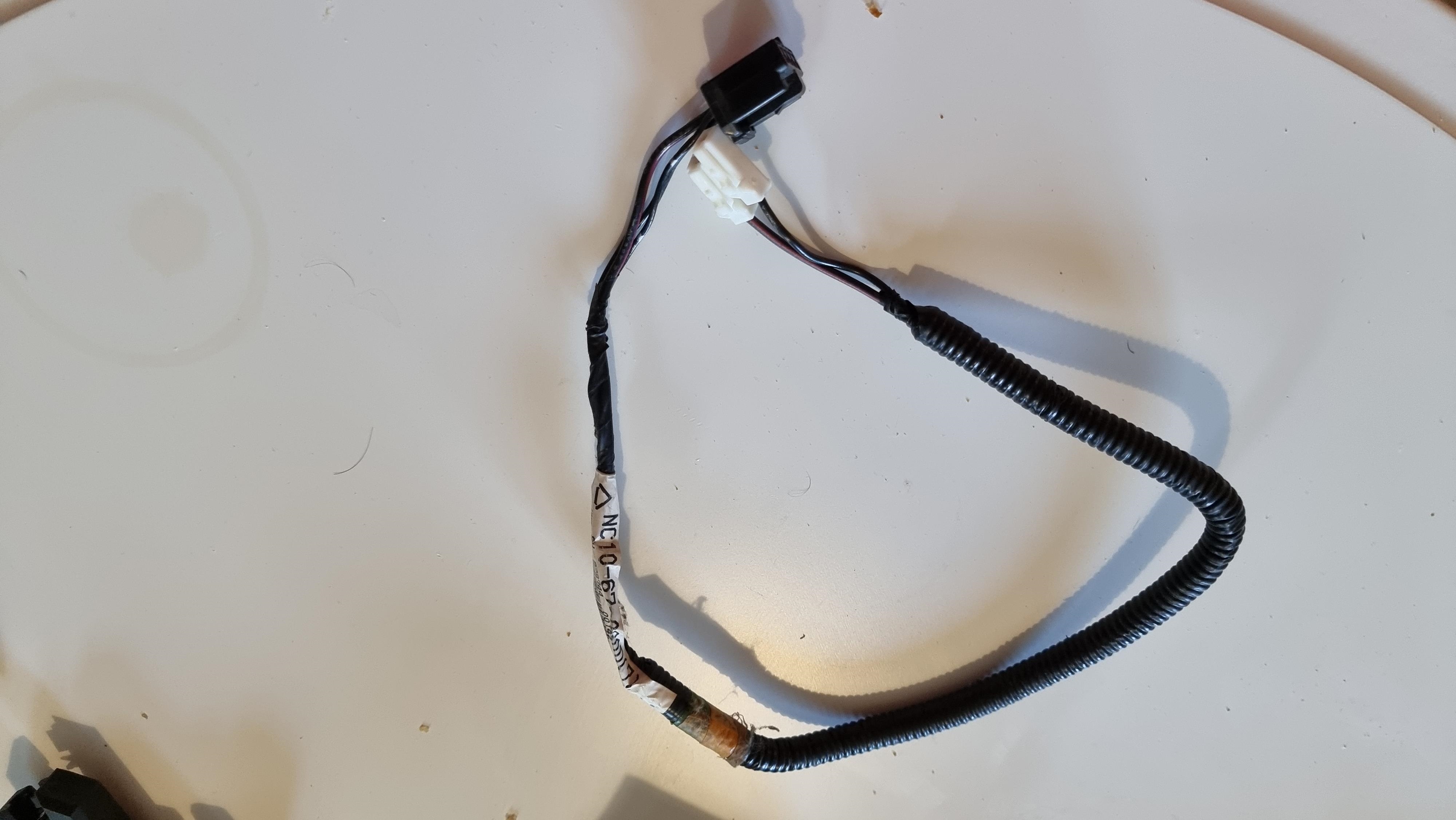 Quelques finitions sur Flash qui vont me permettre de passer le CT le we prochain, j'ai cablé le dégivrage de la lunette de la capote arrière. J'avais le faisceau de NB (car c'est une armature de NB que j'ai récupéré) mais qui n'est pas compatible avec le cablage OEM d'une NA, c'est au final assez simple, on coupe au ras du connecteur noir qui ne sera pas réutilisé  On récupère un gros cable + et deux de masse, qu'on serti sur des cosses  Et qu'on branche sur le connecteur OEM  Si le témoin s'allume sur le TDB lorsqu'on appuie sur le bouton, c'est que le retour a la masse est bien fait, donc ça fonctionne  Puis il me restait a réinstaller les bras d'essuie glace, ils étaient bien rouillés, donc passage a la sableuse, peinture noire, ils sont comme neufs   Dernière étape, installation des plaques, je vais lui faire une vidange quand même, elle n'a pas beaucoup roulé, mais l'huile à deux ans, j'ai de l'huile neuve qui traine, ça lui fera pas de mal, il faut aussi que je roule avec un peu pour réamorcer les poussoirs hydraulique, là elle claque encore pas mal.