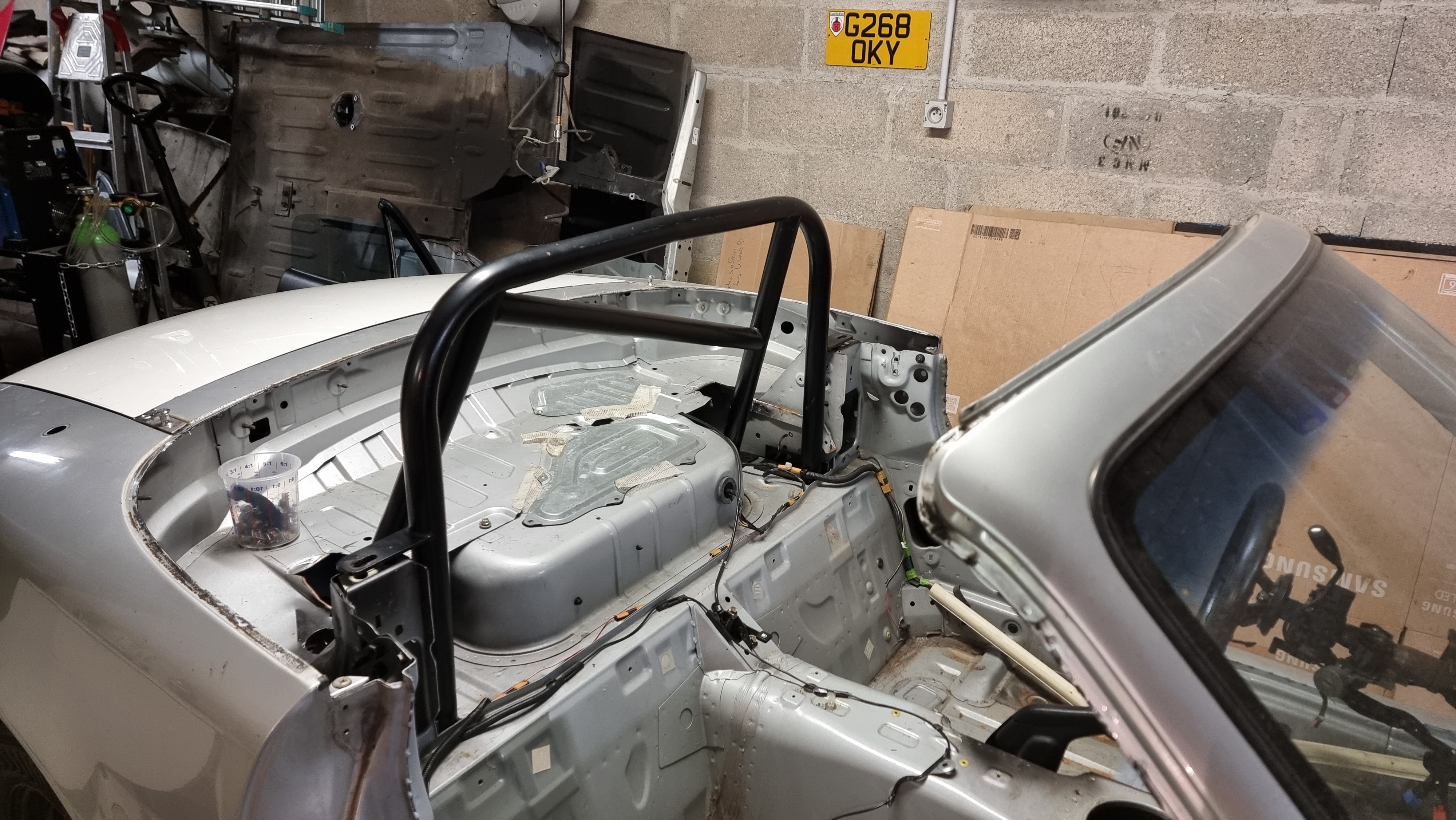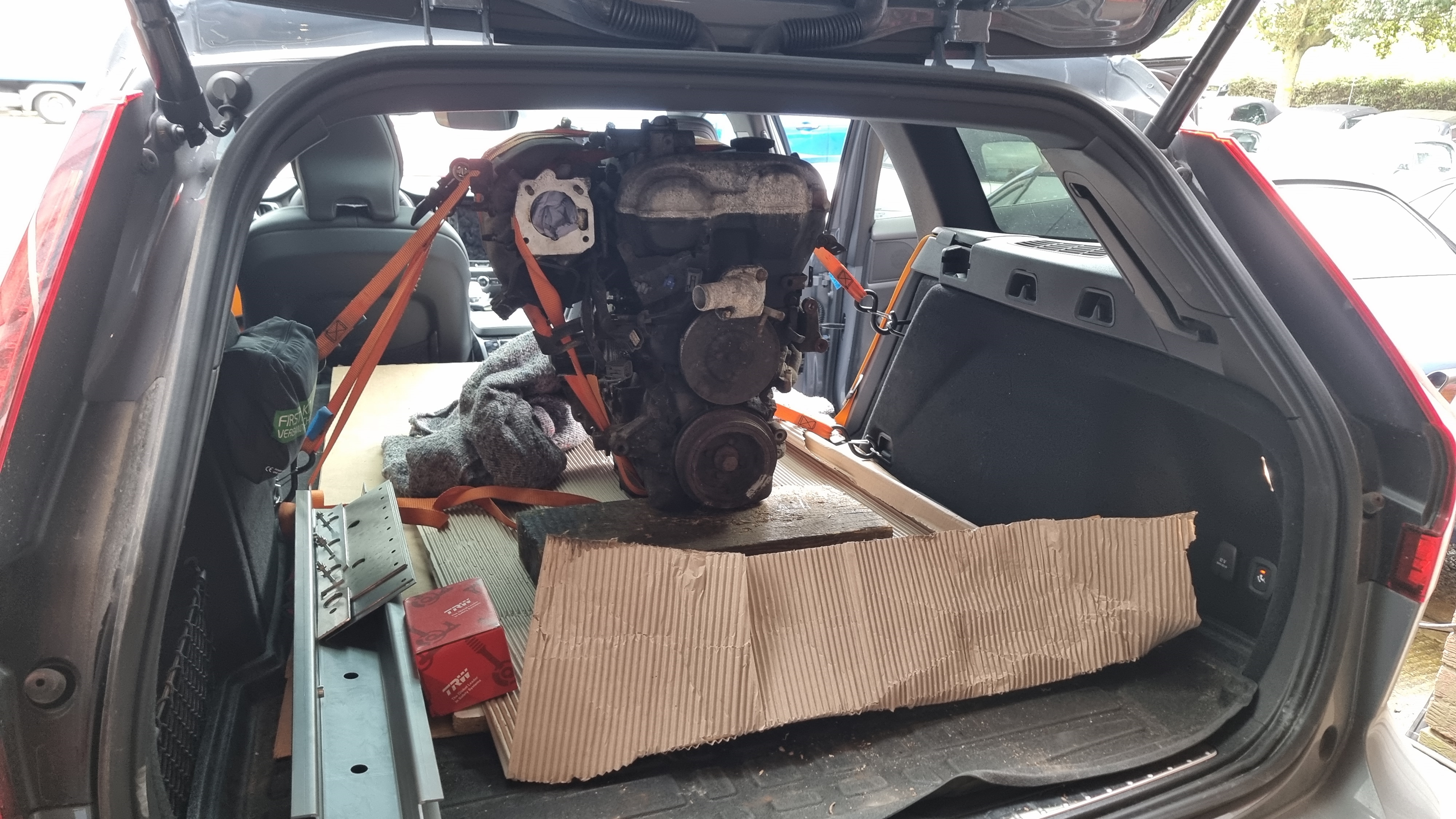 Hier, nous sommes partis donc avec felinkinkin faire nos courses chez nos amis d'outre Manche. j'avais fait un petit trajet, de folkestone on allait chez mx5restorer récupérer un moteur et des framerails, puis on allait juste a coté chez HPC Classic pour rencontrer Alexander un des mécanos qui me vendait son arceau, et enfin on allait à Tunbridge Wells a 35 min plus au nord pour récupérer des sieges monbloc pour Flash, pour enfin rentrer à Folkestone Arrivés relativement rapidement chez TheMx5Restorer on voit rapidement qu'on est au bon endroit, des mx5 partout et dans tous les états    On discute pas mal avec Garath, le boss, il est fan de Volvo et est direct venu nous voir quand on est arrivés avec la V60 Polestar Il nous explique notamment que le truc en train de pourrir sur son parking, c'est leur track car shitbox, il tient absolument a qu'elle reste dans cet état, il est interdit de la laver.  Il y a du monde dans l'atelier, ils sont au moins 7 ou 8, ils font de la carrosserie, de la mécanique et de la prépa. Garath me demande un peu le projet derrière toutes ses pièces et je lui explique notamment pour la barquette et me demande pourquoi couper le pare-brise, ce a quoi je lui réponds un "Because Racecar", il est mort de rire. Bref super sympa, arrangeant On charge la voiture  Puis direction HPC Classic à 5 min de là, une fois arrivé on se dit aussi que ça va etre sympa  A coté on voit cette caisse, il s'agit de celle d'Alexander le mécano  Il nous acceuille et nous dit que l'arceau est à l'étage, et nous propose d'aller faire un tour, il me dit qu'ils ont quelques trucs sympa dans le Showroom, et là c'est carnage         3 Sagaris, dont celle qui est couleur chocolat bizarre est un exemplaire unique, avec une peinture spéciale en vente 99 K GBP, la bleue est à 75 K GBP et l'orange déjà vendue (80). Une Cerbera, une Nissan GTR, une mini electrifiée, une Ultima GTR avec un V8 Chevrolet, le truc est Road Legal mais risque de te tuer 20* par jour. En bas ils ont également une 635csi, bref du gros matos, Alexander est super sympa et n'est pas avare de détails et de commentaires. Puis on bascule direction Tunbridge Wells pour récupérer les sieges chez Alan, il est en vacances mais a laissé son cabanon non verrouillé avec les sieges dedans.... L'esprit British quoi. Puis retour par les B roads anglaises, je pleure un peu pour les jantes de la Volvo vu les niz de poule qu'on se prends, mais ça va finalement. Et aujourd'hui j'ai pu décharger la voiture grace a deux voisins, impossible de passer la chevre dans le coffre c'est trop limite avec le plafond. Je me retrouve donc avec un 1.8 VVT acheté 140 GBP (valeur en FR entre 700 et 1000 euros) Une paire de frame rails avec les renforts intérieur pour refaire ceux de Flash  La partie intérieure se fixe en sandwich de l'autre coté pour renforcer le chassis, sachant que les rails font 3mm d'épaisseur, je pense que ça va bien le faire (là c'est dans la barquette pour l'exemple, mais ça ira sur flash)  Un arceau pour la barquette (je vais lui rajouter une harness bar et également des door bars)  Et enfin et surtout, des sieges monobloc en excellent état, les flash donnent l'impression qu'ils sont usés mais ce n'est pas le cas, il sont vraiment en excellent état, pas de déchirure ni de tache, payés 100 GBP la dernière paire que j'avais trouvé sur le net en Fr était a 500 et sont partis en un instant   C'était fatiguant (presque 1000 km en 24h) mais cool, a refaire dans pas longtemps