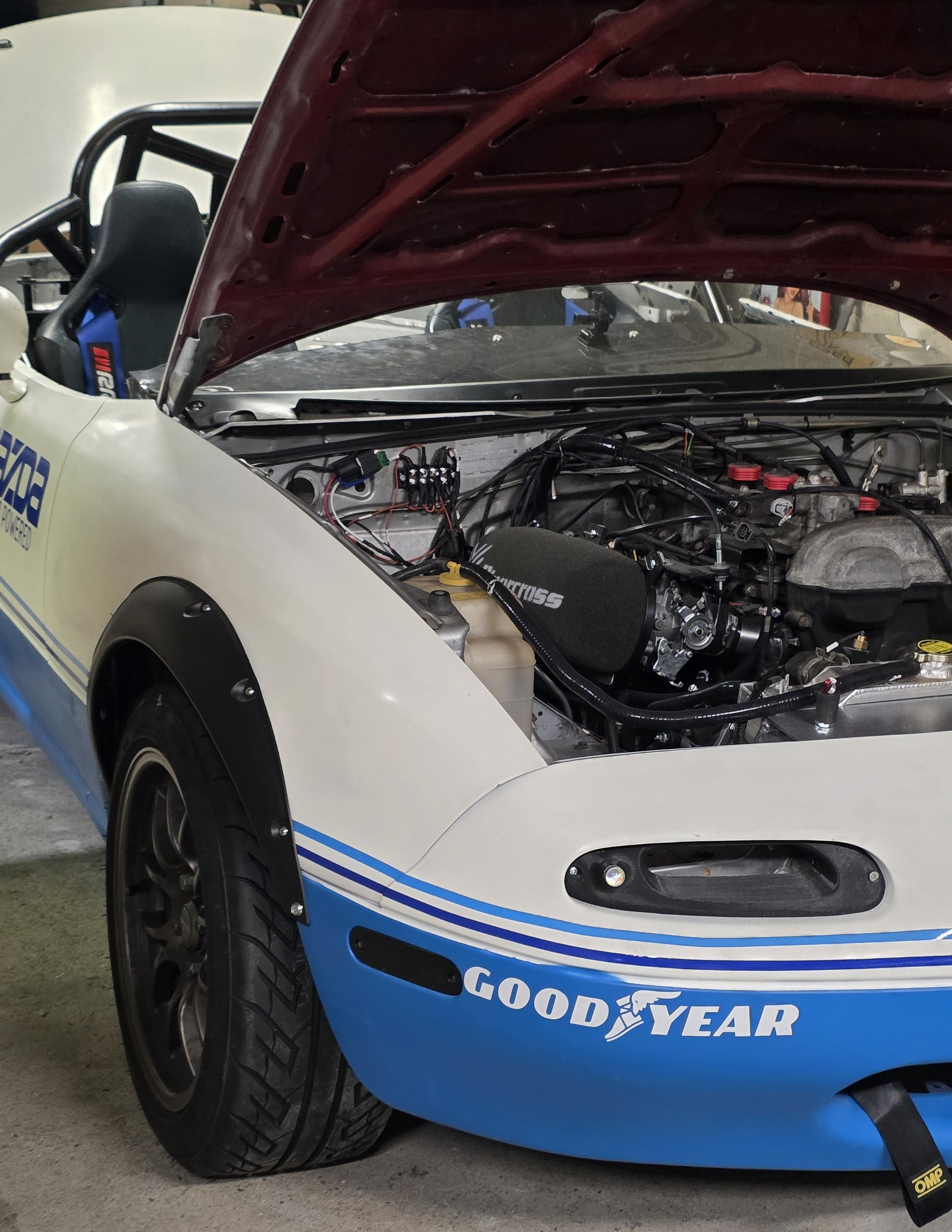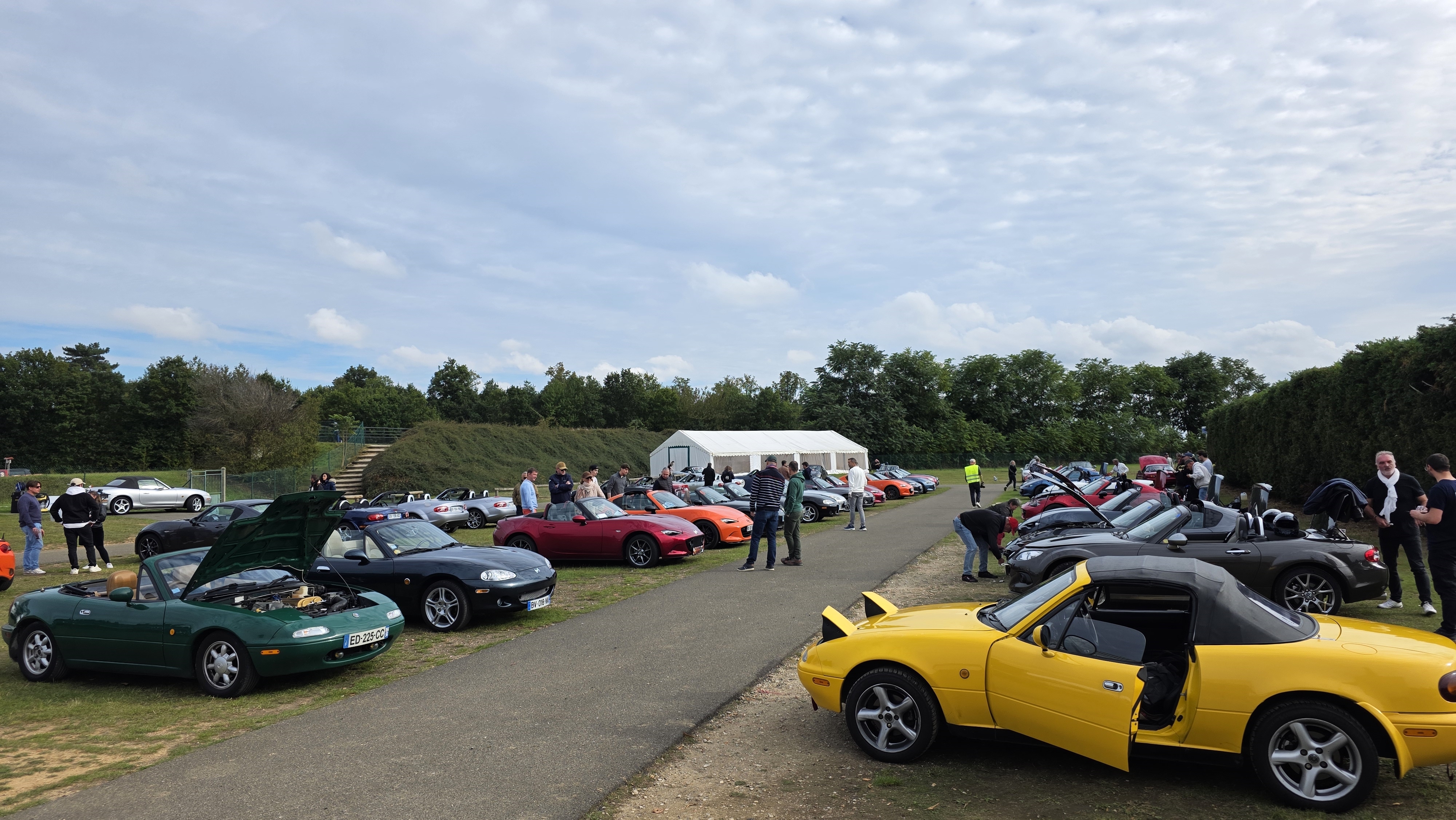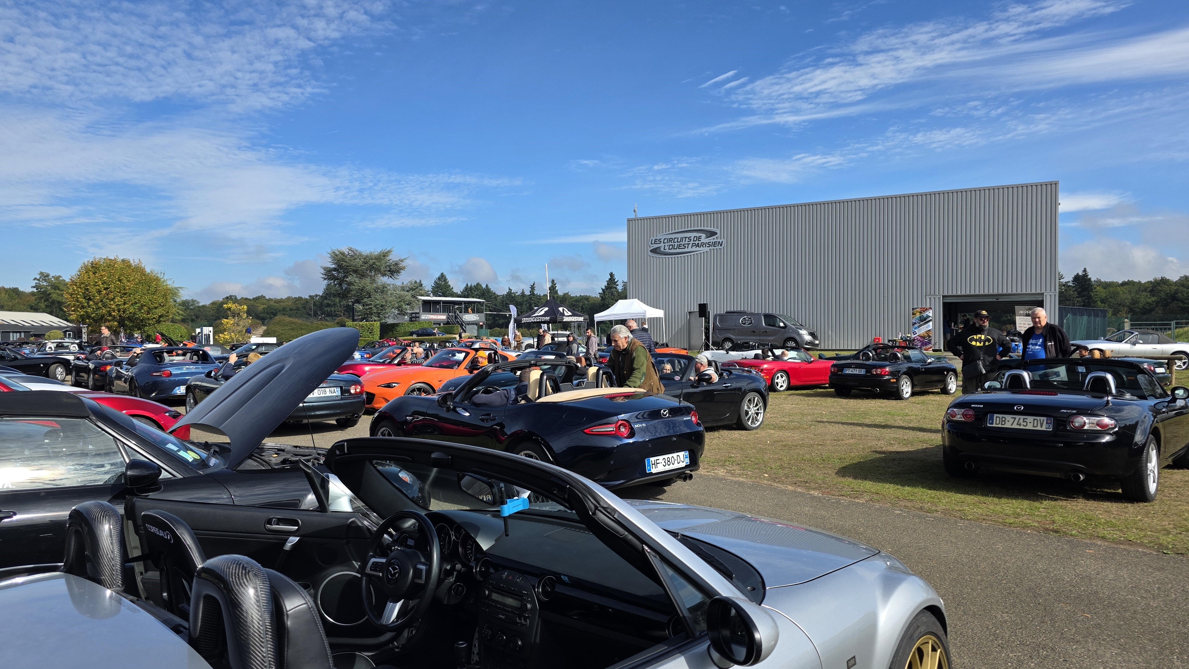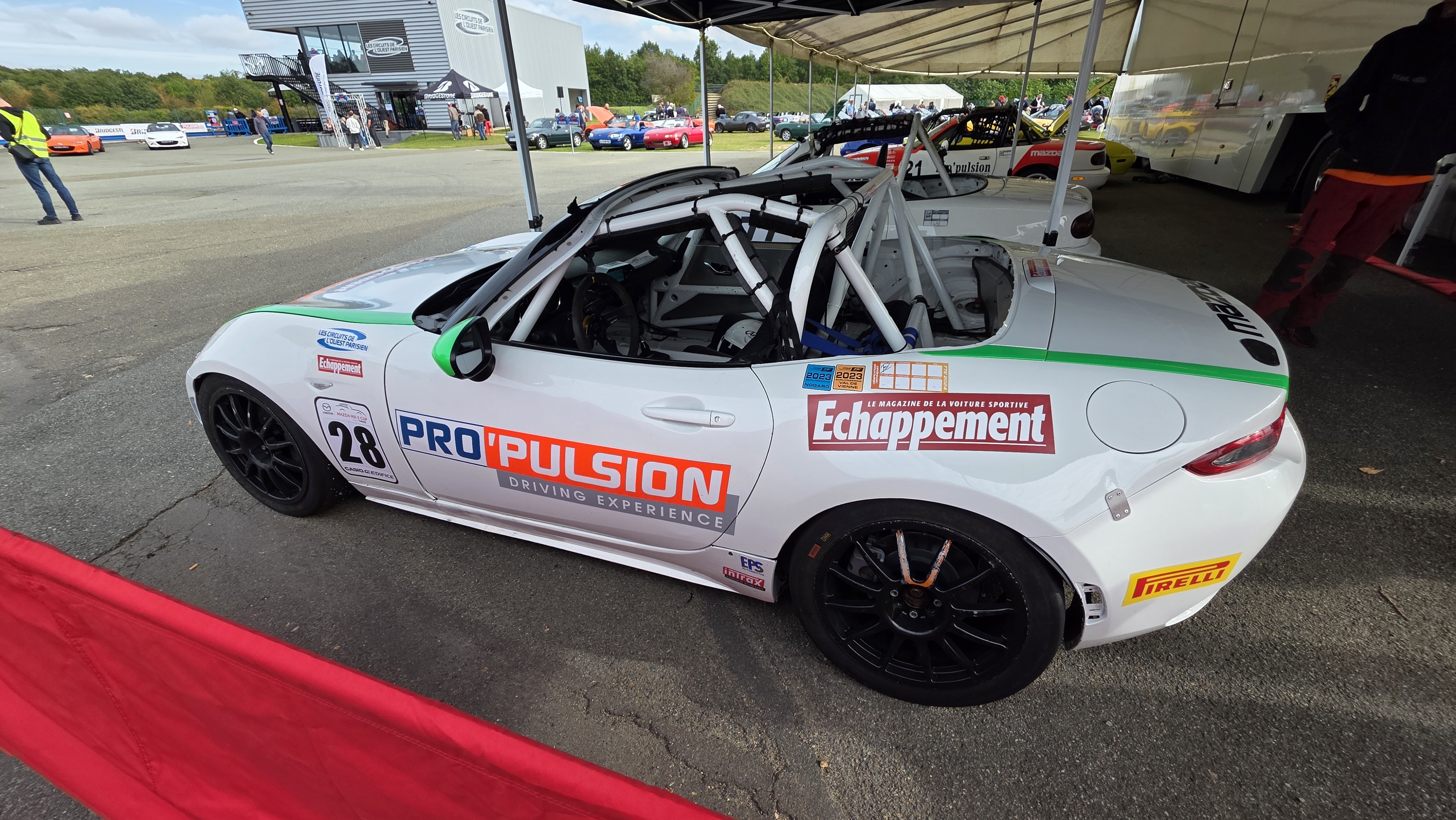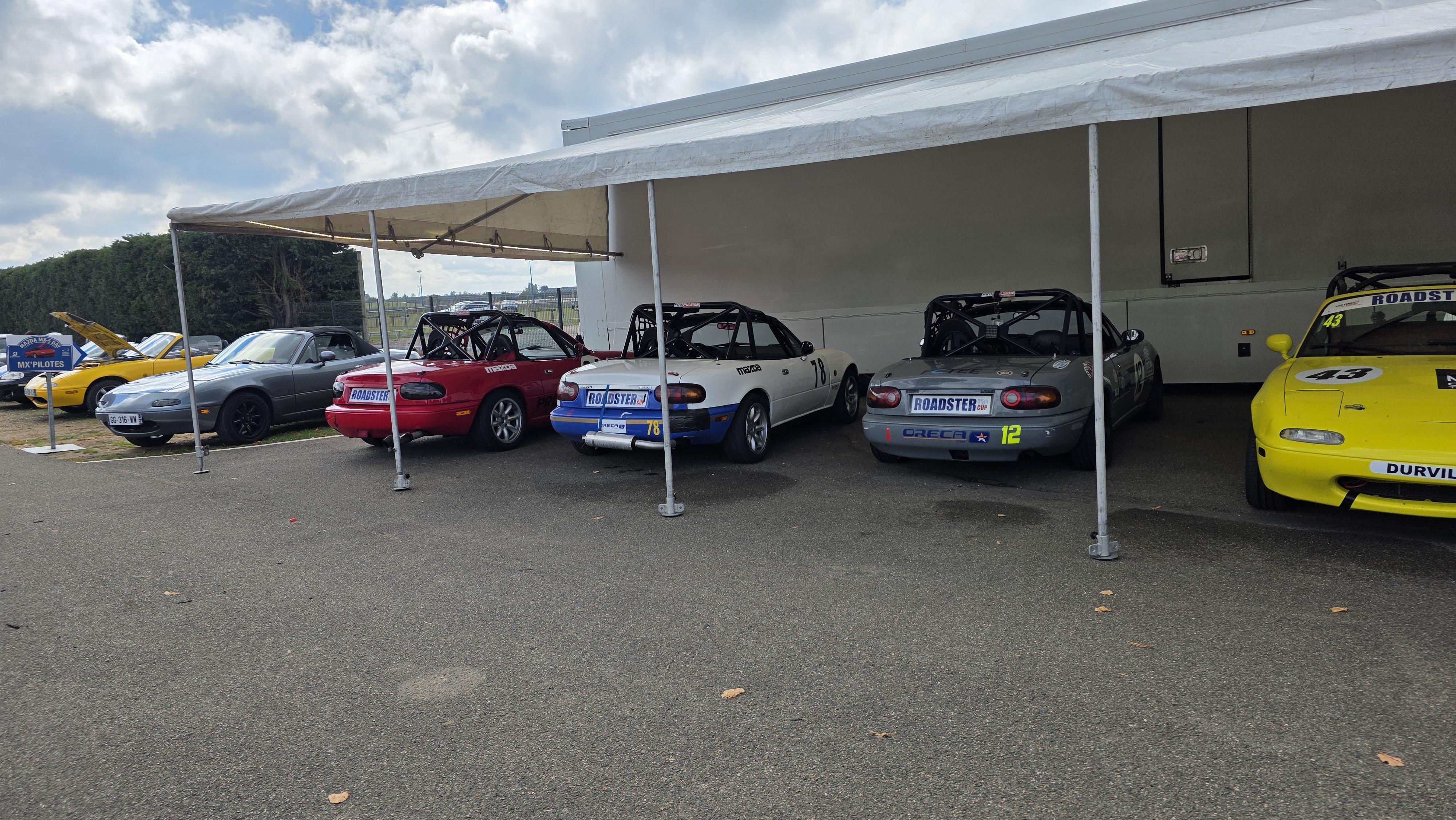 Ce samedi, c'était le Mx5 Day organisé sur le circuit de l'ouest parisien, a Dreux. Juste a coté de la maison, je me devais d'y aller avec la barquette. Première petite galère, lorsque je descends la barquette du plateau, j'essaye de démarrer la voiture, mais elle a passé la nuit dehors, il fait 5° et humide, le démarreur galère, mon panel se coupe et j'entends un clac. Je tente un autre démarrage, la voiture démarre mais mon dashboard numérique reste tout noir, il ne repartira jamais de la journée..... Bon c'est pas grave, je ne vais pas regarder ça aujourd'hui la journée se déroule en sessions donc j'ai un timing a respecter, on va pas faire de mécanique et j'ai les 3 manos les plus importants en secours (RPM, temp d'huile et pression d'huile). Je trouve place sur le paddock a coté d'une NC BBR turbo, paddock qui est bien rempli également avec pas mal de Roadster pro cup et une ND Cup qui apparait a Laurent, le patron du circuit et de propulsion       Première session, y a du brouillard, je connais pas le circuit, premier tour je me demande vraiment parfois ou est la piste, donc c'est un tour de découverte, la piste est froide et un peu humide, mais le grip avec les Zeknova est vraiment bon, et surtout j'ai un super feeling au freinage et sur le train avant. Deuxième session, ça se dégage un tout petit peu, mais c'est encore frais, je commence a appuyer un peu les freinages, au bout de la ligne droite avant l'épingle j'entends un bip d'un de mes manos, mais je sais pas ce que c'est. Tour suivant, même endroit encore un bip et je vois mon fils qui m'indique avec le doigt le mano de pression d'huile, je regarde, il est à 0....  Je fais une petite descente d'organe, mais la pression remonte direct. Je continue le tour et fait un freinage moins appuyé en bout de ligne droite, la pression tombe encore, mais pas a 0, bon ben les semis slicks + gros freins font que je déjauge sur les gros freinages.... Je vais donc passer ma journée tranquile sur ce freinage, c'est un peu chiant car dans le traffic, je vais souvent doubler dans la ligne droite, pour ralentir et donc géner peut etre un peu les voitures que je double dans l'épingle juste apres, mais ça le fera. Troisième session, je commence a avoir bien la barquette en main, j'adore le feeling de la direction, des freins et du torsen, j'accélère le rythme, un peu trop car sur un tour j'ai djpit derrière moi, je double une voiture devant les stands et sur le droite après j'oublie de freiner et comme j'ai fait droite pour doubler, gauche pour me remettre dans la traj et droite pour prendre le virage, j'ai fait un appel contre appel, la voiture se met direct en travers, j'ai deux voitures derrière moi, y a pas des masses de dégagement à ce moment je n'essaye meme pas de la récupérer, je prends les freins direct et j'essaye de controler la voiture pour arriver en latéral sur le mur de pneu et non en frontal, je m'arrète a 10cm du mur de pneus, Noé sort "ben fallait bien que ça arrive vu comment tu faisais le con" mais non mais non, je repars et du coup je ne plante pas la session. Aucun dégat sur la voiture, un tout petit peu pour mon amour propre mais je me suis dit que j'avais pris la bonne décision de souder direct. Un peu de terre sur la voiture, rien de grave  Aucun soucis sur le reste de la journée, un peu de traffic parfois, mais globalement ça se passe bien, je passe une super journée, la barquette attire forcément un peu l'attention, donc j'ai pas mal de questions et d'échanges. J'ai essayé de faire quelques vidéos, la qualité est pas terrible, surtout sur le son, et mes caméras aliexpress n'ont pas de stab, donc j'ai du le faire numériquement, mais ça donne un peu l'idée des sensations a bord de la barquette, on va pas se mentir c'est vraiment la bagarre et j'adore, c'est vraiment ça que je voulais, tu as vraiment l'impression d'etre dans une voiture de course, j'ai des courbatures aujourd'hui La voiture est pas loin d'être finie mais encore un peu de boulot : - Je viens de commander un carter cloisonné skidnation race - Faut que je répare le dashboard - faut que je règle le ralenti plus haut, car là je tenais le ralenti entre 1500 et 2000 au pied, c'est chiant - J'ai une petite fuite de LDR, faut que je change une durite qui est vraiment vieille. Mais a part ça, je suis vraiment satisfait de la caisse, c'est un vrai bonheur a rouler.