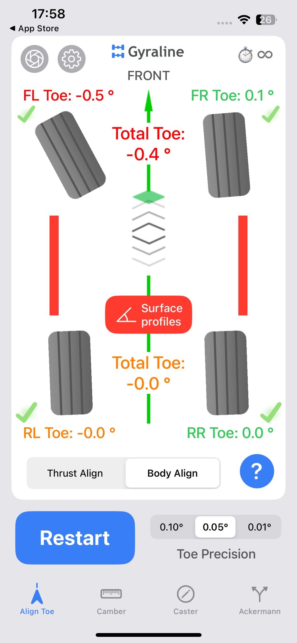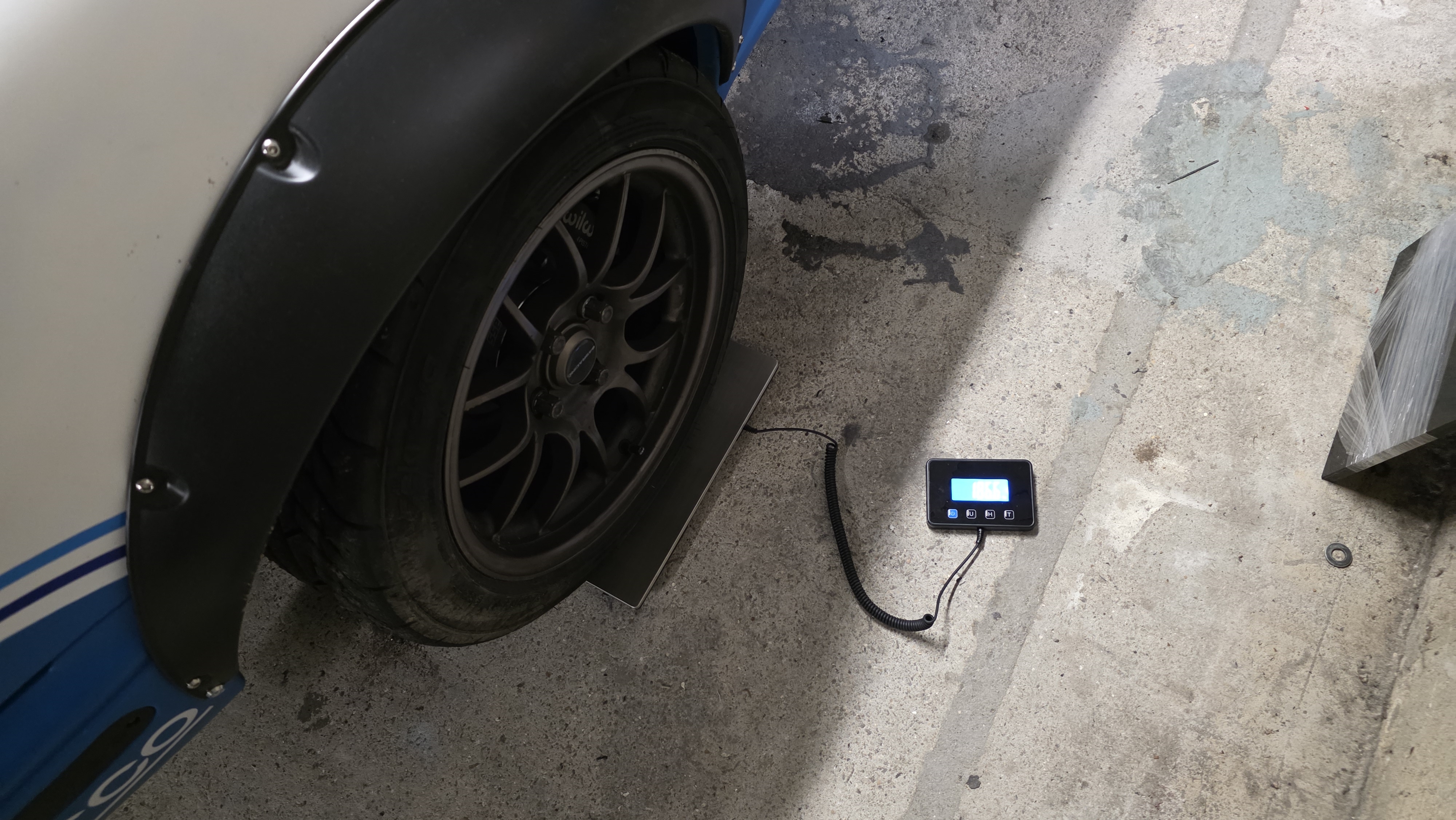 Quelques mise à jour sur la barquette, elle est globalement prête pour les prochaines sorties circuit (24 Septembre aux Ecuyers, et le 27 Septembre a Dreux) j'ai juste quelques améliorations en cours. J'ai commencé par le dashboard, j'ai fait un peu de scripting pour avoir un shiftlight a 7000, j'ai finalement gardé l'information de vitesse meme si pour l'instant je ne la récupère pas (mais ça va venir), et je pense que je vais remplacer la pression d'admission (qui ne me sert pas vraiment) par la température d'admission. Enfin, les Federal RSR de 12 ans d'age ont fait leur temps, donc je suis passé sur des Zeknova SS, en 195/50/15 (alors que aujourd'hui je suis en 205), et bien en terme de largeur, ça ne change pas grand chose, et ça fit très bien sur des jantes en 8" de large, ce n'est pas trop tendu.  J'ai profité du démontage pour vérifier quelques serrages, lors de la dernière sortie circuit sur les freinages forts et appuyés j'entendais un truc qui bougeait, j'ai recontrollé les serrages et marqué, bon j'avais un des adaptateurs pour étriers de subaru qui était un peu limite, je suis pas 100% sur que ça venait de là, mais j'ai pas trouvé autre chose de non serré au couple.  En terme de fitment, ça rends vraiment bien, c'est un peu tendu, mais pas trop, et les flancs sont méga rigides, ça devrait être pas mal  Puis j'avais dans un stock un morceau d'Alu Dibond, j'en ai profité pour faire un cowl cover avec, ça permet de boucher les trous entre le parechoc et le radiateur pour guider le flux d'air  Ca rends bien, mais faut que je continue aussi le cloisonnement dans le reste de la baie moteur, je vais déjà faire un shroud pour le radiateur, car aujourd'hui j'utilise les fixations plastique qui passent a travers le radiateur et c'est clairement de la merde, j'en ai déjà perdu une lors de la dernière sortie circuit. Donc je vais avoir une plaque qui va fixer les ventillons, j'ai aussi en livraison un carter sous le moteur en alu de chez Jass performance et je vais aussi boucher coté parechoc.  Dernière étape, j'ai investi dans un Gyraline DIY, plus pour tester, c'est mon coté Geekos, ça permet en théorie de mesurer la géométrie avec un iPhone  Les résultats de mesure semblent cohérents avec ce que j'avais fait régler y a deux ans, sauf l'avant gauche qui semble carrément off, faut que je refasse des mesures car normalement j'avais un peu de pince, pas de l'ouverture comme ça, mais bon, apres 5 ou 6 sorties circuit, ça a probablement bougé.
