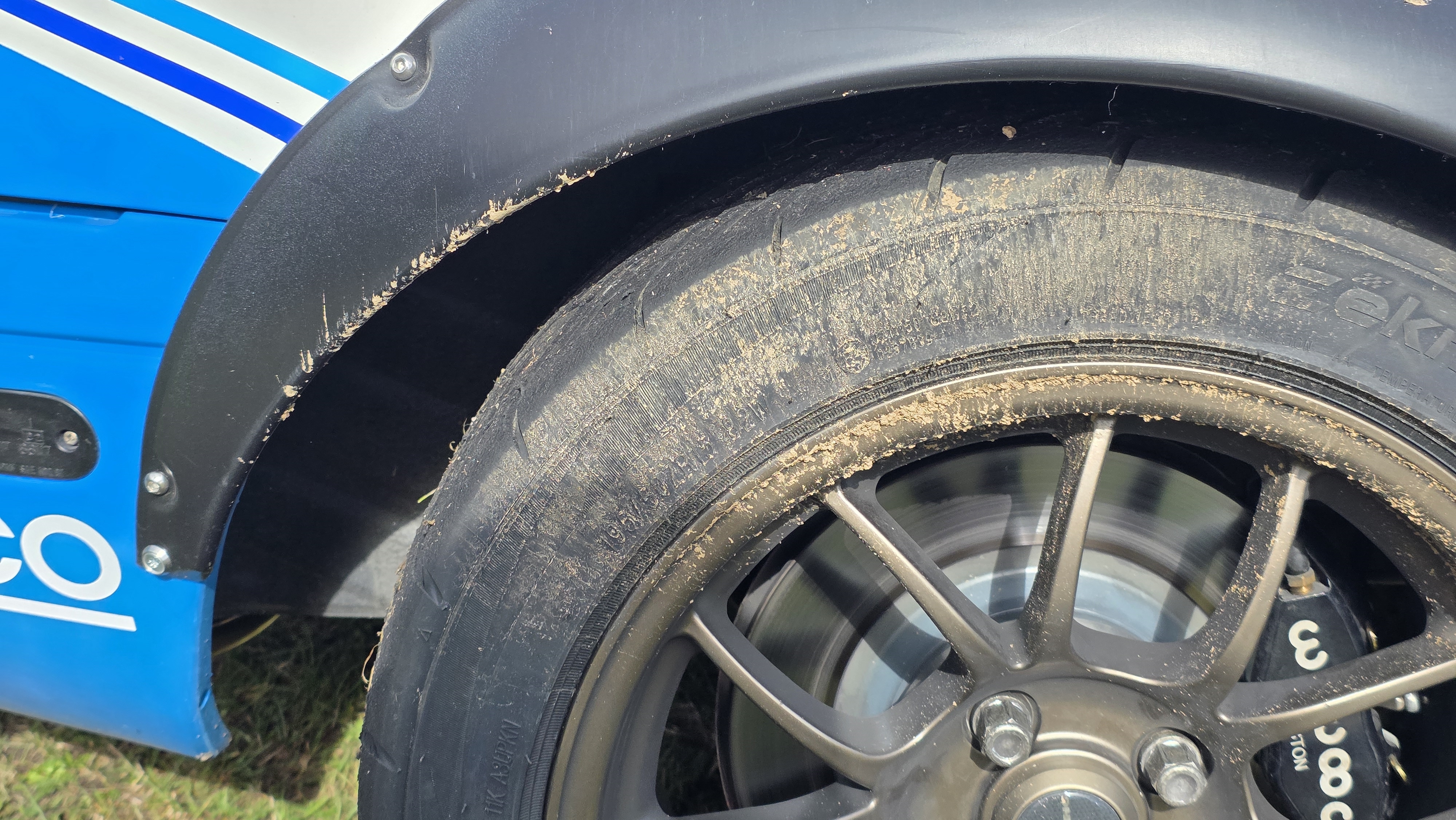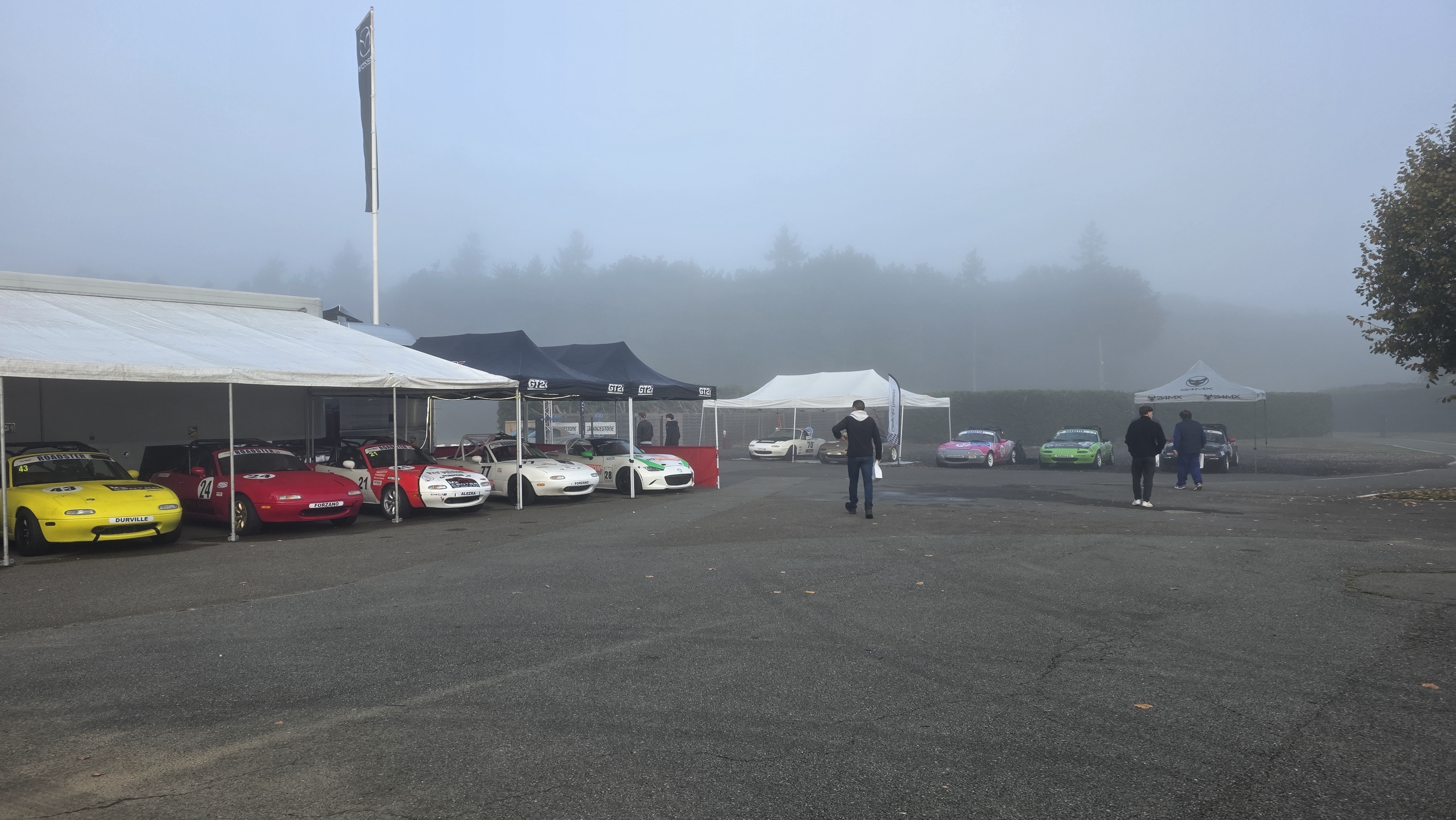 CR Rapide du trackday de Dimanche à Pouilly en Auxois, c'était génial. Matin, piste humide et grasse, températures faibles, on se dit que ça va glisser, je pars avec mon fils en tour de chauffe, dès le deuxième virage de l'escargot je met a peine du gaz, je me retrouve en travers de la piste. Y a 0 grip, donc ce sera un entrainement glisse, a faible vitesse, avec peu de monde en piste (20 voitures inscrites on s'est pas bousculés). Les conditions idéales pour s'entrainer à la glisse en toute sécurité. Première fois que je teste le torsen également dans ses conditions, c'est tellement plus simple de garder la dérive. Bon, j'ai pas mal jardiné j'ai du faire une bonne dizaine de tête à queue, j'ai presque réussi en fin de matinée a prendre l'escargot complet tout en glisse (pas totalement, j'ai une petite reprise de grip au milieu du long droite). L'après midi, la piste a séché, ce sera session grip avec le racebox pour aller chercher le chrono, les semi slicks apportent cette fois ci pas mal de grip, et je me met a progressivement descendre les chronos, 1.05 au début pour finir a 1.03.05, j'avais un best théorique en cours de 1.02 sur l'un de mes derniers tours, mais bien évidement je suis sorti trop large dans le dernier virage (car j'arretais pas de regarder le chrono....), mis deux roues dans l'herbe, j'ai pas laché, mais fini avec un tour en 1.03.50..... Quelques photos du plateau :          Comme vous pouvez le voir sur les images, c'était boueux le matin, j'ai 20 Go de rush vidéos, faut que je fasse le tri, j'espère avoir quelques images sympa. Normalement c'est la dernière de la saison, prochaine sortie Mars 2026 aux ecuyers