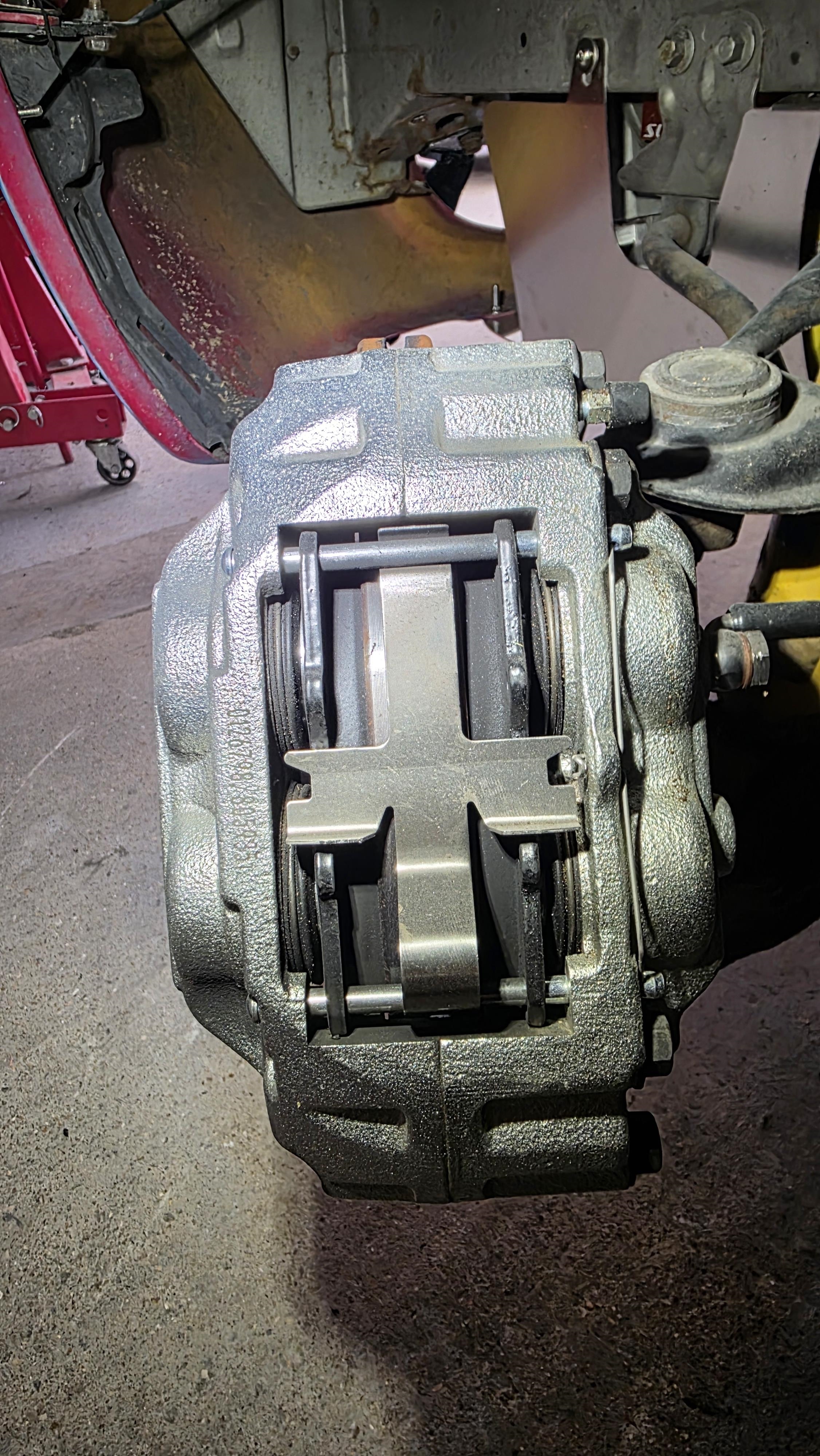 Lors de la journée Mx5 Day, on m'a posé plusieurs fois la question de combien la barquette pèse, et c'est vrai je ne l'ai jamais pesée. En discutant avec DjPit il m'a soufflé un solution, un balance a colis de 300kkg et 4 cales qui font la même hauteur que la balance. Suffit de mettre la balance a tour de role sur chaque roue et peser le poids par roue comme ça.  J'ai fait la mesure ce matin, ça donne ça : 242 I---I 225 186 I---I 198 Soit 851 kg au total, avec tout, fluides, extincteur, sieges, harnais et 30L d'essence. Ce qui fait environ 820 Kg a sec, versus les 955 d'origine. Y a moyen d'aller a 800 a sec je pense, voire un peu moins, mais ça veut dire commencer a faire des trous et investir dans des trucs chers, genre ailes av et arrière en fibre, malle de coffre en fibre, je vais essayer de gagner un peu encore, mais sans investir, j'ai le système de fermeture de coffre a virer, j'ai un renfort dans la porte conducteur que je peux faire sauter aussi. Puis je suis passé à l'inspection post trackday, j'ai regardé mon problème de dashboard, malheureusement ce n'est pas un soucis de fusible, le dashboard est alimenté je vois le rétro éclairage s'allumer, et le raspeberry qui est derrière est alimenté. Mais rien, plus d'écran, je vais donc contacter le fabricant. Inspection des freins, tout va bien, j'ai encore pas mal de plaquettes  Les zeknova aussi n'ont pas tant souffert, l'arrière :  Et l'avant  Y a moyen de faire encore au moins 2 ou 3 trackday avec encore. Le trackday a Dreux aura aussi montré des problèmes de déjaugeage d'huile dans les freinages, j'ai donc reçu le kit de carter cloisonné de skidnation, en version Race, avec les flaps et la plaque supérieure, le kit est complet, livré avec les joints demi lune et le silicone.   Mais bon, sur une mx5 on ne peut pas faire tomber le carter comme ça, soit on tombe le berceau complet, soit on sort le moteur et c'est souvent plus simple et rapide de sortir le moteur. Donc felinkinkin vient semaine prochaine pour le faire avec moi, j'en ai profité aujourd'hui pour commencer a démonter la voiture, parceque faire et défaire c'est aussi travailler.... Donc on retire la face avant, le radiateur, l'underpanel etc... Bon, avec la barquette qui n'a que le strict nécéssaire, ça va ça se fait très bien.  Comme le radiateur est tombé, je vais en profiter pour installer les flaps SPAL que j'ai reçu, j'ai fabriqué en impression 3D un template de perçage