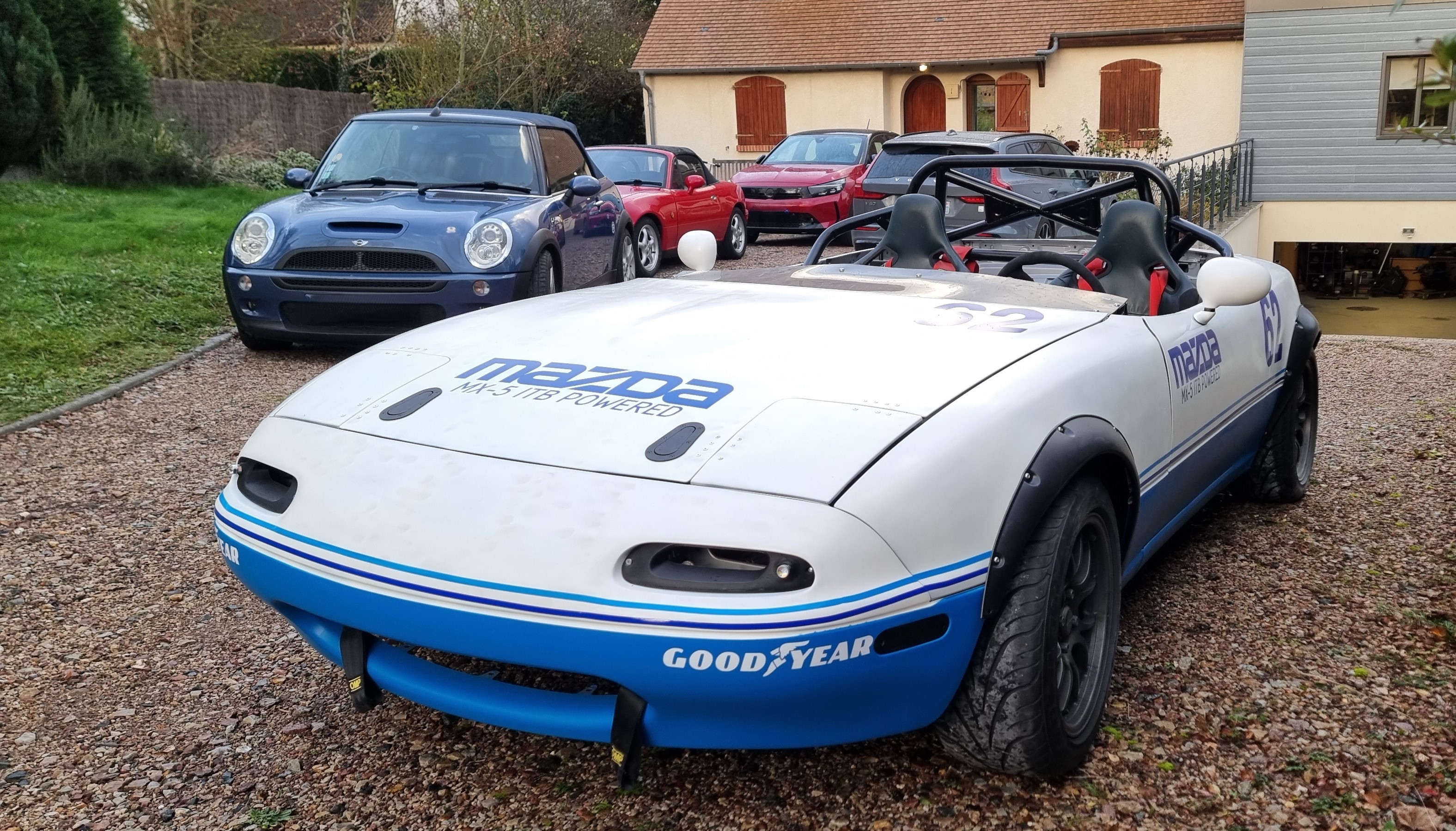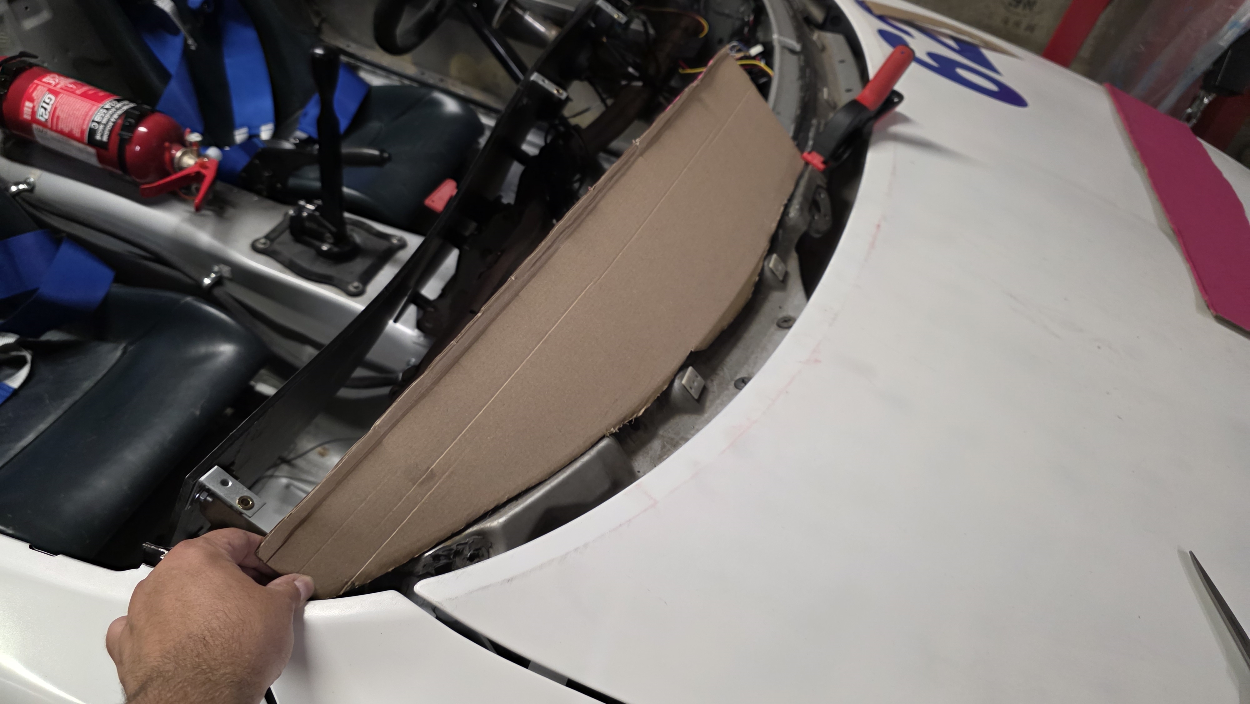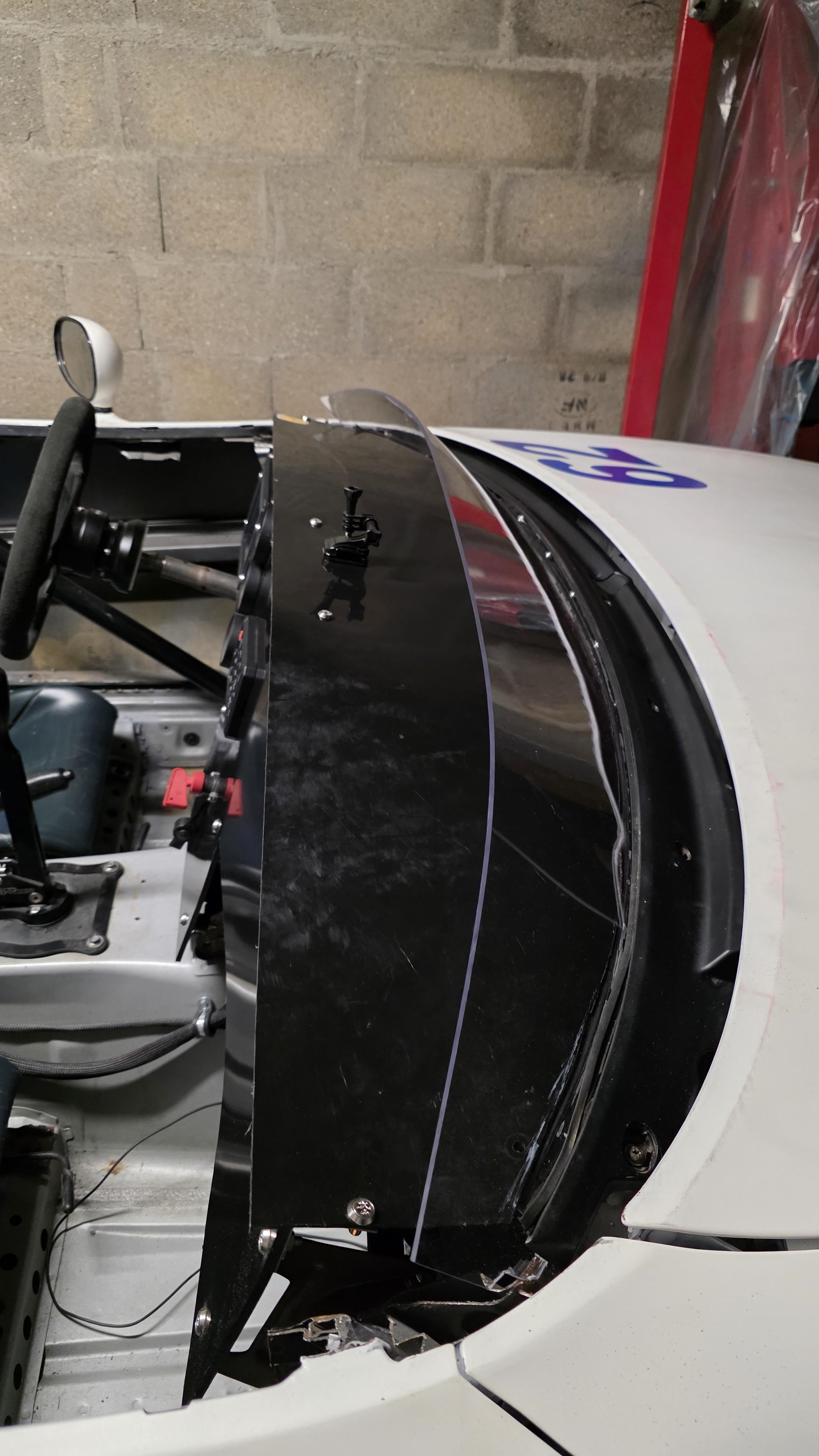 Ce WE, travaux esthétiques et fonctionnels sur la barquette, j'ai commencé par fixer le nouveau dash dans le tableau de bord actuel, c'est bien fixé et ça ne bougera pas.  Puis, je me suis lancé dans la fabrication d'un saute vent type mx5speedster, ça me trainait dans la tête depuis quelques temps, mais les 700$ ht et non livré du spoiler du kit xenex n'étaient pas une option. J'ai donc commencé par faire du cardboard design, j'y ai bien passé deux heures a faire une moitié puis répliquer de l'autre pour finalement en refaire un en une seule pièce  Puis découpe de la pièce de Lexan en 4mm d'épaisseur, j'ai préalablement percé la surface de contact du parebrise tous les 10cm pour mettre des écrous borgnes, et fixé le lexan avec des vis à tête fraisée et des coupelles. Finalement je n'ai meme pas formé en chauffant  La hauteur n'est pas très importante, mais cela devrait etre efficace, et ça donne le petit look speedster que je voulais sans impacter la vision dégagée de la barquette.  Je me suis même permi de faire une finition un peu plus propre, comme c'est a l'emplacement du parebrise d'origine, j'ai réinstallé un finish panel que j'avais dans un coin, ça rends propre et bien fini  Au niveau de la rigidité, c'est franchement top, ça ne devrait pas vibrer et flexer