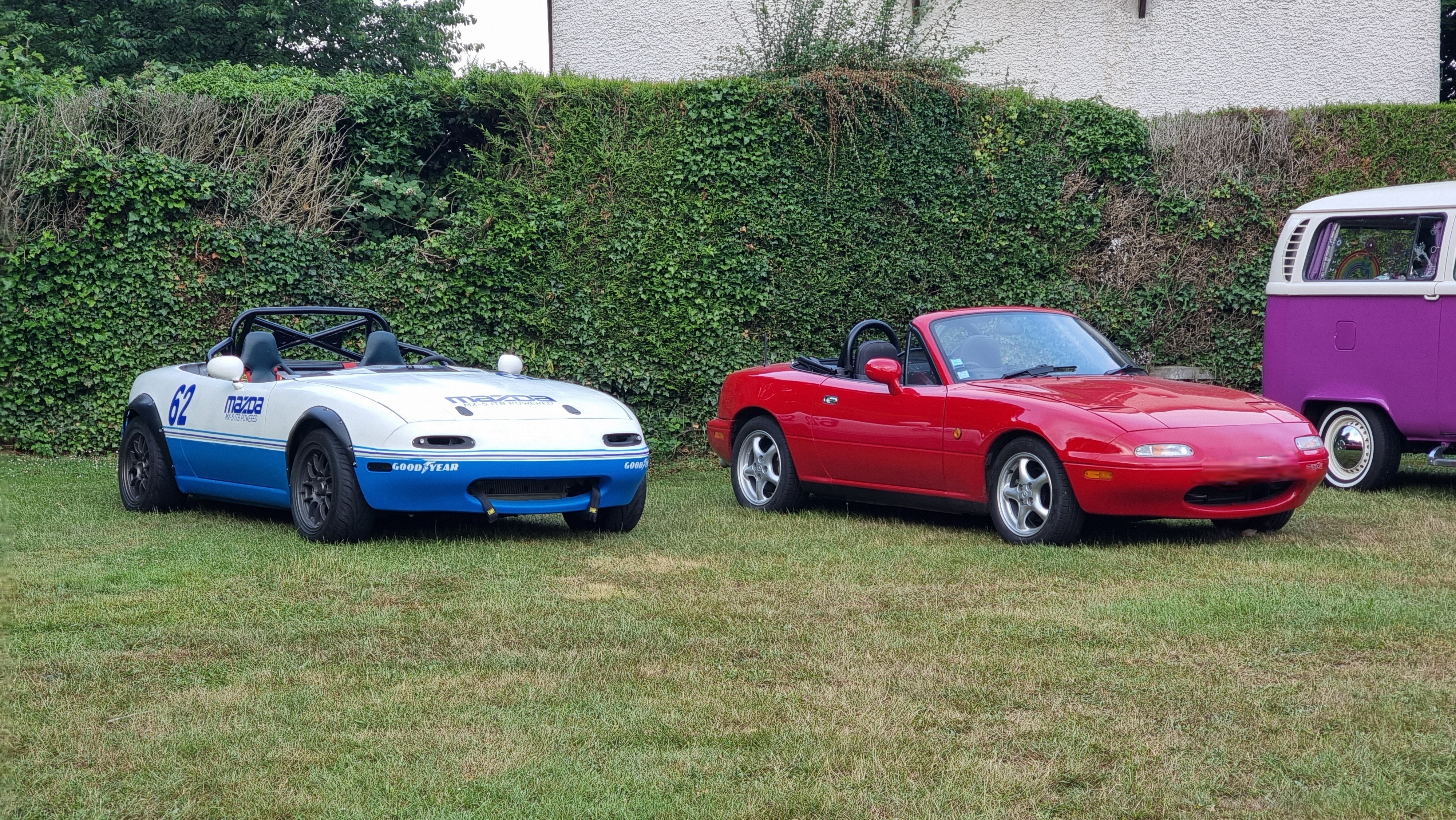 Mon CR rapide du WE a Pouilly Décollage le samedi, chargement de la barquette sur le plateau, elle passe toujours aussi juste, à l'arrière les pneus frottent des deux côtés, mais ça passe.  Dimanche, prévisions de la journée, un bon 30° le matin 37/38° l'après midi, avec peu d'ombre sur les paddocks, ça va pas être marrant. Au moins, il n'y aura pas grand monde en piste, ça me permettra de faire les réglages nécéssaires, je commence par la purge du LDR, je l'avais pas faite avant de partir vu que j'ai remis un calorstat. Puis on attaque les premières sessions avec mon fils en sac de sable, l'ordinateur sur les genous pour faire de l'autotune. Ca corrige beaucoup la carto, mais toujours des soucis de hocquets a mi charge. On fait des sessions de 3/4 tours max car ça chauffe vite. Deuxième session, c'est mieux, mais pas encore ça, ça corrige pas mal, mais toujours les transitions pas fluides du tout, ça reste complètement roulable mais pénible. Arrive la session débutant, mon fils veut essayer, on règle les harnais, il est pas mal stress, il a déjà roulé avec la 106 et la Volvo sur circuit, mais pas la barquette.  Merci à Mme Neobob pour la photo d'ailleurs. Bon, ça loupe pas, il a du mal a sortir des stands, la voiture cale, monte a 2000 trs/min, et il a l'impression que tout le monde regarde (on s'en fout c'est que des copains), il arrive en piste, et ça manque pas, comme il n'ose pas trop appuyer, il est pile dans la zone ou ça marche pas bien, et c'est pas agréable, j'essaie de gueuler, "Reste en 3, freine, passe les virages sur l'élan et en sortie de virage soude", il comprends et arrive faire 3 tours assez corrects. on rentre et me dis, je suis rincé, je transpire de partout, c'est méga stressant. Il flippait en fait pas mal avec le short shifter de faire un moneyshift et de tout abimer, c'est vrai que c'est très rapproché mais ça verrouille bien, plus la voiture pas smooth c'était peut etre un peu too much pour un gamin de 16 ans, mais il est super content quand même. Puis, on se pose, je regarde les logs, et en fait la voiture semble hoqueter car trop riche dans les transitions (alors que je pensais a trop pauvre au contraire), je regarde le "Acceleration Enrichment" qui correspond à la pompe de reprise sur les carbus, je me rends compte que la valeur de température de déclenchement de Warmup acceleration enrichment semble etre en farenheit avec 255°, sauf que la gestion est en celsuis, donc en fait en dessous de 255°C elle considère que la voiture est en warmup uniquement sur l'AE et donc va multiplier la valeur par 250%, donc dès que l'AE s'enclenche elle balance 250% en plus de la valeur d'AE définie (qui enrichi déjà entre 50 et 150% en fonction de l'action sur la pédale). Je descends la valeur a 80°C, corrige un peu la courbe d'AE. Et on part faire un tour avec mon fils encore avec l'ordi sur les genoux. Et la elle est presque parfaite, y a encore quelques hocquets quand tu t'engage sur la piste, mais après, plus rien :bounce: Je fais une bonne grosse session pour encore bien corriger, j'enregistre dans le calculateur. et c'est bon, j'arrete les sessions avec ordi (car bon tu peux pas envoyer ni te concentrer quand ton fils tiens ton pc sur les genoux). La voiture souffre pas mal de la chaleur, je me rends compte de certains défauts, le tableau de bord vrille un peu, mes passages de harnais de sieges en impression 3D on bougé, faut que je le colle, mais a part ça, ca va. Je fais attention a protéger le moteur, huile qui dépasse pas les 100°, eau dans les 94/96°. Par contre les Federal qui ont 12 ans, eux, dégustent ce sera leur dernière sortie.  L'après midi, ne sera que bonheur et rigolade, je fais une session avec mon fils en passager en envoyant pas mal, il adore. Puis c'est les tours de manège pour les copains, désolé de pas avoir pu faire monter tout le monde, mais sniperr et Neobob ont eu droit à leur tour, merci d'ailleurs a sniperr pour la vidéo https://youtube.com/shorts/pLeL77GJErY?feature=shareBref, je suis content, rentré lessivé, la voiture a tenu, j'ai identifié pas mal de points d'amélioration fiabilisation : - des nouveaux harnais, les miens sont trop vieux et le systeme de fixation et de réglage commencent a gripper - fixer mieux mon siege - fixer mieux les passages de harnais - protéger quelques endroits un peu coupants [:nedurb] - mieux fixer quelques cablages/durites dans la baie moteur - remettre en service mon écran digital Sinon a part ça, du bonheur, une sortie circuit amusante et qui m'a clairement servi dans l'affinage des réglages. Elle ira quand même chez un pro pour fine tuner tout ça.